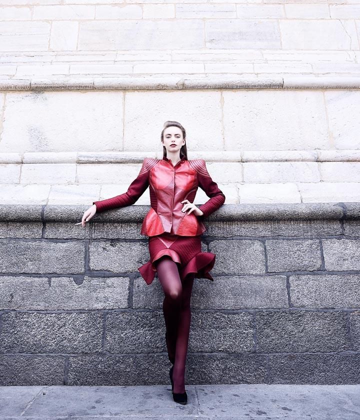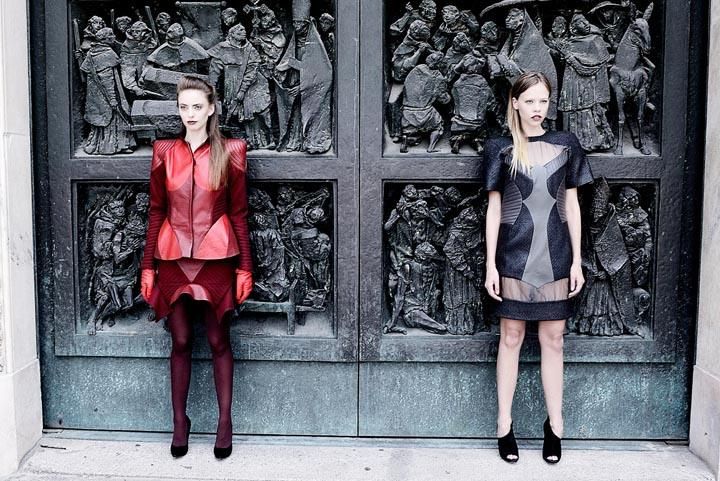 Shui creates architectural clothes, fashionistas frames in different shades of blue, green, black and red, mentioning, more or less consciously, the armor of the Dracula movie directed by Coppola. Hips and shoulders are the focus, enhanced by a play of inserts, of alternations between leather and fabric, creating oversize volumes and sculpted forms. From her base in London Kim Shui looking for a place in the Olympus of fashion, renewing, evolving from season to season, increasingly defining her own style. And this is the road that can lead Shui to success.