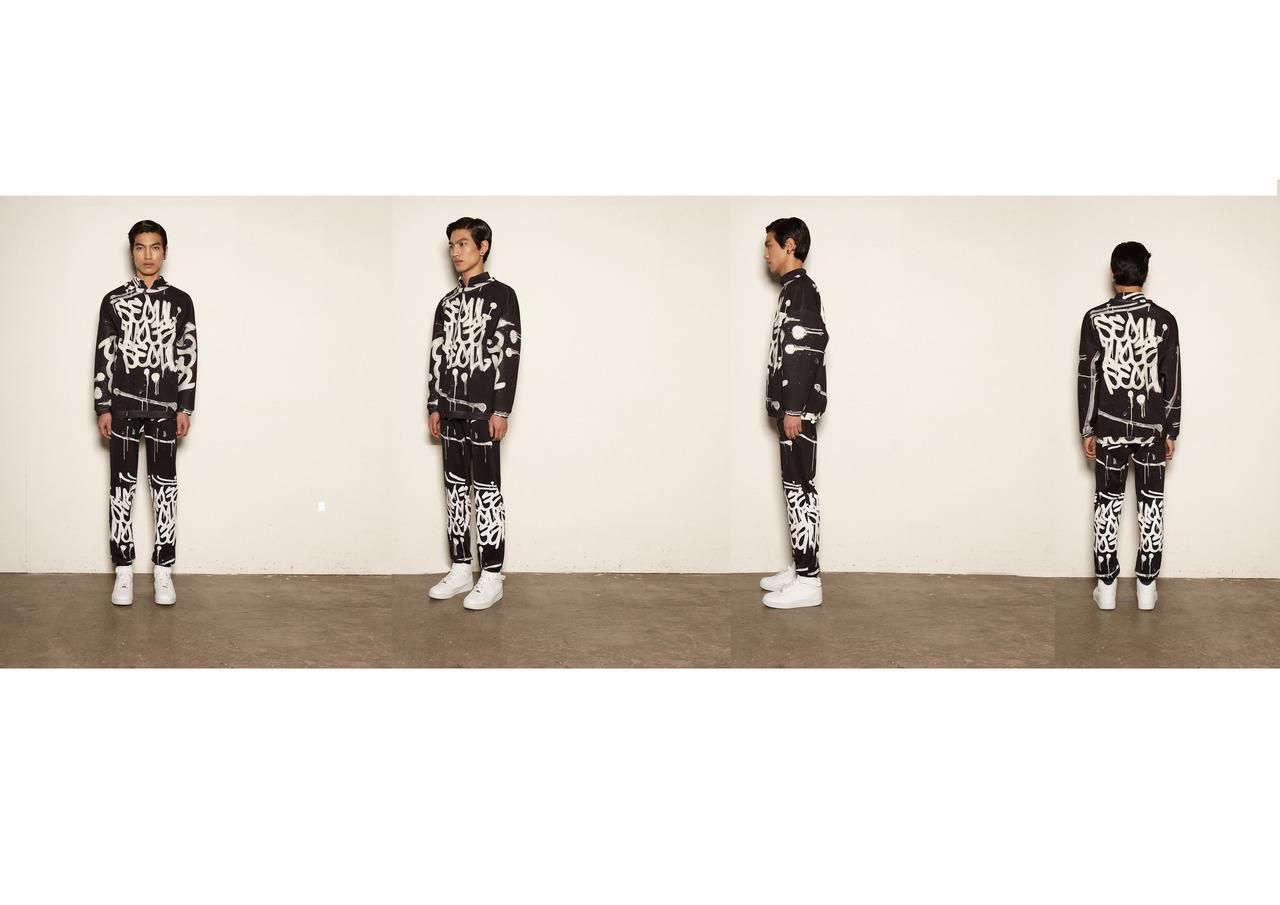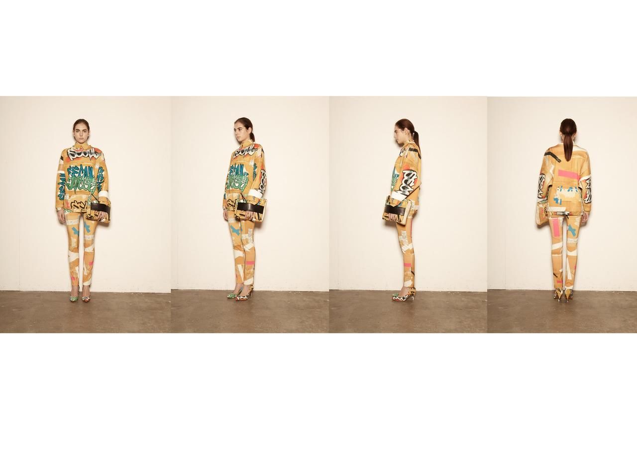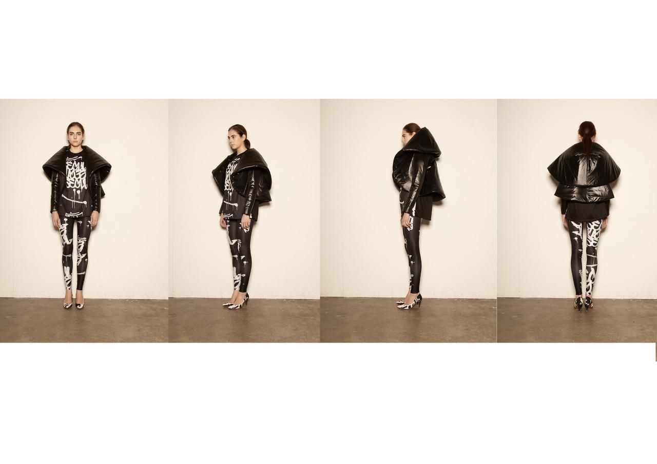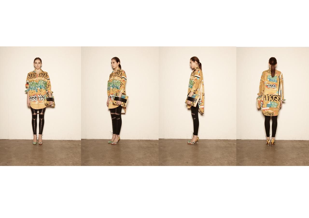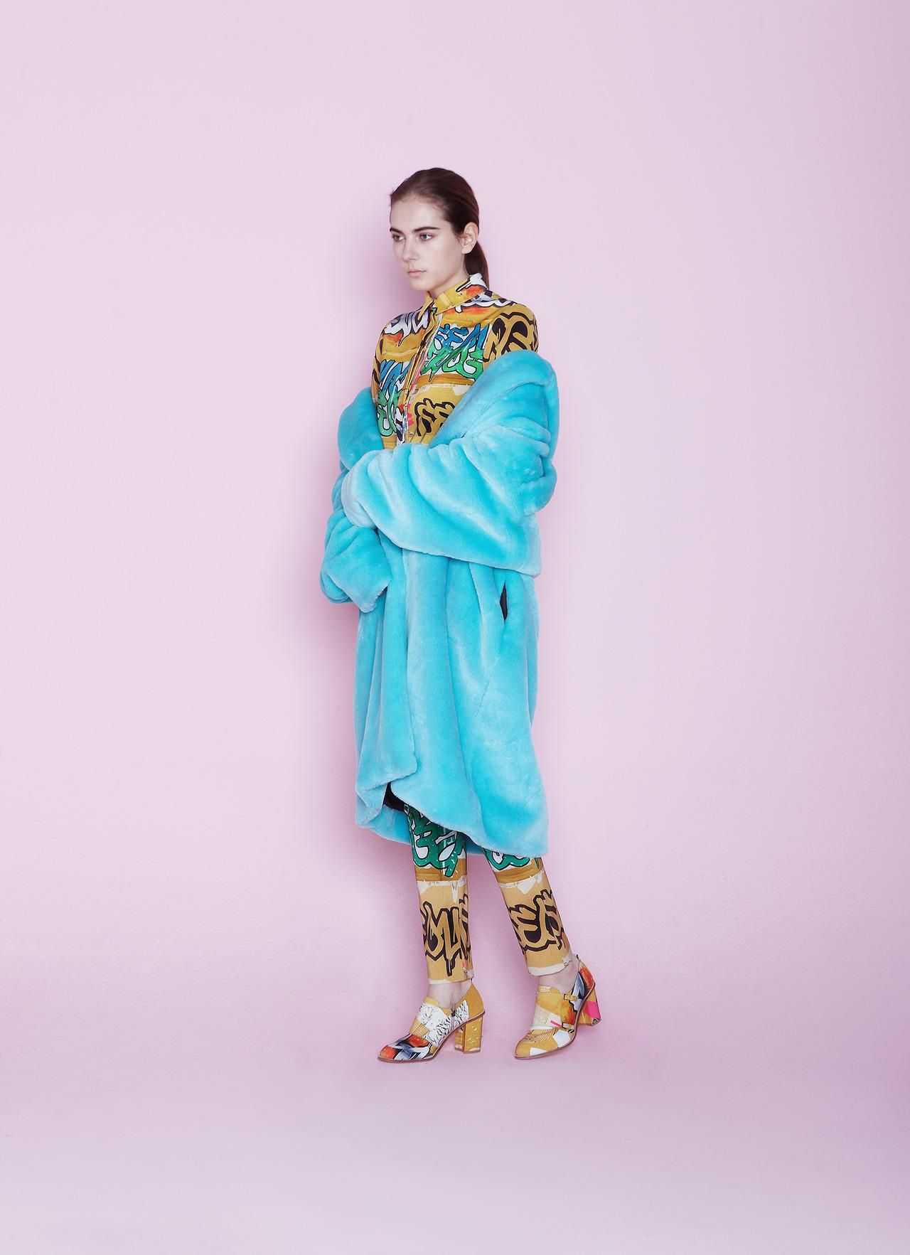 Kye’s winter collection, titled " Unemployed Youth : Homeless Youth " starts from streetwear to evolve into a contemporary, young, but more sophisticated and experimental style. Black, white, turquoise, yellow and gold are the colors that emphasize the key role of the prints, lettering, real graffiti that are a hymn to the roots of street culture, but that she trying to turn into something more complex and less immediate. To act as a counterbalance to the dry shapes, base of the collection, Kye makes leather jackets and mini quilts with important volumes that have focus on shoulders.
