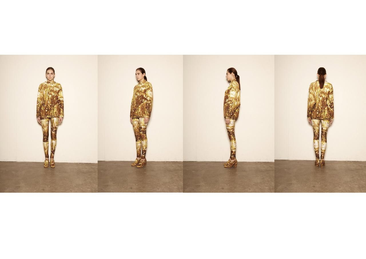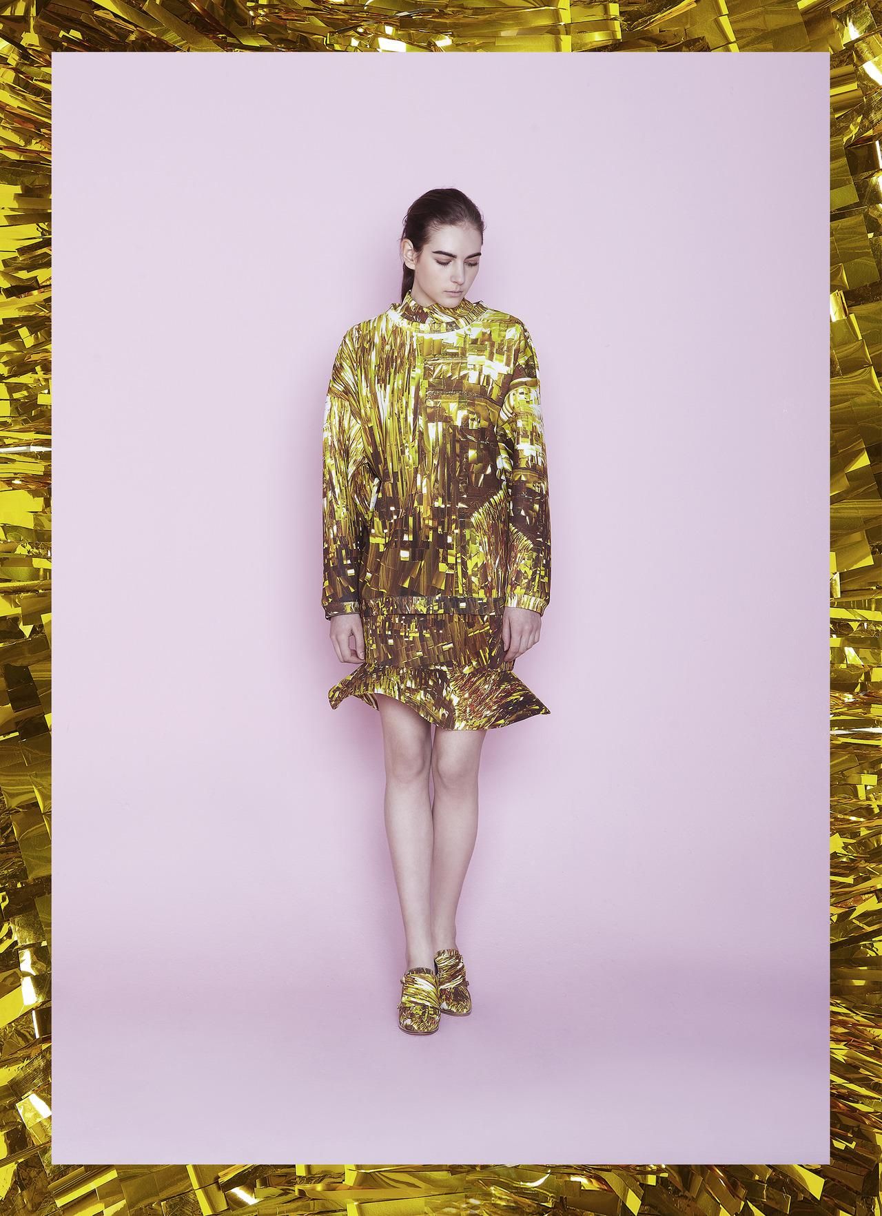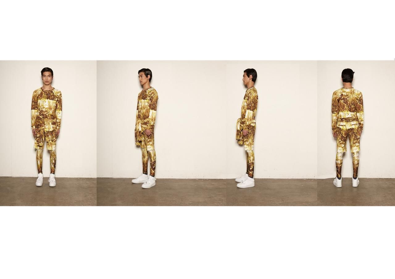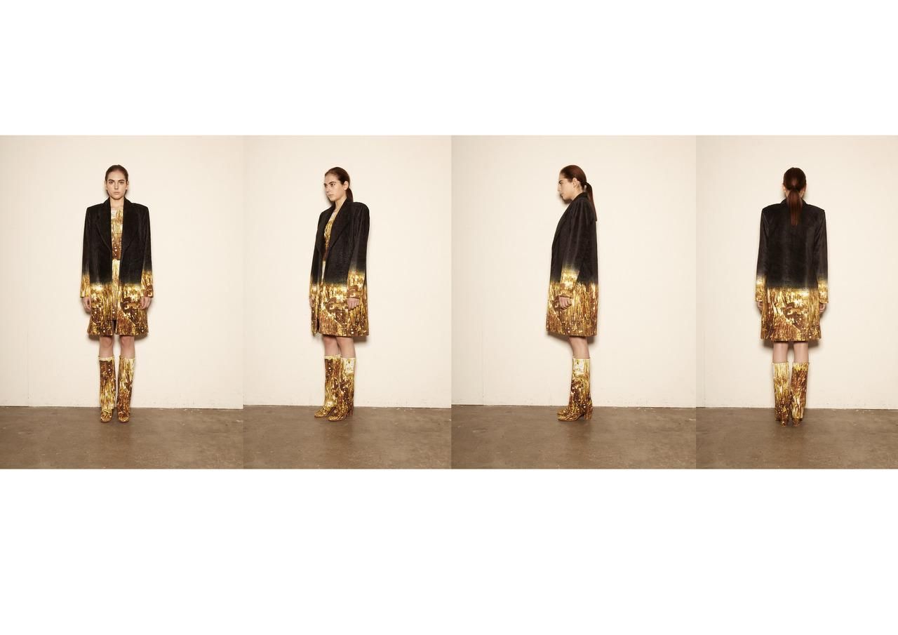 Kye’s winter collection, titled " Unemployed Youth : Homeless Youth " starts from streetwear to evolve into a contemporary, young, but more sophisticated and experimental style. Black, white, turquoise, yellow and gold are the colors that emphasize the key role of the prints, lettering, real graffiti that are a hymn to the roots of street culture, but that she trying to turn into something more complex and less immediate. To act as a counterbalance to the dry shapes, base of the collection, Kye makes leather jackets and mini quilts with important volumes that have focus on shoulders.