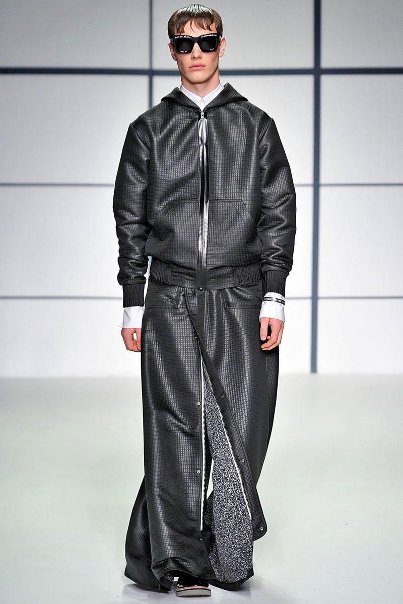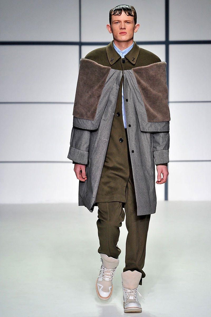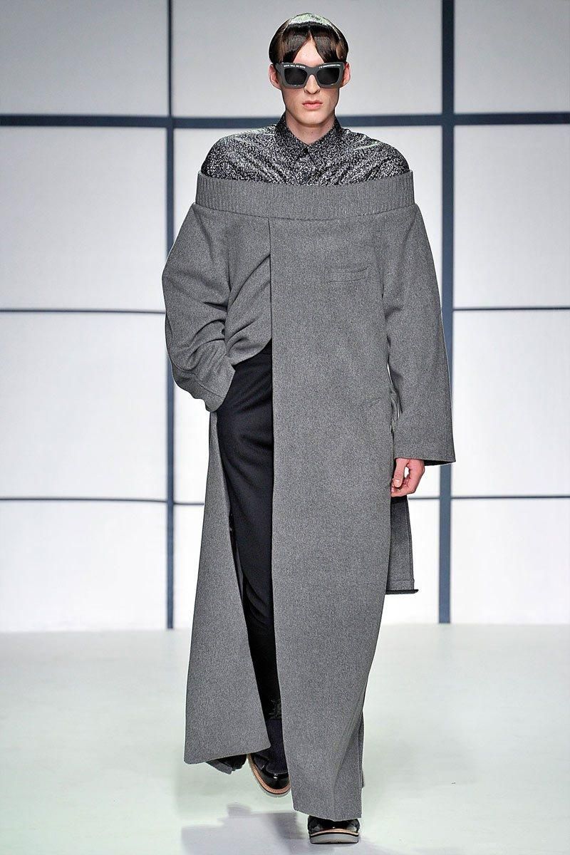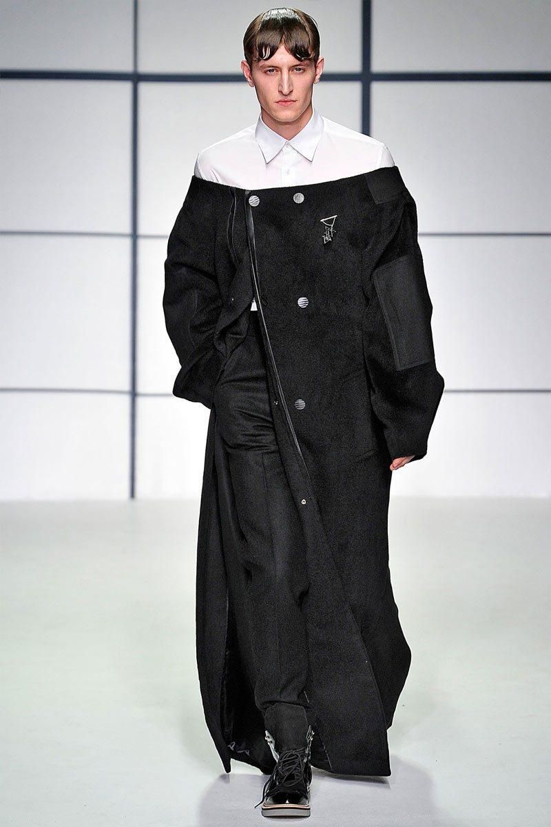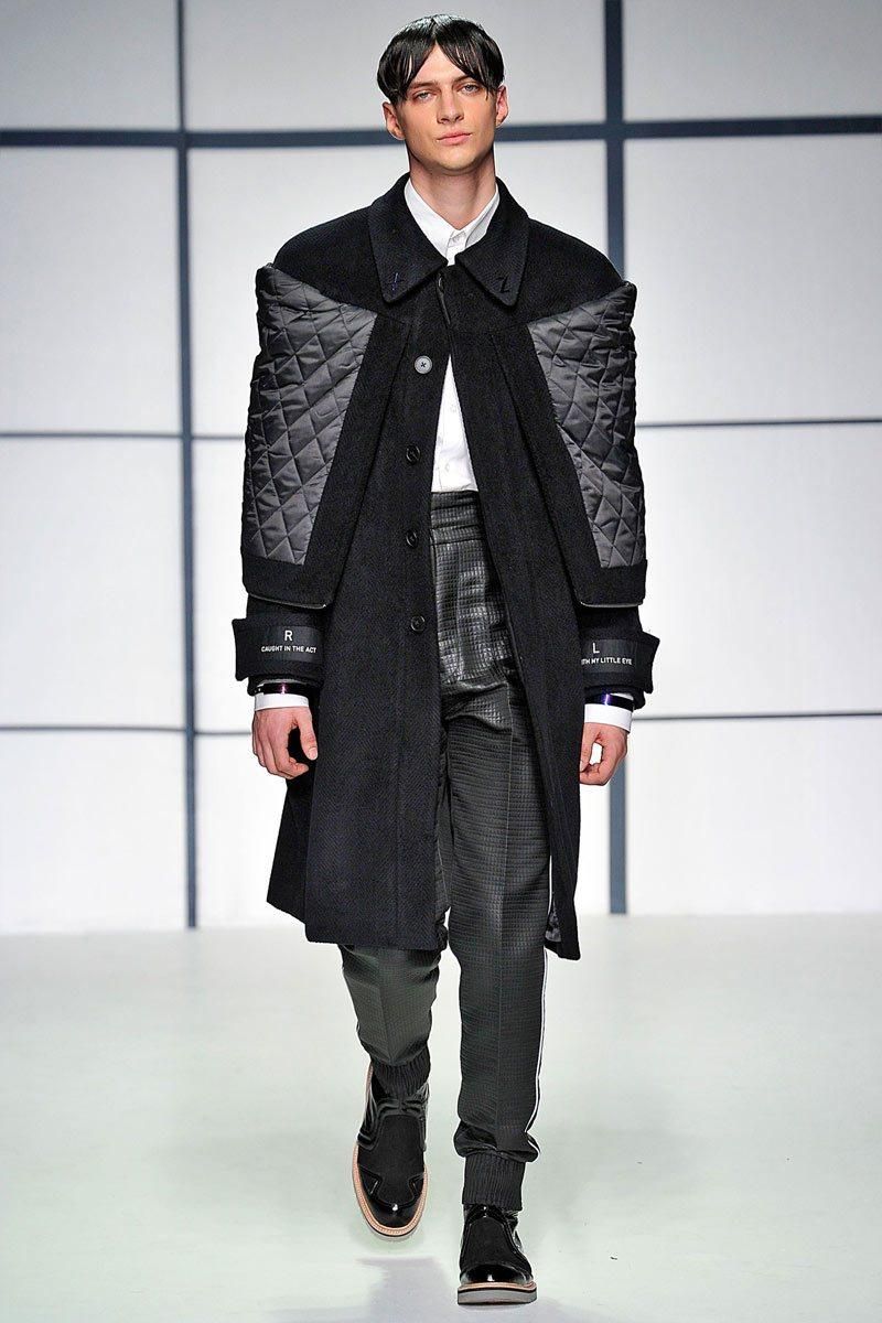 Xander Zhou, Chinese, studies of industrial design in the back, founded his own brand in 2007. Deconstruction is the signature of this young talent, his characteristic . Starting from a classic idea, develops, tests and twists to transform into something unique and extraordinary. So every creation merges tradition and innovation, creating a relaxed and elegant style. "Homies" autumn-winter collection, spread around the phrase "Boys will be boys", motto printed on sweatshirts. Zhou calls his creations "Faux chic, pretend nonchalance and naughtiness". All clothes are the result of experimentation with classic men's wardrobe, such as white shirts and pinstriped pants, paired with soft, deconstructed silhouettes. The protagonist of the collection are the coats, tailored, long up to the feet. Around them develops a line with the classic tones, black, gray, blue, with touches of red cherry, innovative cuts, where street and couture meet.