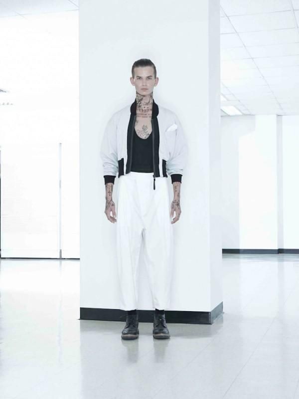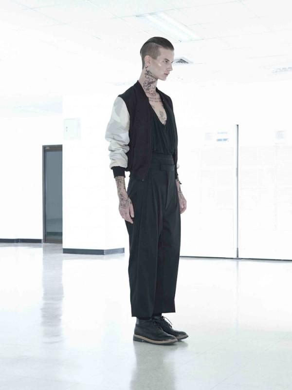 The autumn-winter collection has the simplicity typical of the brand, enriched with a twist 80s, a touch of chaos that gives it character and attractiveness. T-shirts, basic top, harem pants, bombers, biker jackets and large volumes coats are enhanced by the dualism color of white and black. They are wearable, casual clothes, which combines the tissues and the skin is used in the details, such for sleeves. The cuts are clean, the forms have an Asian echo, the lengths are irregular.