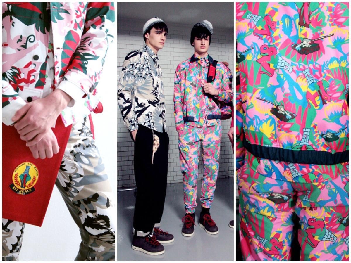 The fact that the patterns are the hallmark of Kit Neale is a universal reality. The fact that every time he is able to create new one playing with colors with an incredible skill, too. For the next FW 2014 he proposes in this regard dizzying textures, inspired by the Elephant and Castle area of London. The iconic elephants with castles on the back are mixed with urban jungle prints and floral motifs. Voila, the print is served.