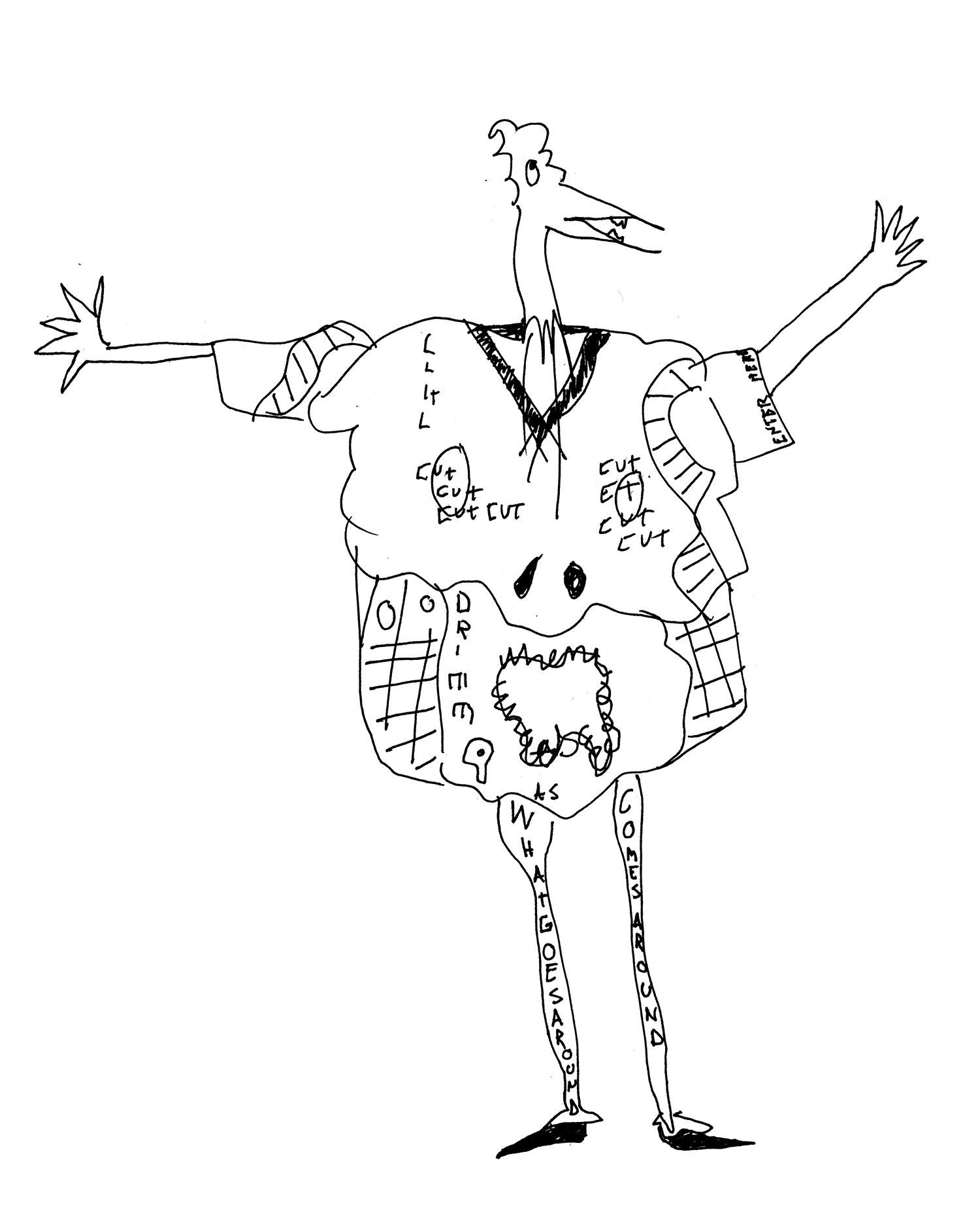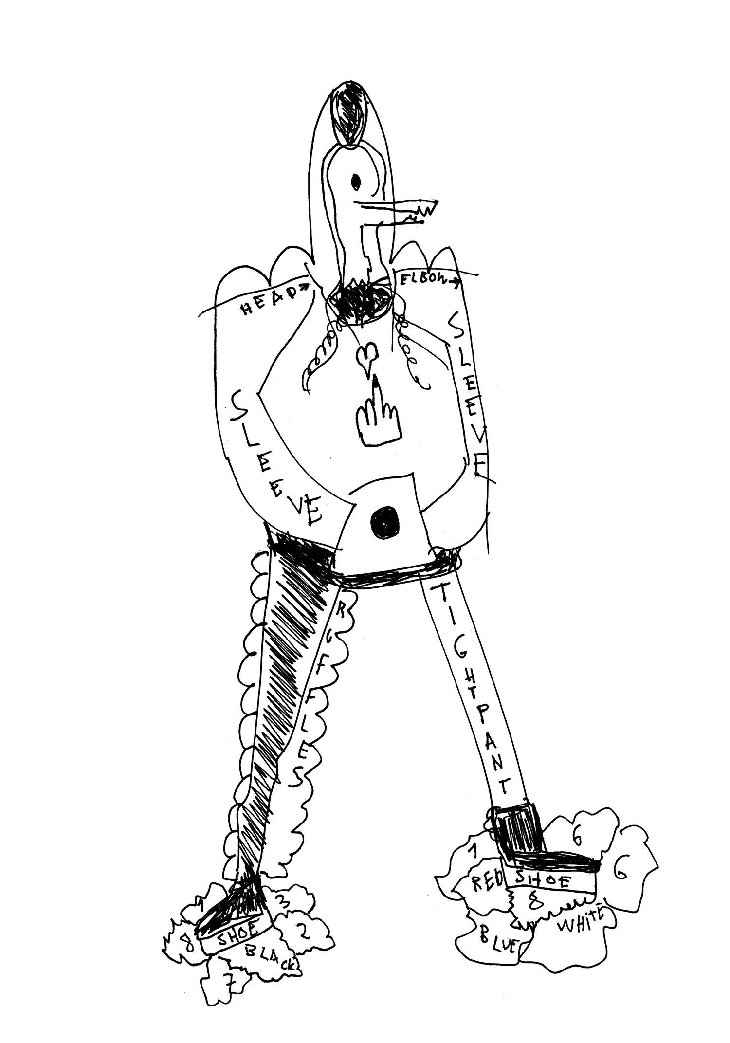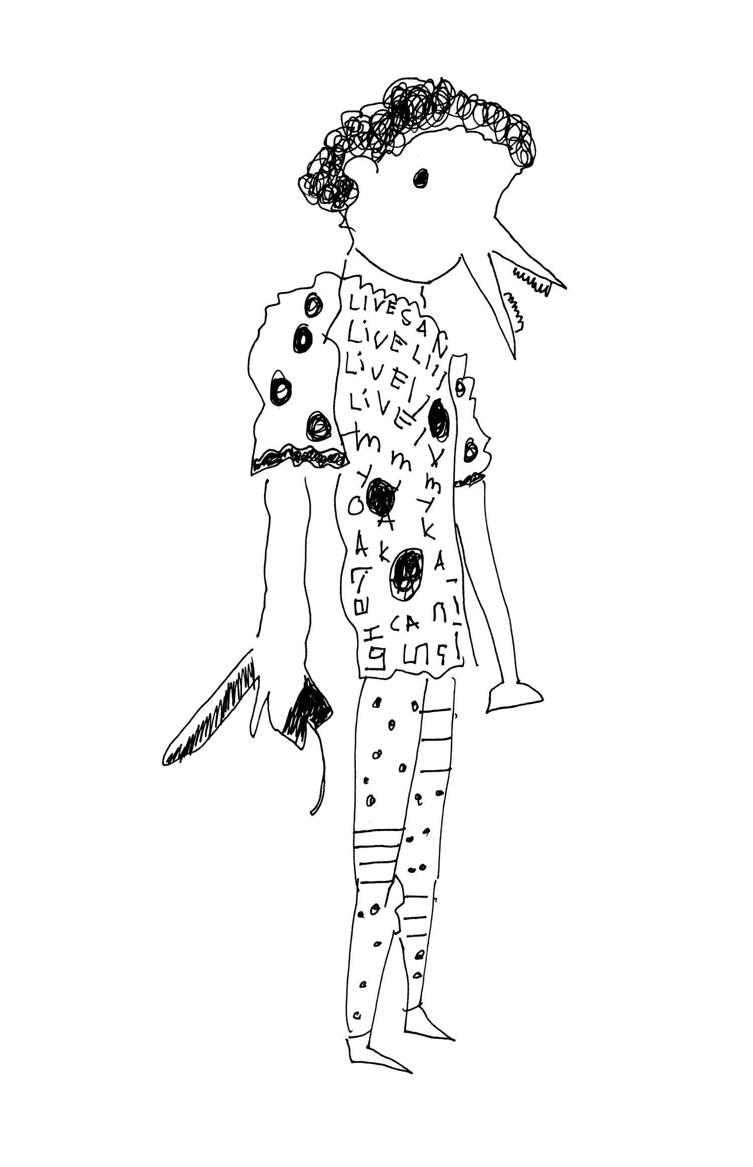 His work does not follow the fashions of the moment, but his desire to dress himself and others with spontaneity and humor. For all those who do not want to follow the rules of dress but have fun, without taking itself too seriously, highlighting that part naive hidden inside each of us.