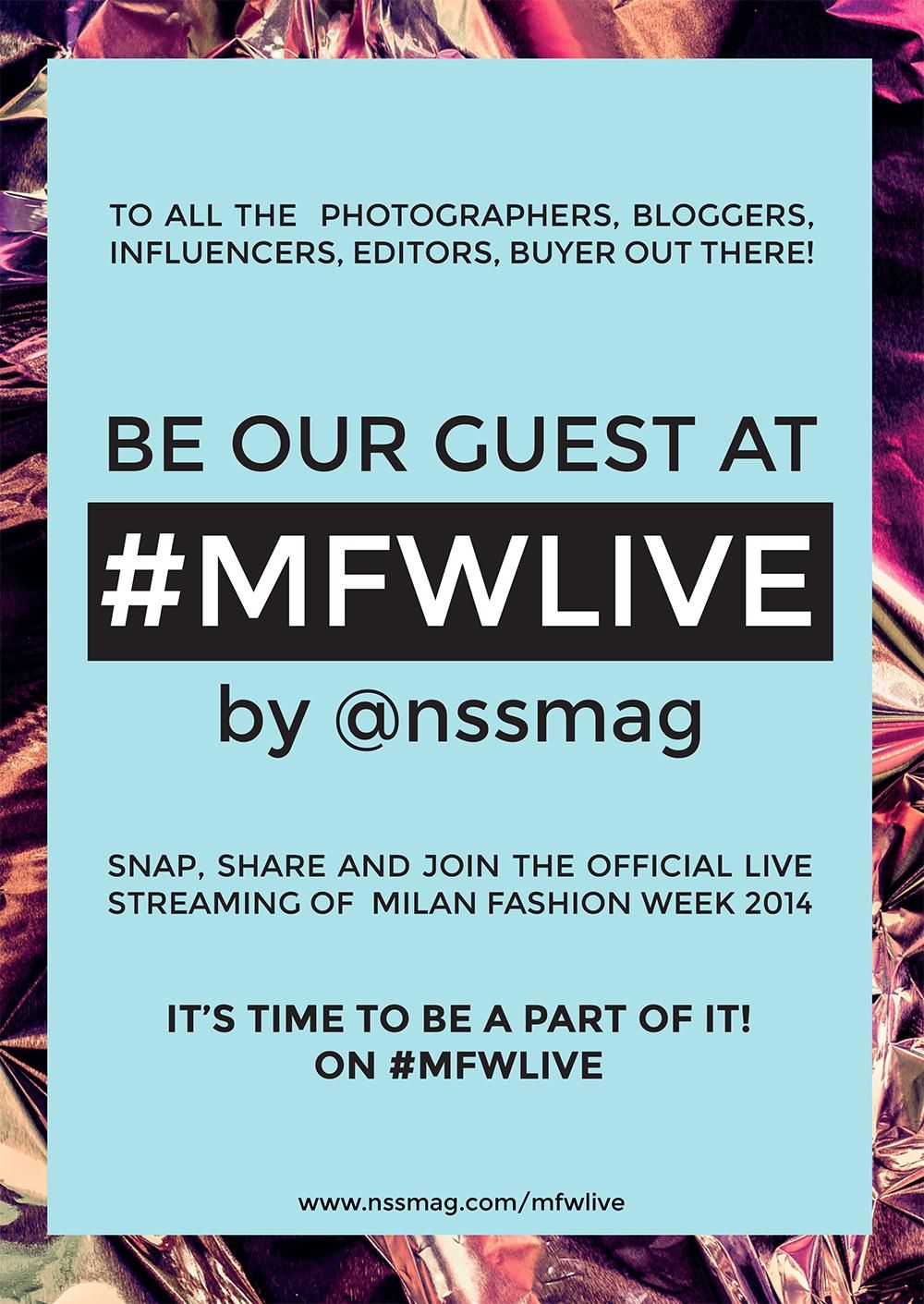 Be our guest at #MFWLIVE Snap, share and join the official live streaming of Milan Fashion Week 2014
