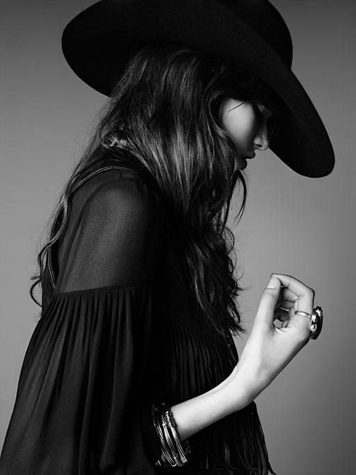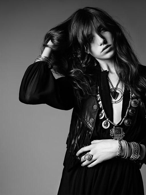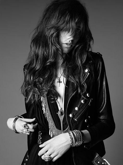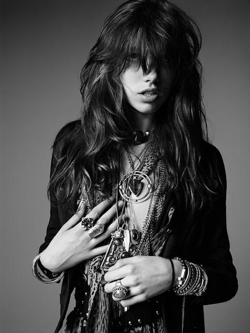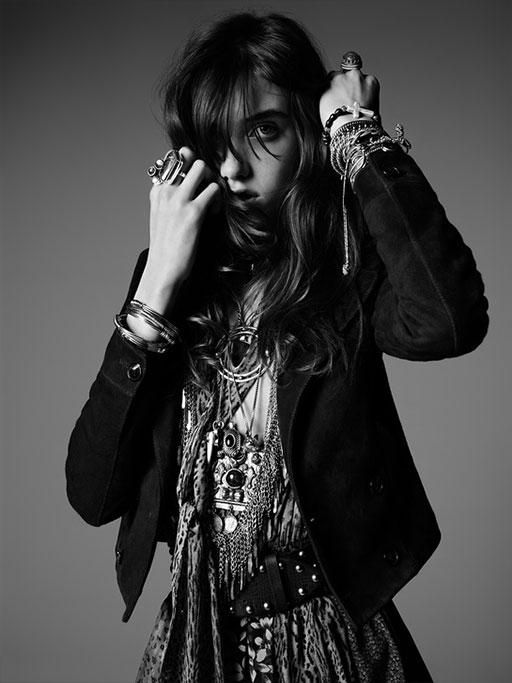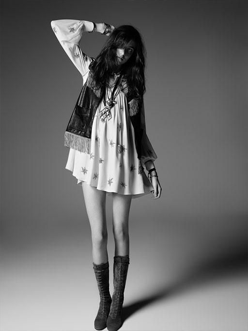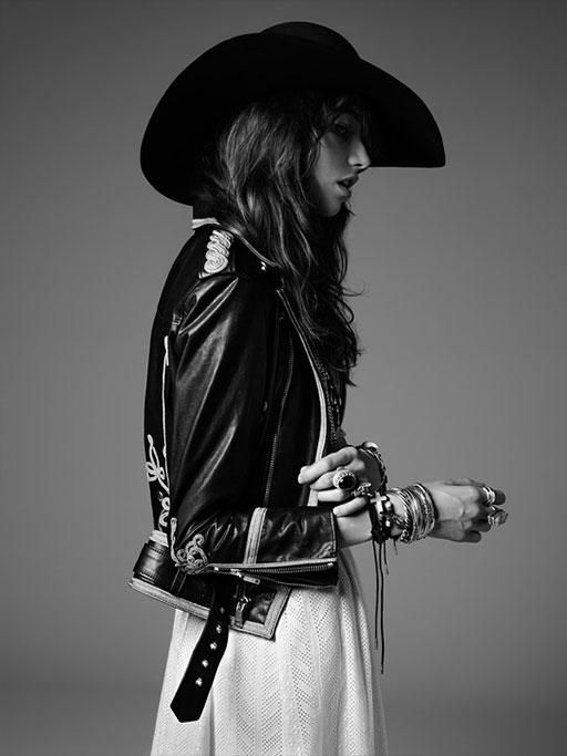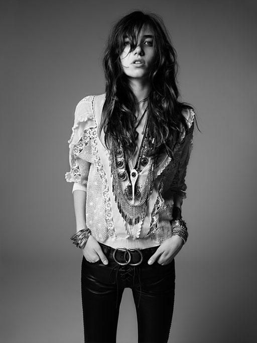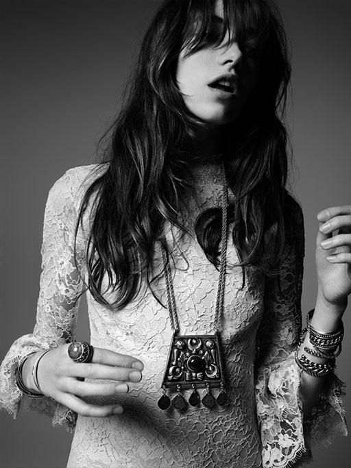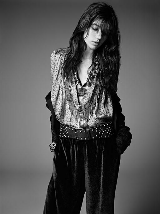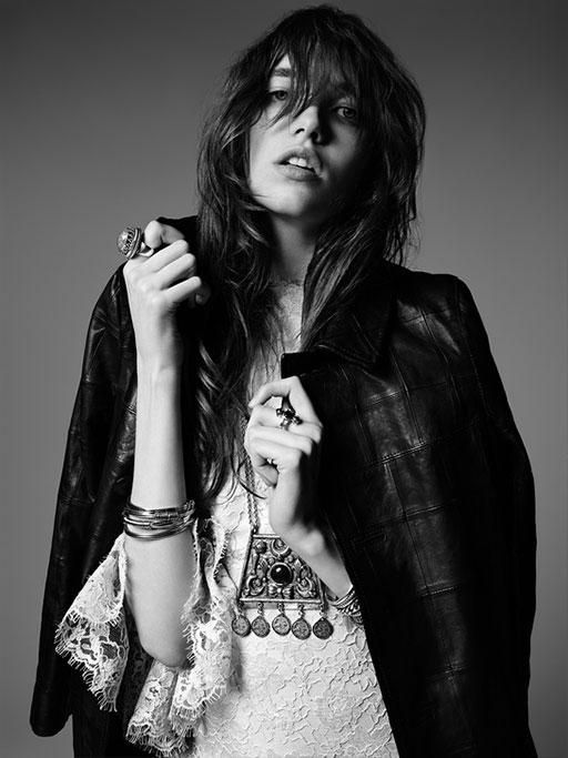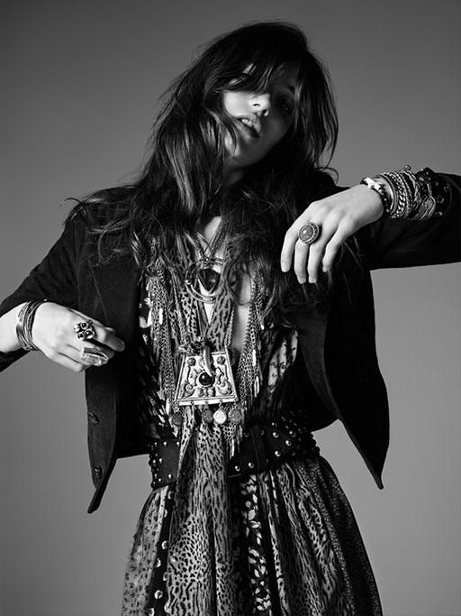 It's Syd Barrett, but also the' 60s and '70s, Jimi Hendrix, Woodstock, perfectly embodied by model and muse Grace Hartzel.