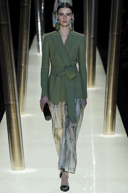 Its high fashion smells of the East, Japan and bamboo. "Because the bamboo?" - Explains Re Giorgio- "Because I wanted it to be the symbol of this collection to embody the idea of a woman strong and supple. Altera nell'attitude but very feminine and enveloping in its charm. I tried every look no telling l 'idea of femininity stiff, stiff. I liked working more sull'evanescenza, on the shadow. as if the body was wrapped in a fog. "