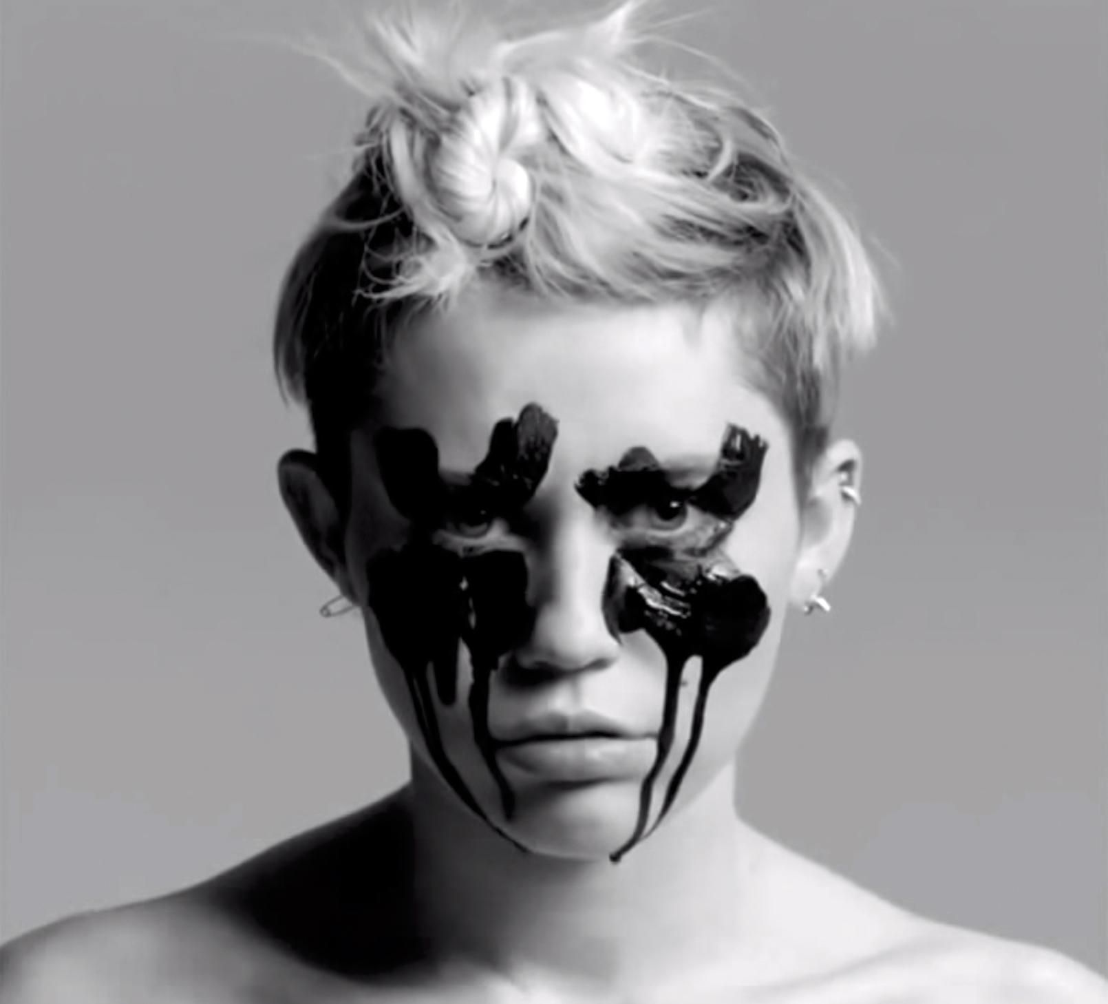 The video, produced in collaboration with Quentin Jones, already working for Kenzo and Louis Vuitton, is a cut out of black and white images and references to the world of bondage: Miley flapping her huge eyelashes, tight in latex ropes, provokes and plays with the codes of eroticism.