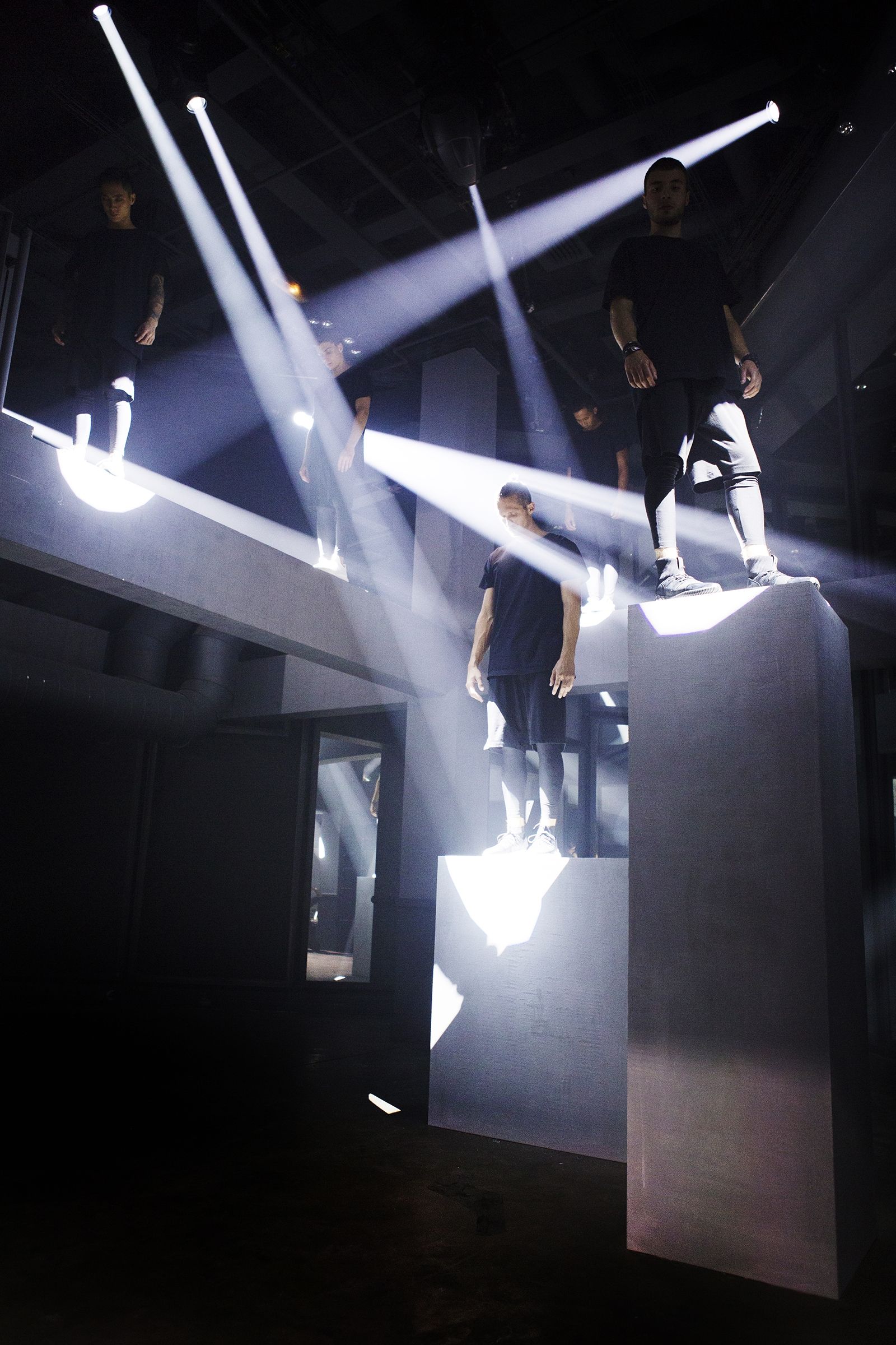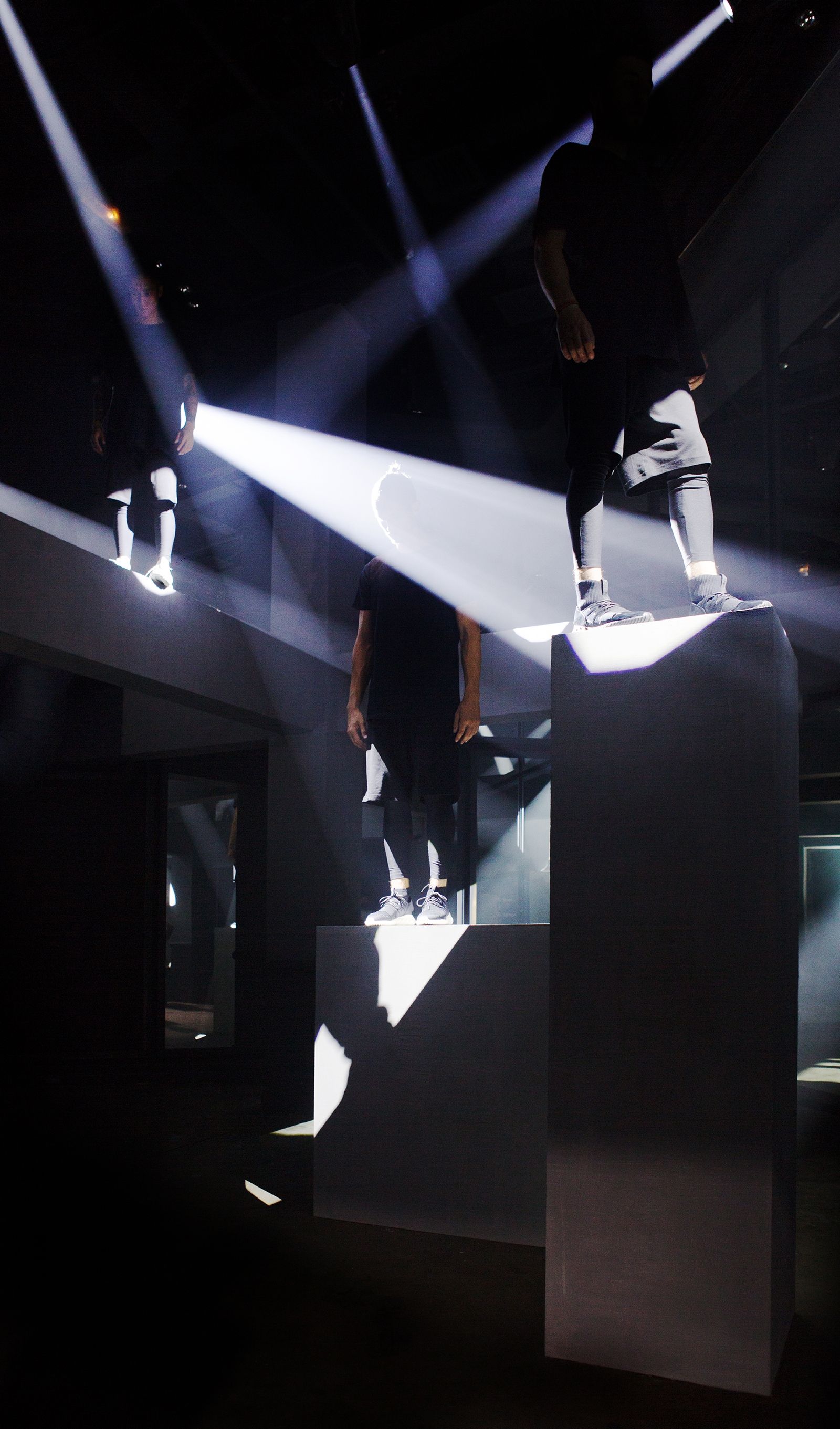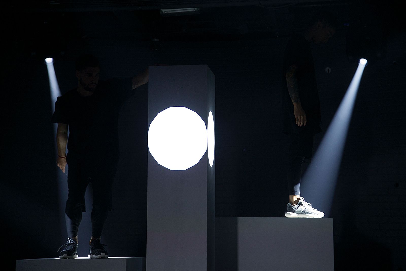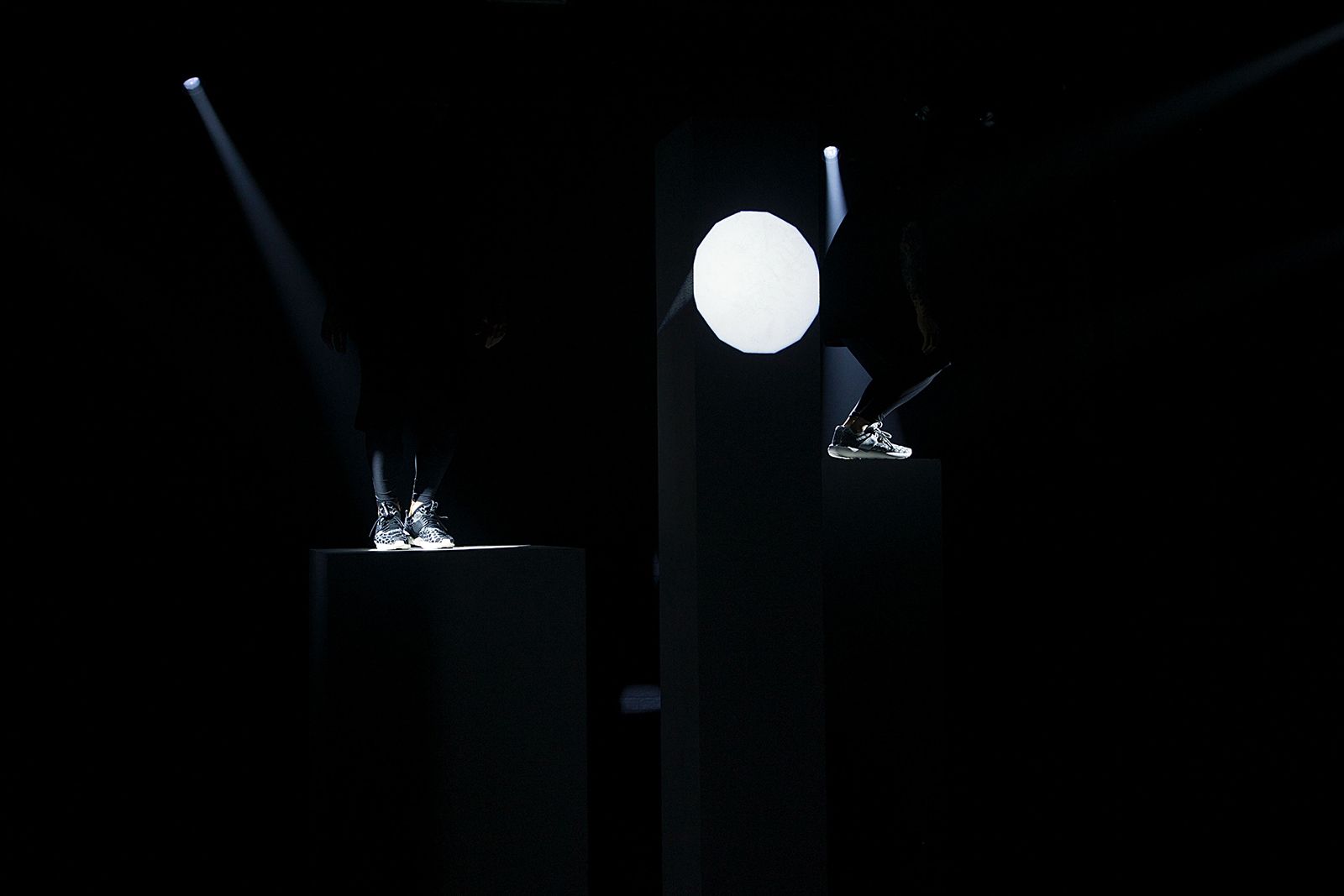 The agility and lightness of the shoes have been interpreted for the occasion by a group of local performers who moved around the architectural obstacles of the room on the notes of the sounds of Michel Gaubert, the most famous sound designer of the fashion system.
