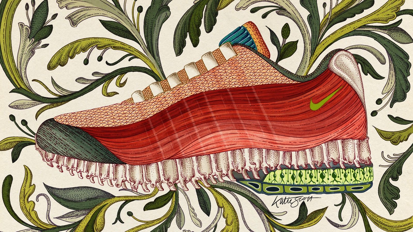 To celebrate the 20th anniversary of the Air Max 95 Nike called two illustrators specialized in anatomy drawings: Andy Van Dinh and Katie Scott.