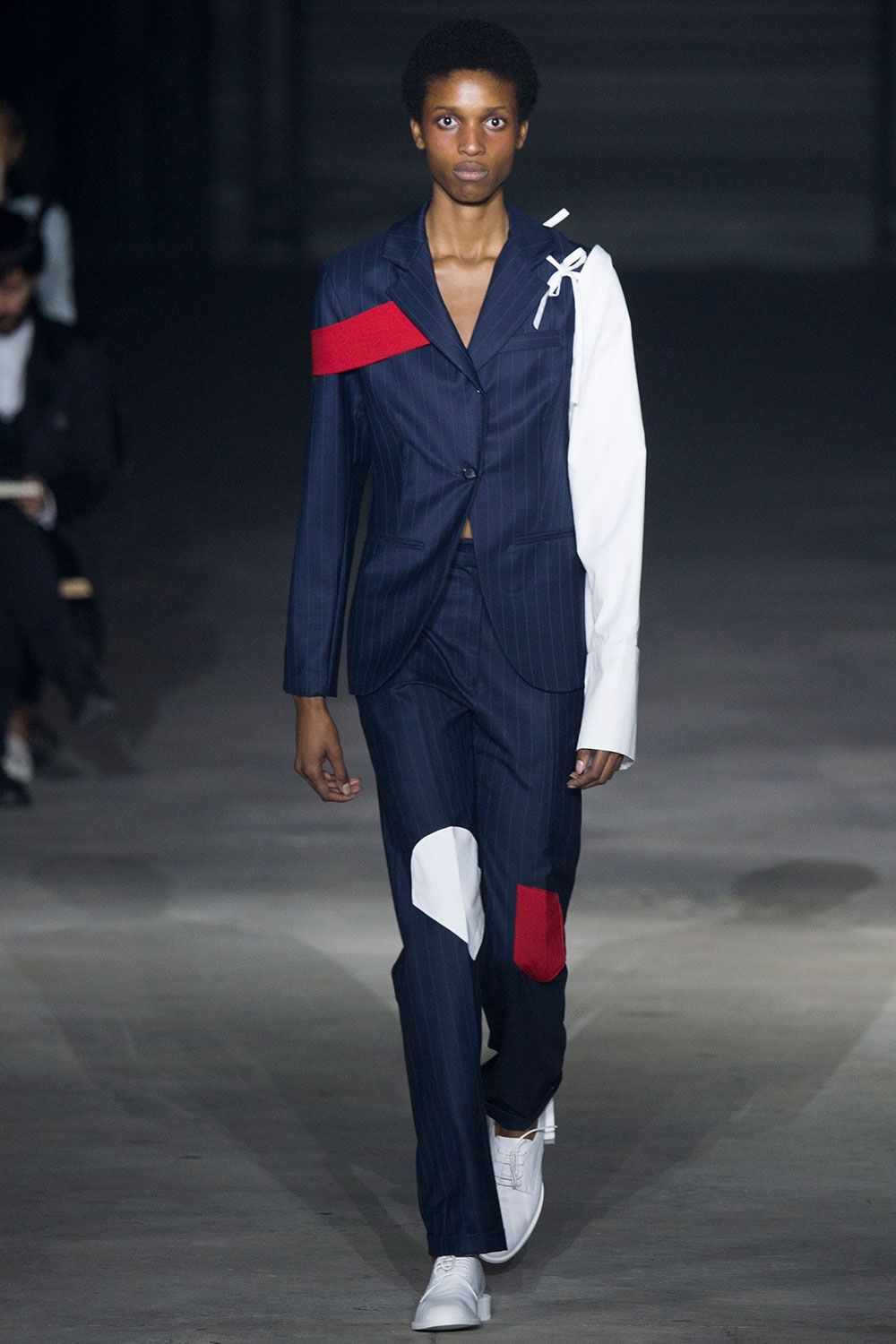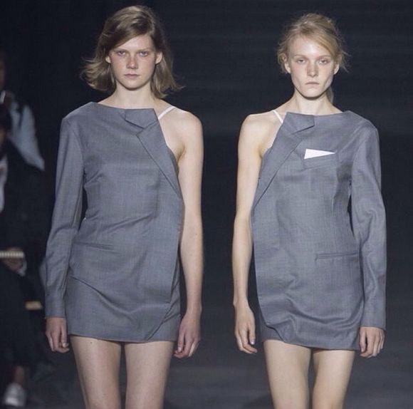He cuts, reassembles, exchanges, assembles, creating a framework of contemporary art, an asymmetrical fashion Frankenstein. The lengths are shorter, the jackets are worn backwards and become mini dresses, fabric strips become tops, colours and materials are mixed.