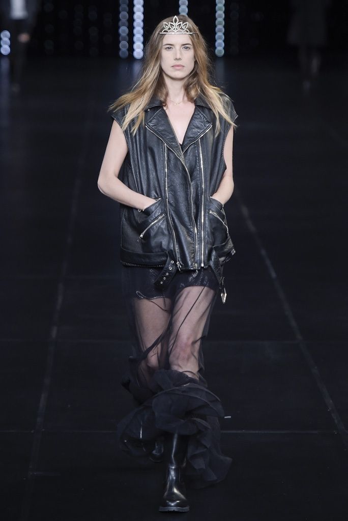 There couldn’t have been a better brand to ratify her comeback: the model who, with her androgynous look, redefined the beauty standards of the 00s and challenged the concept of gender which is so discussed and actual nowadays. Yesterday, with her sleeveless leather jacket and her melancholic look, she walked the runway as if she had never stopped doing it.