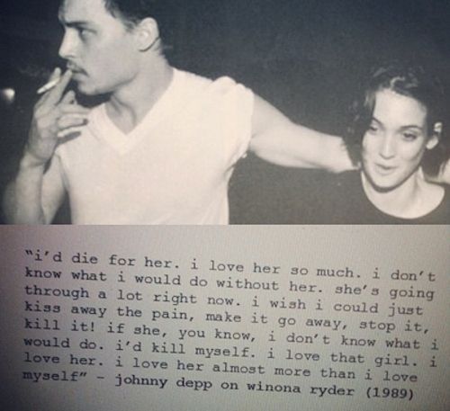 #1 Johnny e Winona. They are young, beautiful, talented, iper-cool and in love. He writes: "I’d die for her, I love her so much. I don’t know what i would do without her [...] I love that girl. I love her almost more than I love myself”.