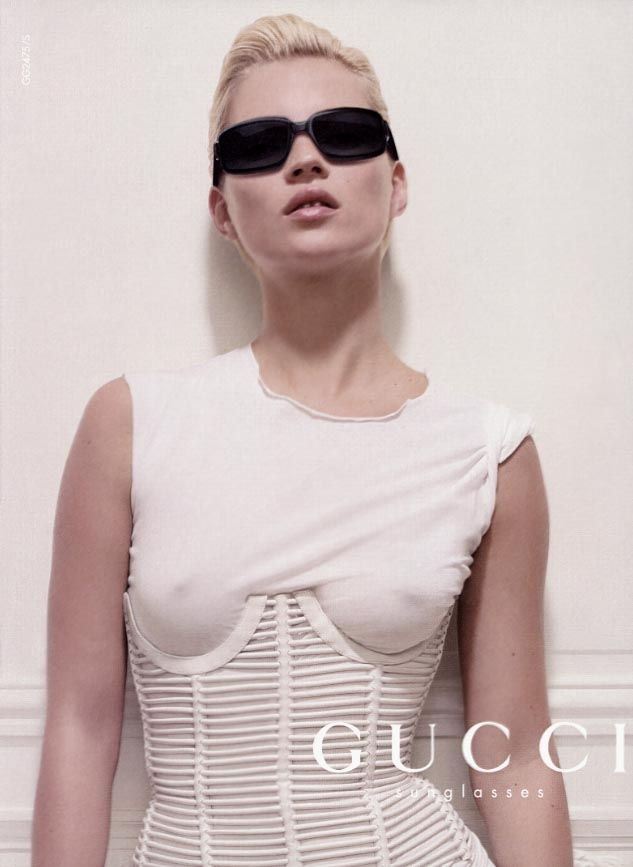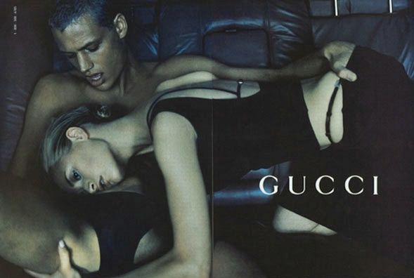 SS04: Pubic Enemy. Gucci upsets the fashion industry with this Mario Testino shot and the allusive "G" of Louise Pedersen. It's a scandal. Published first in the February 2003 issue of Vogue, the photo is accused of vulgarity and denigrating women.
