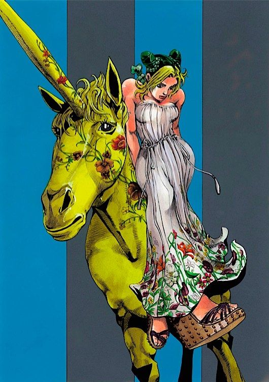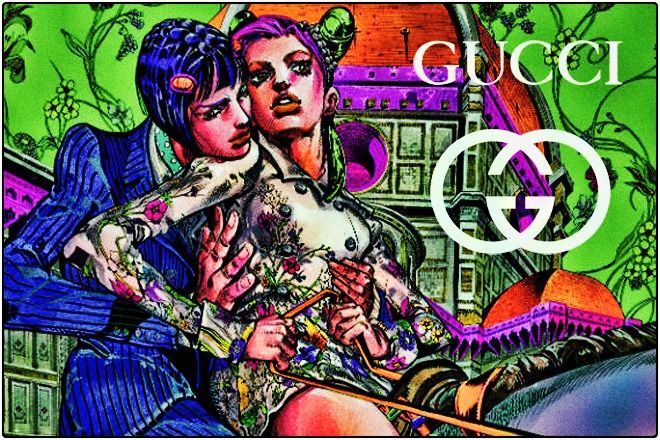 Resort 2013: Hirohiko Araki. Giannini collaborated with the famous Japanese designer for Jolyne, Fly High with Gucci, a mini-manga that told the story of Jolie Kujo, a young student who, having inherited a vintage Gucci accessory from his mother, embarks on a lysergic journey into the past.