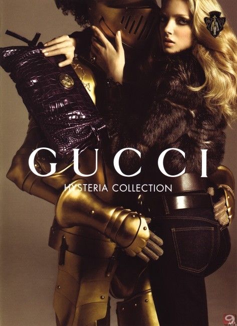 SS08: Hysteria Collection. Lily Donaldson seduces a knight wearing a shining armour for Gucci.