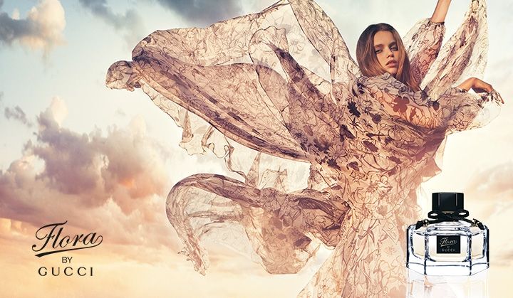 2009: Flora by Gucci. Shot by renowned fashion photographers Inez van Lamsweerde and Vinoodh Matadin with model Abbey Lee Kershaw as testimonial, the Flora by Gucci fragrance campaign focuses on the ideals of feminine strength and beauty.