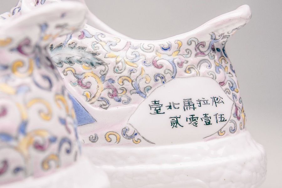 The golden edition represents the spirit of the Beijing marathon, the other two versions are a tribute to the Taipei marathon: one is decorated with the traditional Chinese porcelain designs like waves and flowers and the second one features the design of the Taipei 101, the forth highest skyscraper in the world, refined with gold and Chinese characters on the heel.