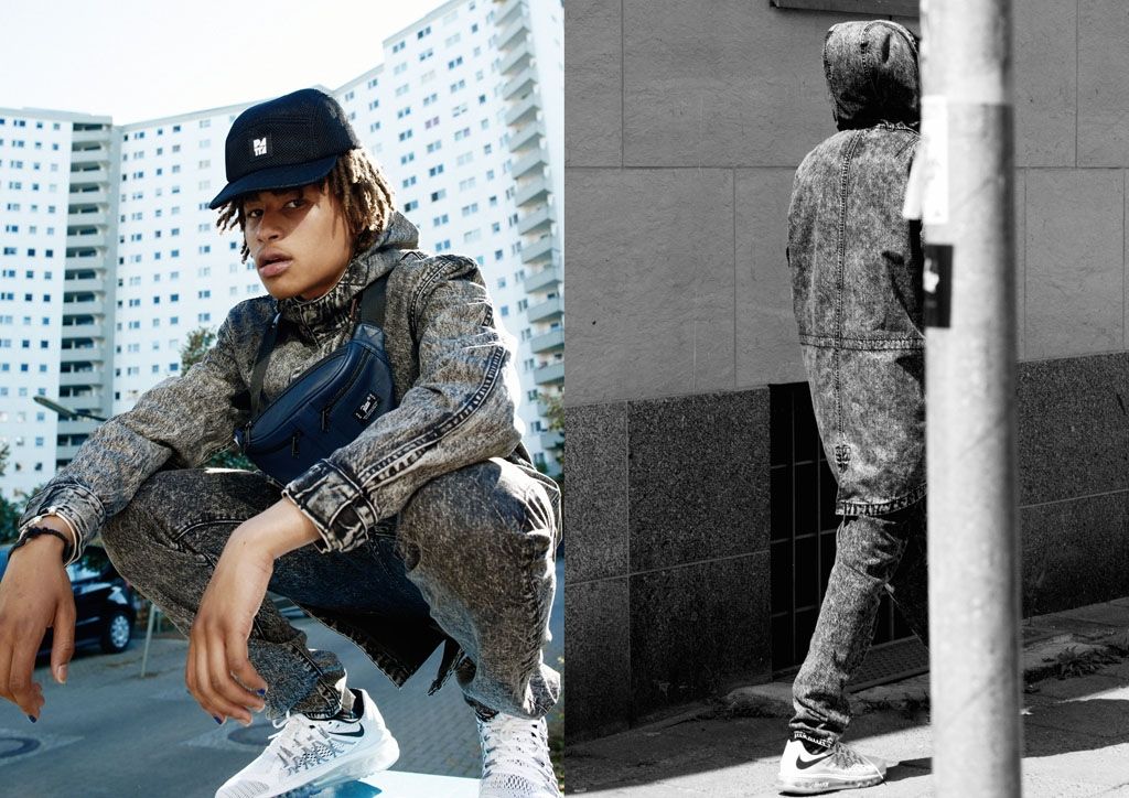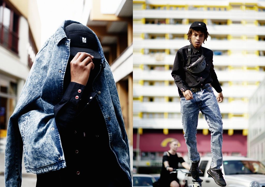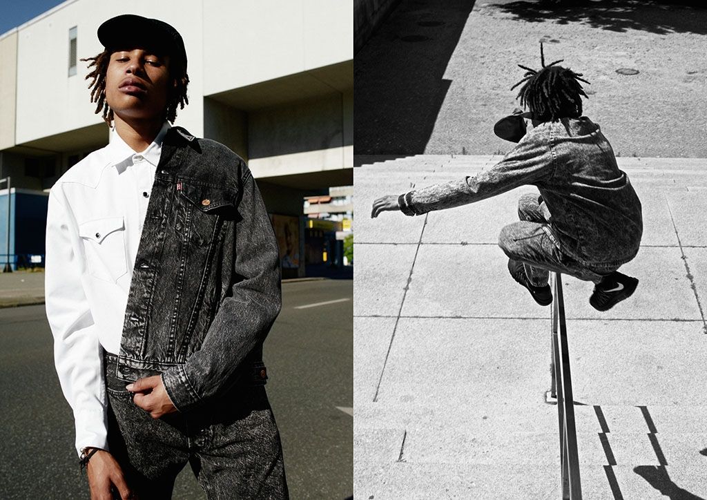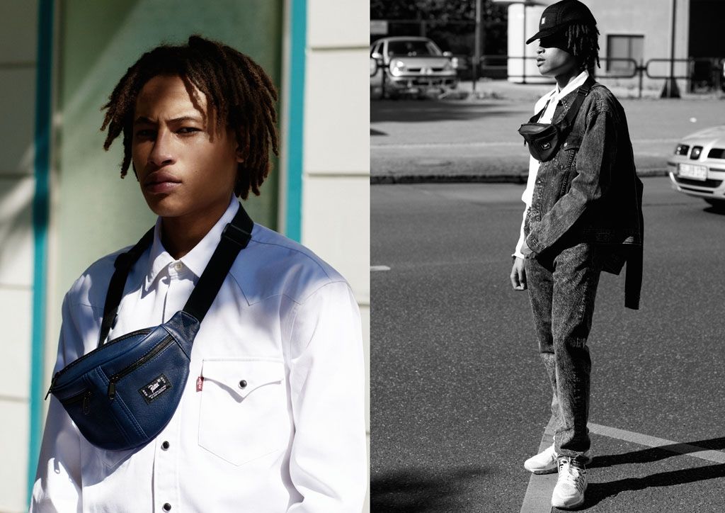 In this capsule we find a range of denim products with acid washing, that give a vintage touch to a collection that is purely inspired by the Hip Hop culture of the Golden Age. In the foreground we see the iconic 501 matched with a trucker jacket. A black western shirt, denim jacket and shirt and accessories such as 5-Panel and leather waist bags complete the collection.