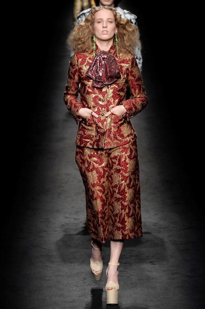 “It all happened pretty quickly” Collins told Vogue.com, “Gucci contacted my agents, and I’ve flown to Milan to meet the casting director”. About her runway look, she says: “It’s floral, baroque, something that Bowie would wear as Ziggy Stardust. And I have these amazing earrings—green diamond peace signs. I like to wear big earrings because I have big hair”.