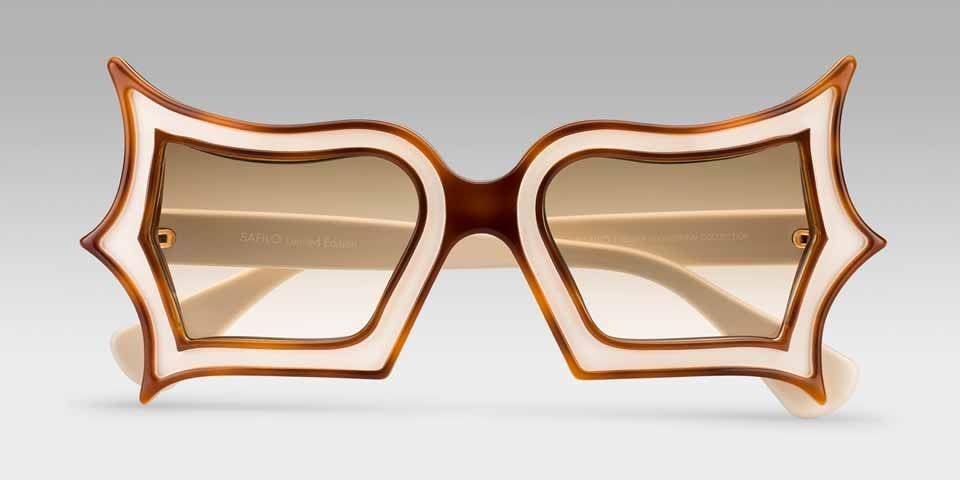In 1994 Safilo paid homage to this iconic design by producing a remake of these imaginative frames on sale at the Peggy Guggenheim Collection in Venice. Twenty years later, on the occasion of the 80th anniversary of the brand, the model was proposed again with bright blue acetate lenses and caramel profiles. Today you can find a new version of this collector's item: the structure is cream-colored, in perfect harmony with the havana profiles.