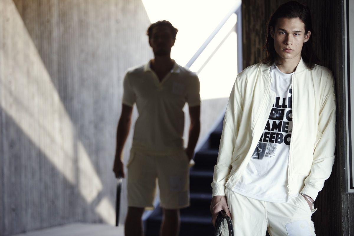 For SS16 Reebok Classic collaborates with Hall of Fame, streetweat brand based in Los Angeles, creating an exclusive capsule collection which celebrates the Court style of the ‘80s. Inspired by the sporty-chic style of tennis courts and country clubs, the line includes cream coloured T-shirts, jacket, shorts and hats made of French Terry enhanced with details and prints "glow in the dark".