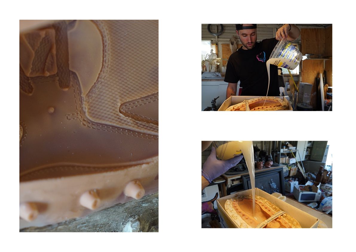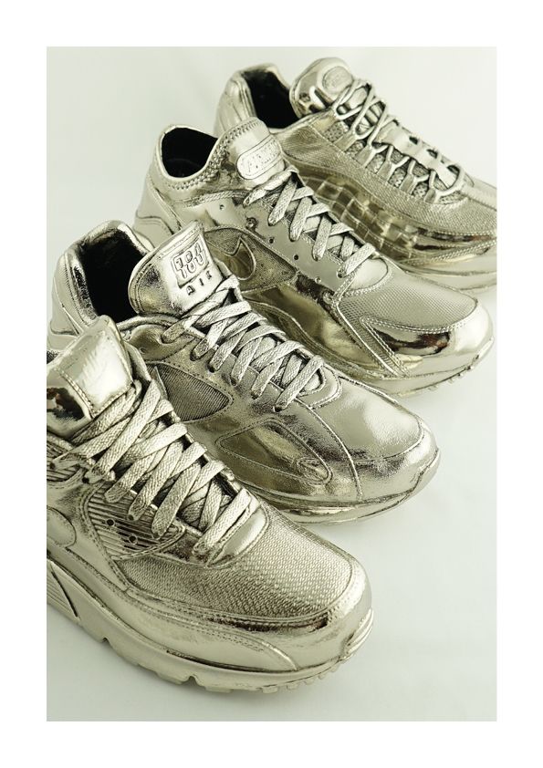 The Milanese store asked Los Angeles-based conceptual artist Matthew Senna, master of sneakers' customization, to unleash his creativity on the Air Max. He deconstructed the shoes, dipping into paint every single component, and his magical touch turned the sneakers into pure gold. The result is a fanzine comprising of awesome images which document Senna's work, along with One Block Down's editorial photographs of the Air Max 97, as well as other versions of the iconic Air Max, glowing gold, silver and bronze.