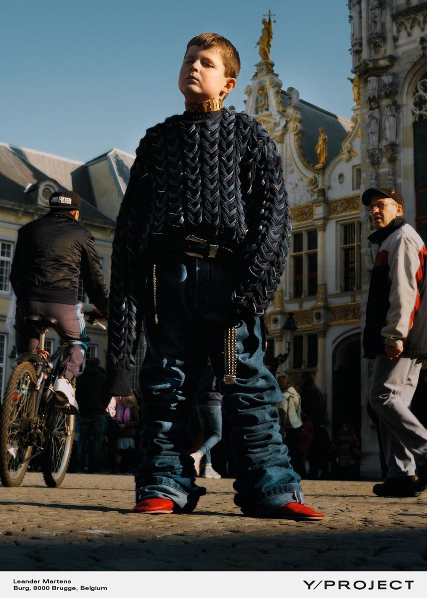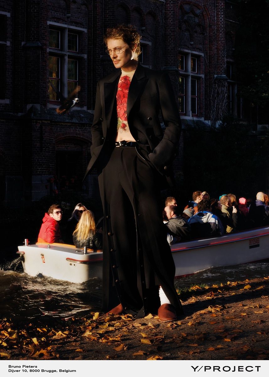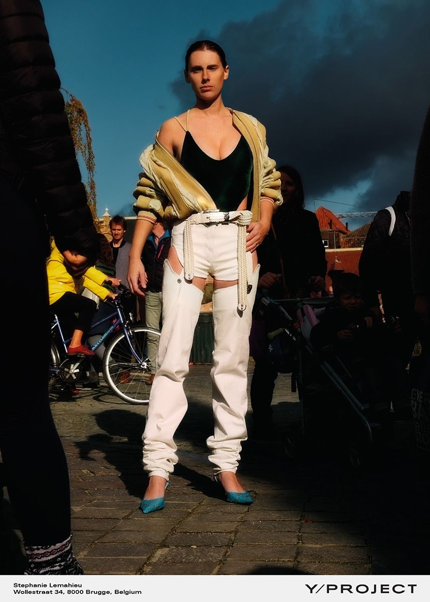 Glenn Martens, Creative Director of Y/PROJECT, has decided to return to his roots for the SS17. Born and raised in Bruges, in Belgium, Martens wanted to spent his own experience in this collection, whose campaign is shot in Bruges. The images are a real encounter between past and present, the gothic architecture so rigid and austere meets a modern and avantgarde aesthetic, creating a perfect harmony, such as those two worlds so diversified had always lived together. Even the protagonists of the campaign are refered to all those people who have left a mark in Glenn Martens’s life.