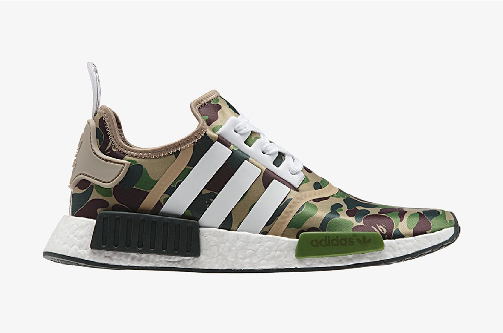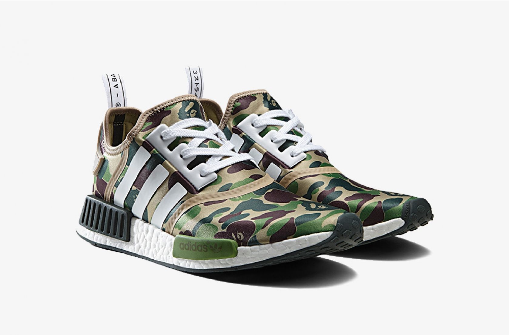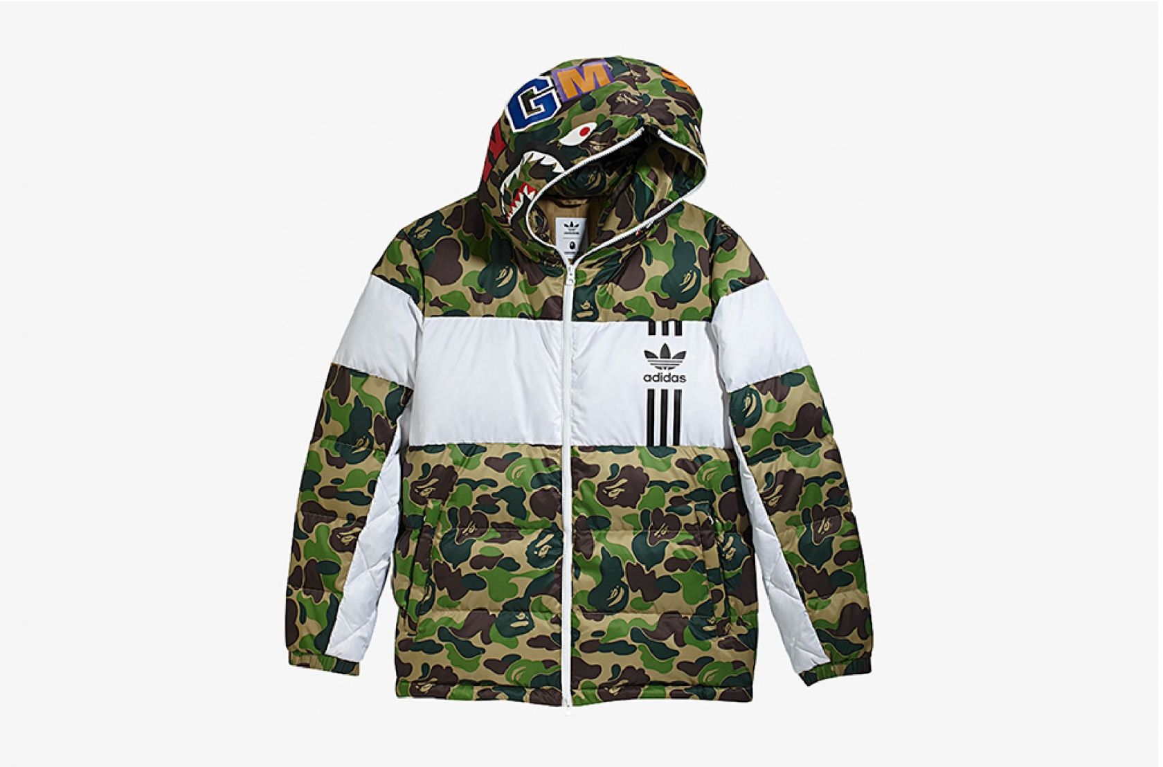 The line consists of two different NMD, two ID96 jacket and an oversized puffer and characterized by camo pattern in green and black variations, reinterprets with most current materials and details the unmistakable touch of A Bathing Ape.