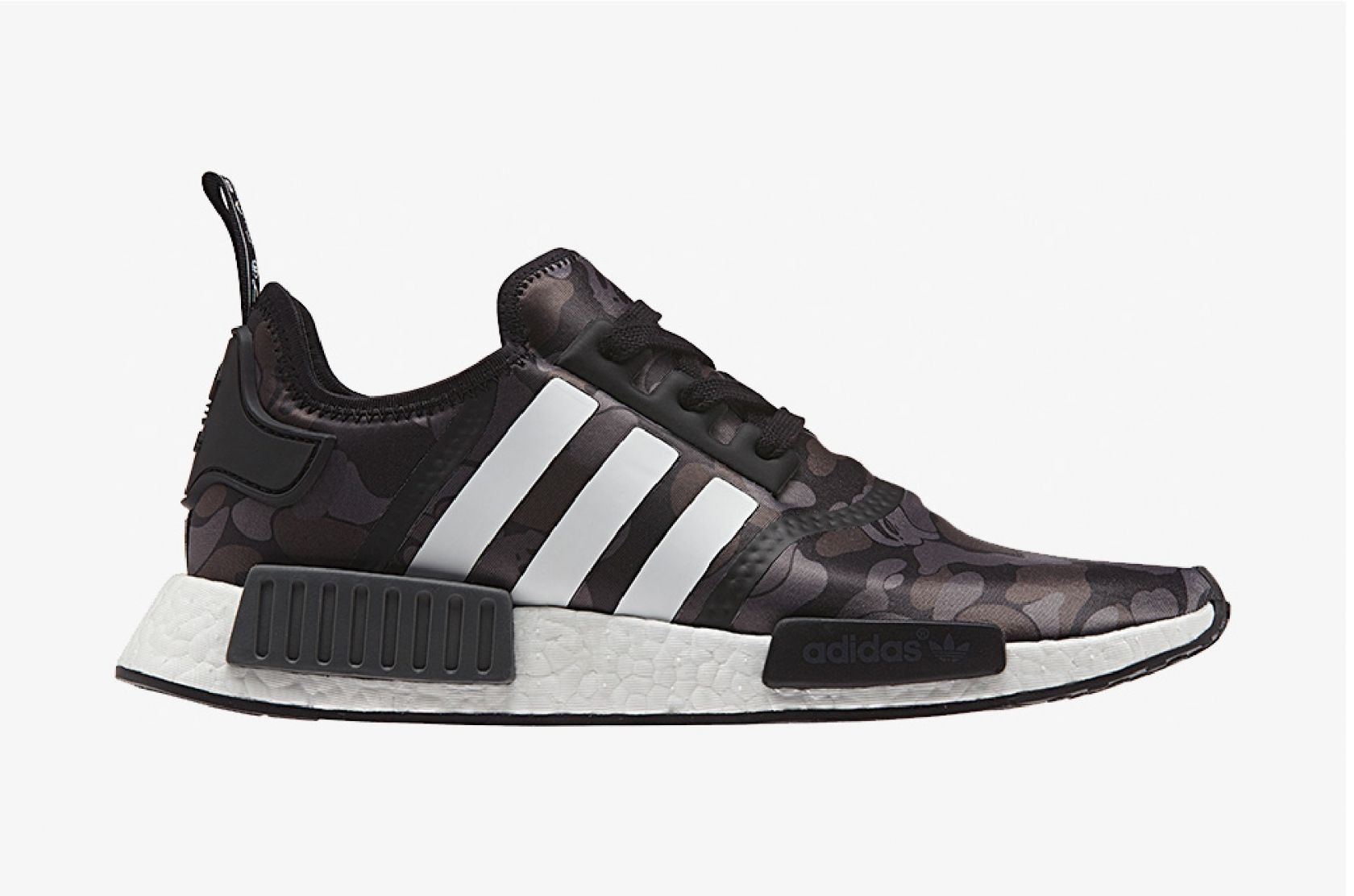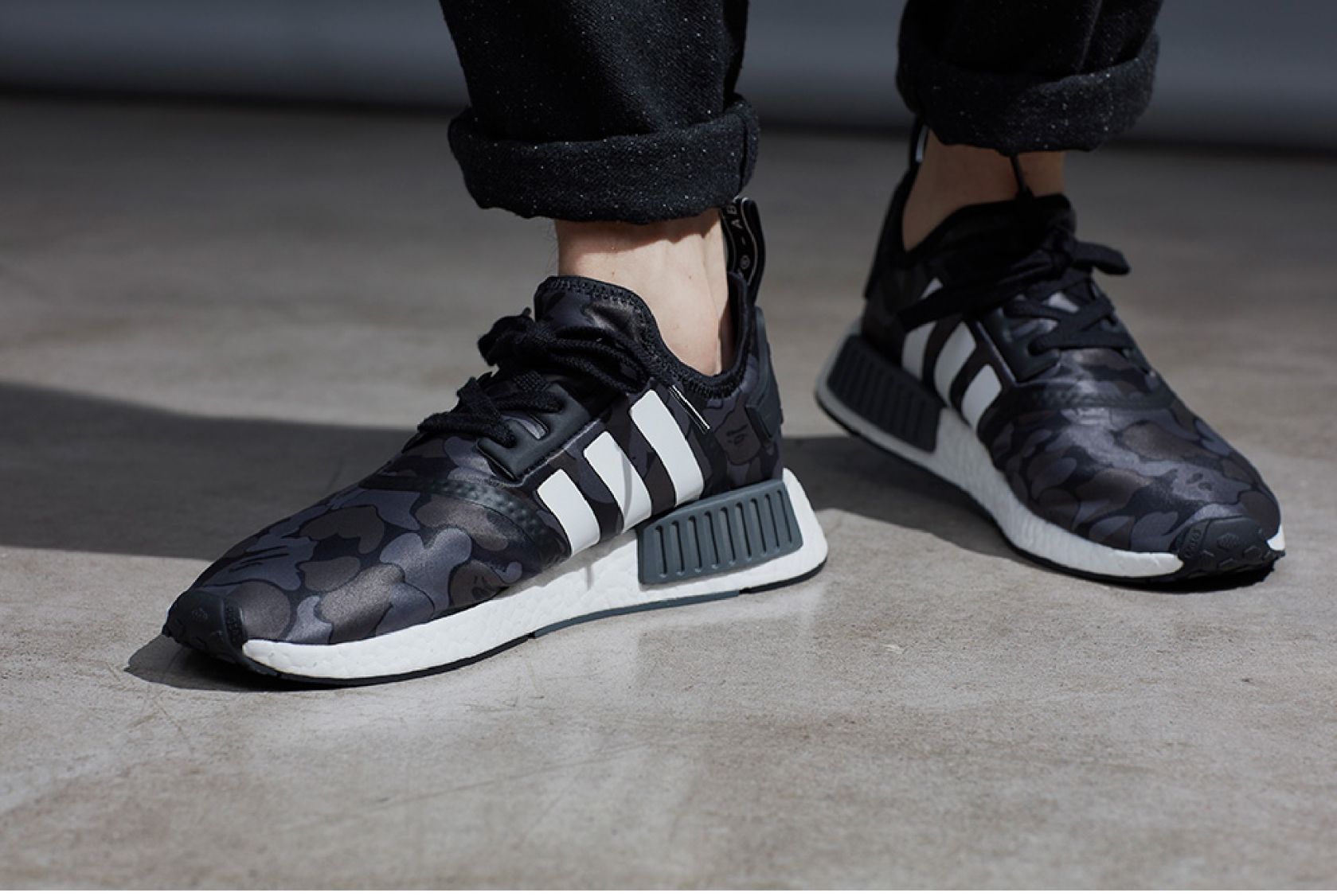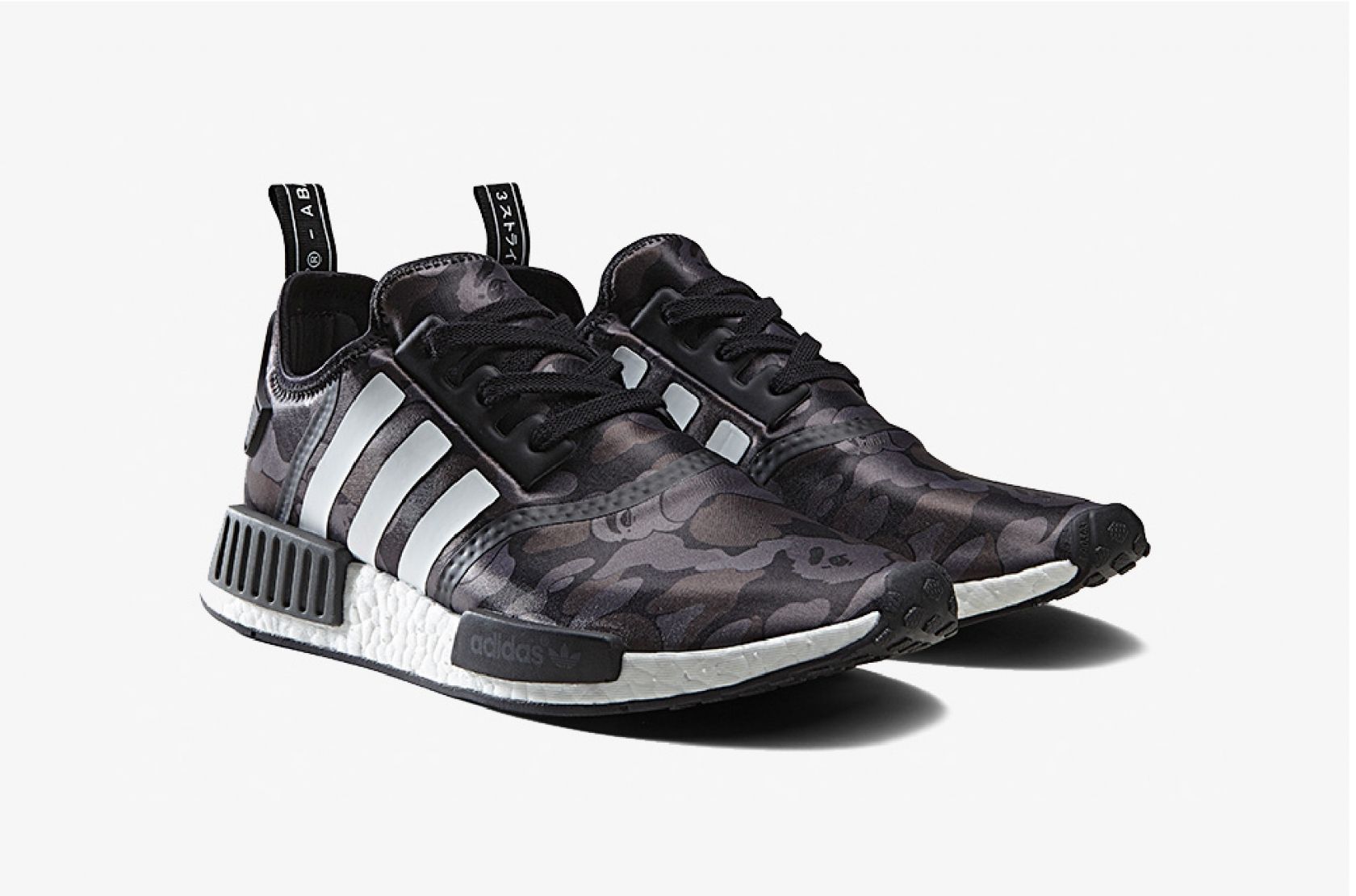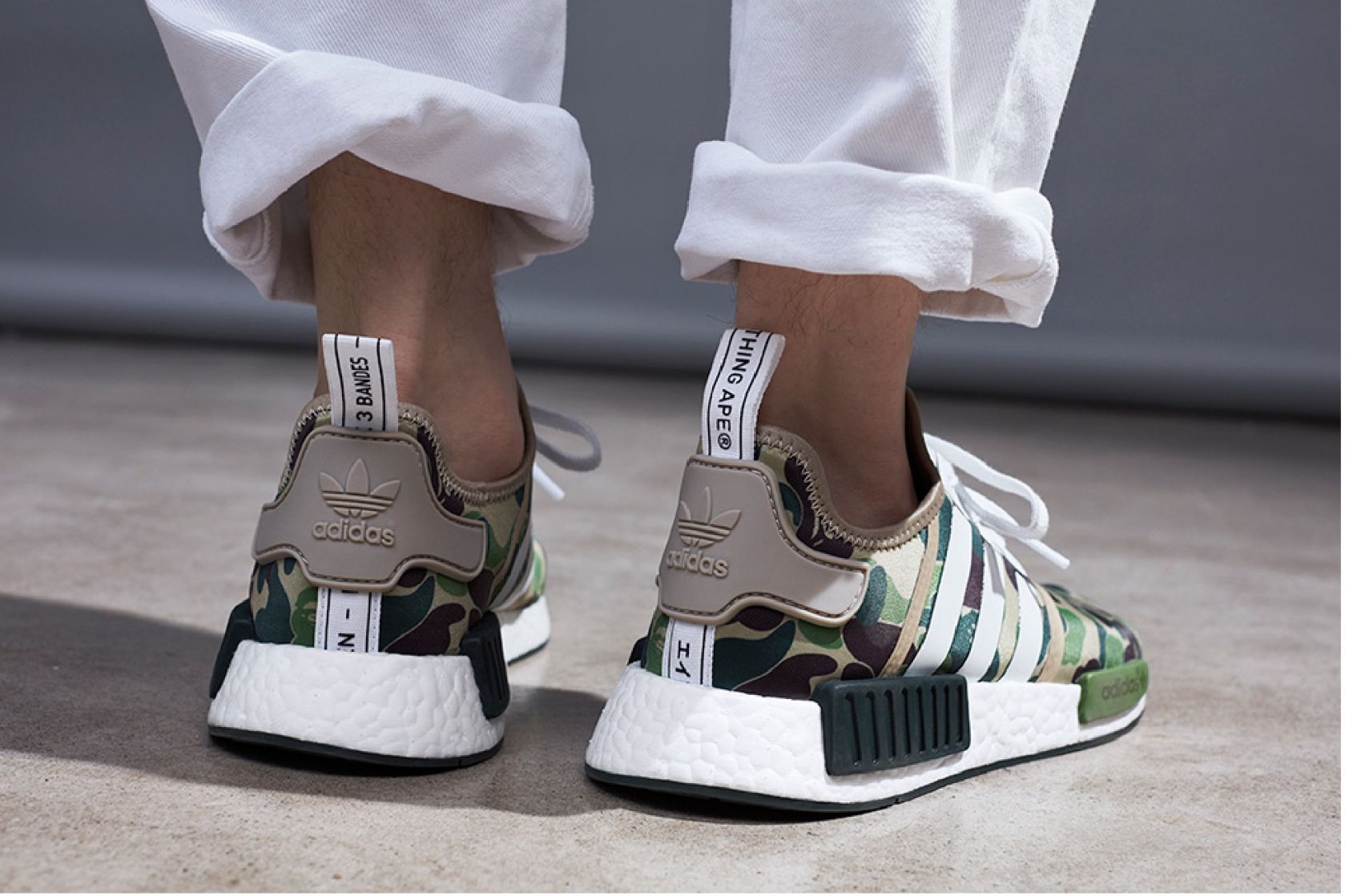 The line consists of two different NMD, two ID96 jacket and an oversized puffer and characterized by camo pattern in green and black variations, reinterprets with most current materials and details the unmistakable touch of A Bathing Ape.