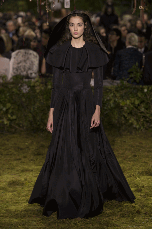 Another debut collection, this time with the haute couture, designed by Maria Grazia Chiuri for Dior comes from a dream world and turns into reality thanks to the skill of the many craft workers who work with the fashion house. As many little fairies who create the ball dress for tens of Cinderella, each of them work with Italian designers, creating a collection that pays tribute to the heritage of Dior and its founder Monsieur Christian. There are many themes loved by the man: the surrealist hints, tarot, astrological elements, flowers. There is a lot of his fashion starting from the legendary Bar jacket, which after the war marked a big change in style and now has a hood. Even the inspiration comes from Mr. Dior, from a picture taken in 1951 in Venice by Salvador Dali, where is masked as a lion for Don Carlos de Beistegui's party. So Chiuri through 59 look recalls the Marchesa Luisa Casati, Daisy Fellowes, Leonor Fini and Janine Janet, women with a whimsical elegance who really attended these balls. At the Musèe Rodin in Paris, between a ceiling mirrors, walls and floor covered by scented grass and moss with in the middle a big tree full of ribbons, crystal drops, bulbs and golden chains walks a row of young fairies, wrapped in romantic and sparkling fabrics that seem to come from a fairy tales. In this secret garden alternate black dresses, memory of male tuxedo, delicate colors, capes full of butterflies, lace and chiffon, evanescent long tulle skirts and discreet pinafores. Also the accessories are beautiful , Stephen Jones hat, from the wreaths to the animal shaped caps, as well as the unique jewelry created by Claude Lalanne. Applauding in the front row there is a long list of celebrities. Some names? Kirsten Dunst, Diane Kruger, Chiara Ferragni, Lauren Santo Domingo, Eva Herzigova, Olivia Palermo, Gaia Repossi, Bianca Jagger, all invited to the after show masquerade.