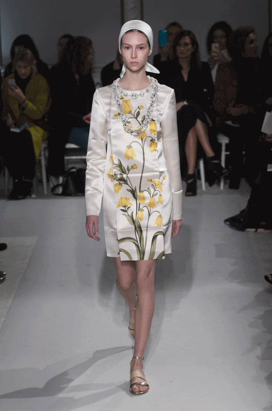 The “Musèe des Archives Nationales” in Paris, a place that preserves the “Armoir de fer”, where, along with other treasures, are conserved the letters of Marie Antoinette is filled with the jet set girls, glamour globetrotter. “Unconventional women who are not afraid of real beauty ...Curious, experimental, extravagant, with a nomad soul. And especially conscious of their femininity”. So Giambattista Valli defines the protagonists of his Haute Couture for SS17. They are contemporary princesses wearing pieces of fine Buccellati jewelry with simple tunics and cocktail ball gown with giant proportions, mixe virginal lace and crumpled tissues, folk references and floral patterns inspired by the sumptuous Persians Moughal gardens. From fake understatement mini dresses, passing through the ultra chic pyjama, to the clouds of tulle dresses reminiscent of courtesans, as the daywear gives way to evening the volume swell. Fouthy-six look that once again confirm Valli's great talent to give substance to a dream, creating elegant, a bit quirky, retro yet current clothes.