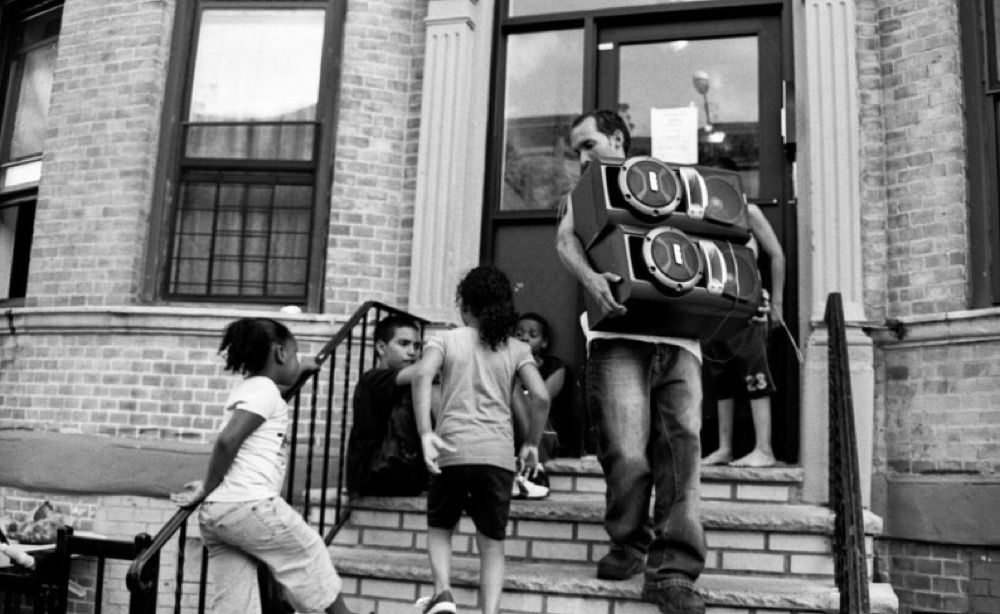 Although block parties may seem like a modern concept, some of the earliest examples of these 'gatherings' date back to the early 20th century. From gatherings to commemorate residents who had gone off to fight in World War I in 1918, to the block parties that gave rise to rap and the modern concept of DJing, the history of squatter neighbourhood parties is difficult to trace. In the mid-1970s, a suburban teenager, Joseph Saddler, aka Grandmaster Flash, had an idea: to prolong the rhythms of the records he liked best, he started popping the needle on vinyl, using two turntables at the same time, constantly changing the channels on a mixer. Around the same time, another South Bronx boy, Theodore Livingston, known as Grand Wizard Theodore, accidentally stopped the record with his hand and got a dissonant skid. With these elements, Bronx DJs, often using electricity stolen illegally from the city's street lamps, gave the turntable a new use as an instrument: DJing was born. There was no longer a need for expensive guitars and drums, it was enough to manipulate pre-existing beats, deliberately destroying the surface of their records: Run-DMC - the group from Hollis, Queens - would later say: 'With every jam we do, we break two needles'.