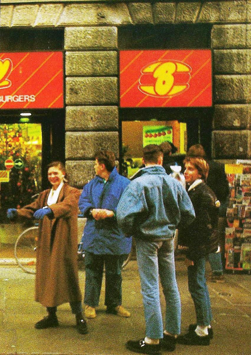 If today's restaurant industry has eradicated the passion for fast food, it is also and above all thanks to the Paninari and the historic building in Piazza San Babila. If originally it was the very Italian sandwiches of the Al Panino bar in Piazza Liberty that made the first Milanese 'Chicks' run, the opening of the first Burghy in Milan changed the rules. Burghy is run by the supermarket chain GS supermarket chain, Burghy embodied the American consumer style that animated the fast food way of life. The chain, acquired by Cremonini in 1985, owned 96 restaurants across the country by 1995, taking aim at giant McDonald's. The company gradually took over all Burghy restaurants throughout the boot, until the last one finally changed its sign in 2006.