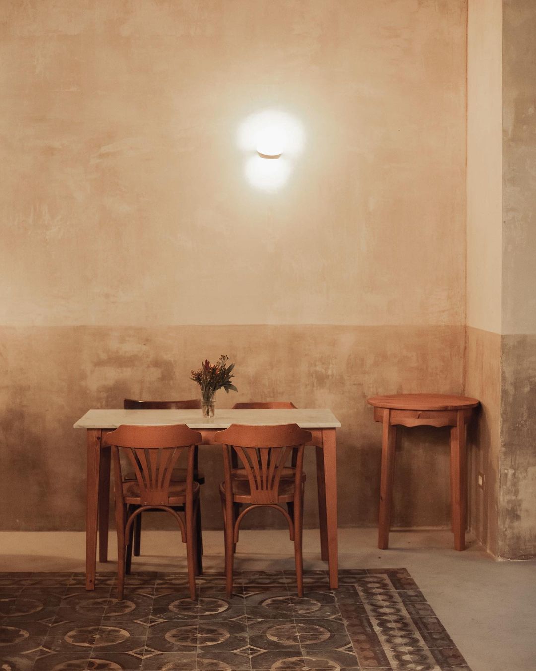 Artfully peeling walls and salvaged materials for Norah was drunk, a cocktail bar opened by Niccolò Caramiello and Stefano Rollo in Lambrate. The absolute protagonist of a list of coveted cocktails is absinthe, mixed and offered in the scenographic 'fountain' with water and sugar, accompanied by a delicious aperitif of Portuguese preserves, oysters, sausage and cheese.