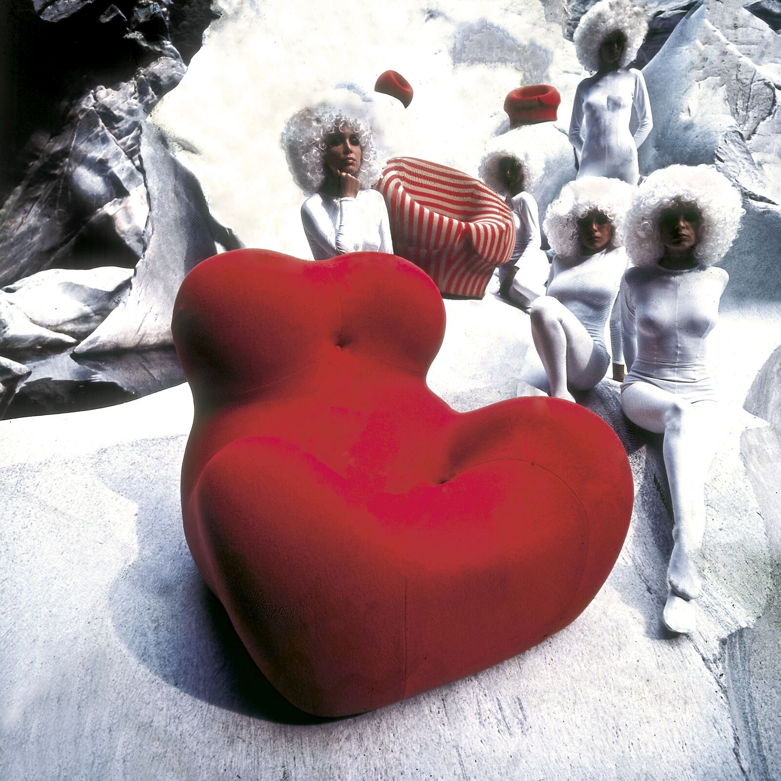 The Up Series, designed by Gaetano Pesce and produced by C&B (later B&B Italia) starting from 1969, represents an icon of Italian design. The armchairs, notable for their uniquely rounded appearance (one of them even ended up in a James Bond film) of the '60s and '70s, are exhibited in museums worldwide. It comprises seven seats, each inspired by human anatomy, with UP7 resembling a fragment of the Colossus of Constantine now exhibited at the Capitoline Museums. Despite the short commercialization until 1973, the armchairs achieved great success, becoming symbols of the period and radical design and are still considered among the most famous design products of those years.