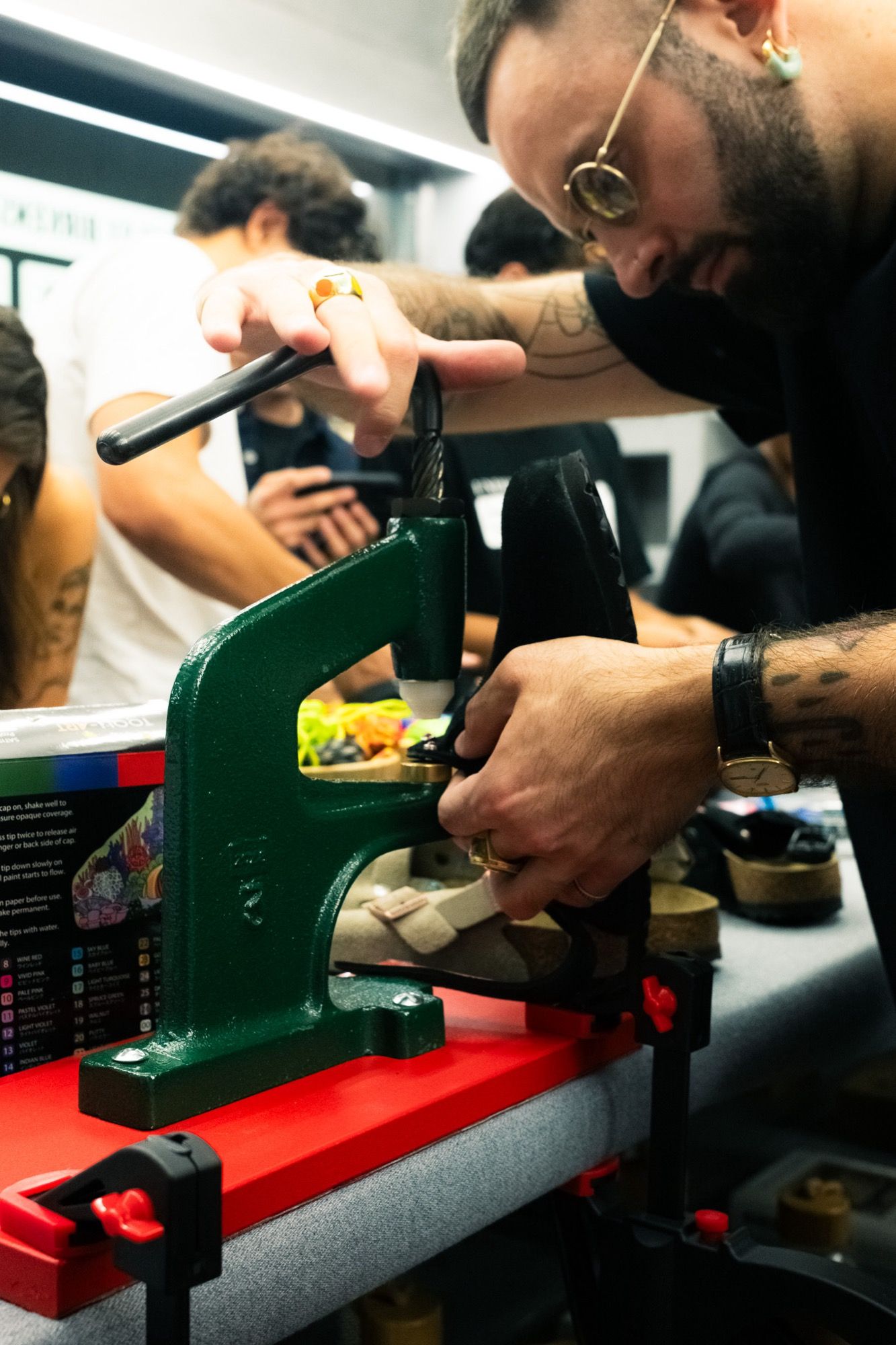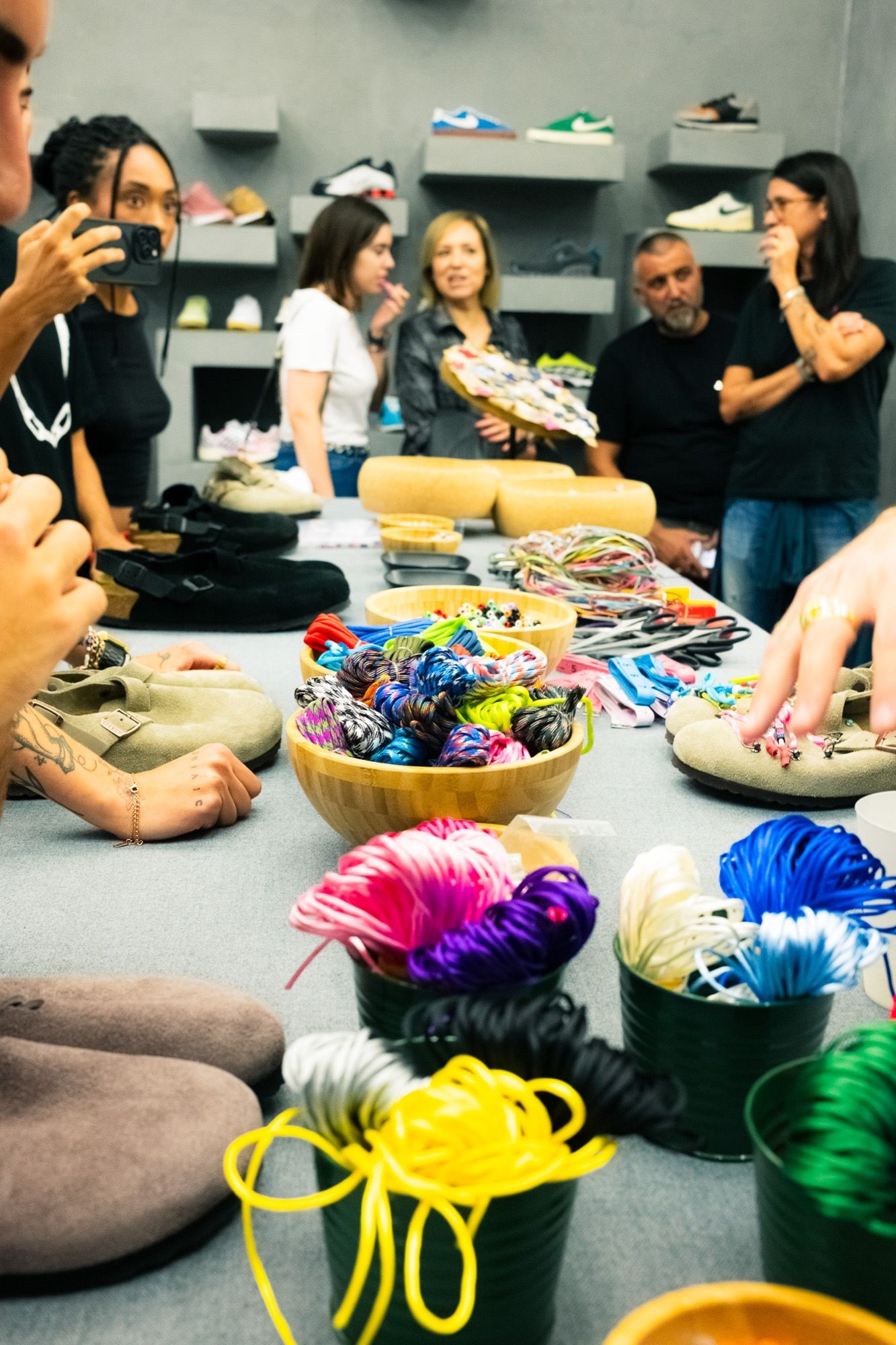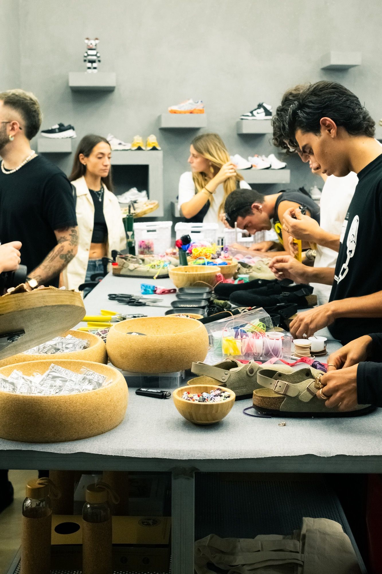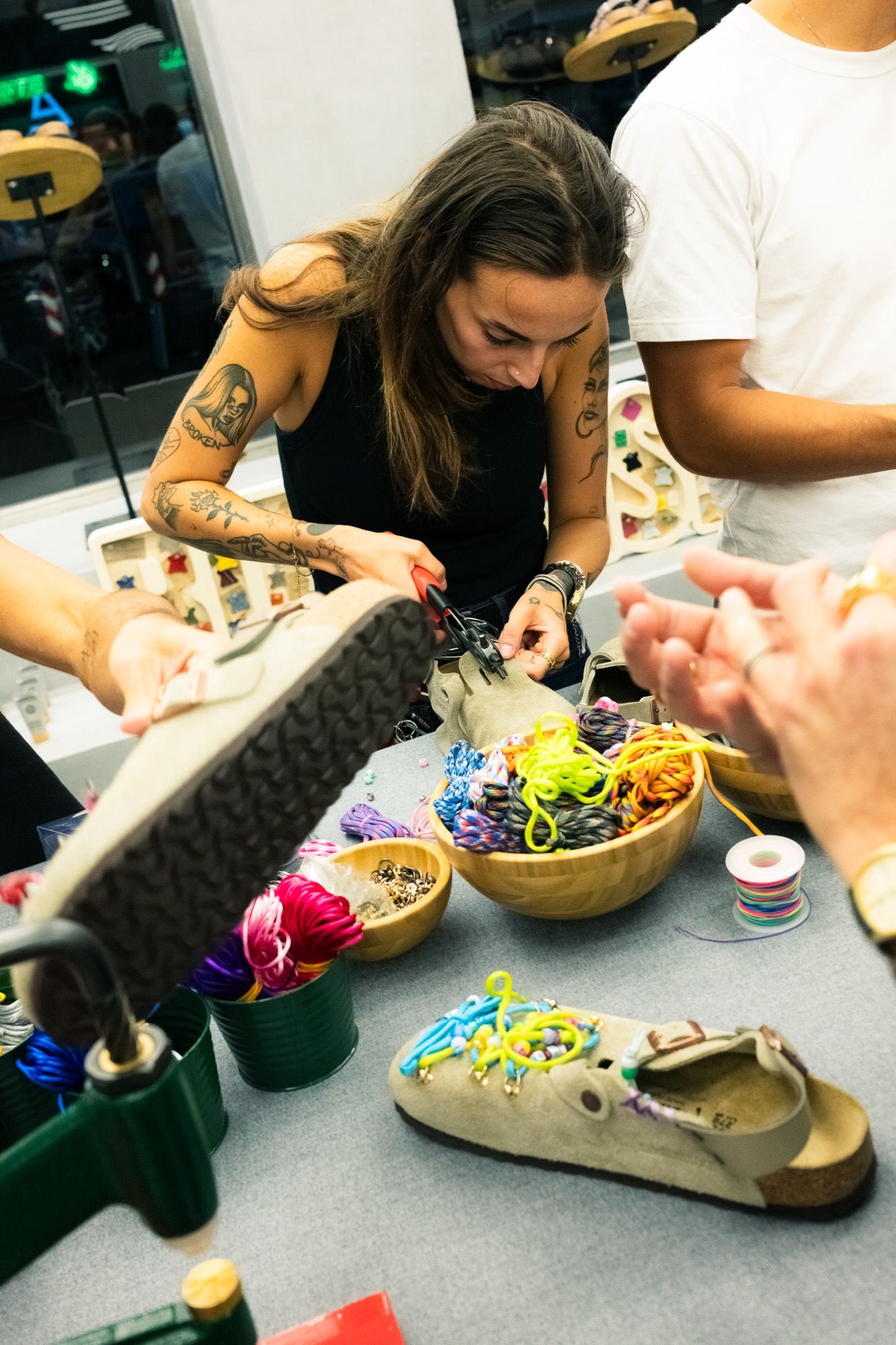 In addition to the opportunity to purchase the new Tokio Suede, the event offered a truly special experience alongside Jacopo De Carli. The renowned sneaker restorer and creative artist customized the footwear for all attendees who purchased a pair of Tokio Suede in-store during the event. Using paint, beads, studs, and laces, De Carli transformed each pair of BIRKENSTOCK into a unique piece, adding a touch of originality that made the shopping experience unforgettable. Additionally, the creative artist held an exclusive workshop where participants could learn techniques and tricks to customize their own shoes. Between exclusive gadgets and moments of shared creativity, the initiative further strengthened the connection between BIRKENSTOCK and the streetstyle scene, reaffirming the brand's commitment to engaging with new trends and a vibrant and dynamic urban context like Rome.