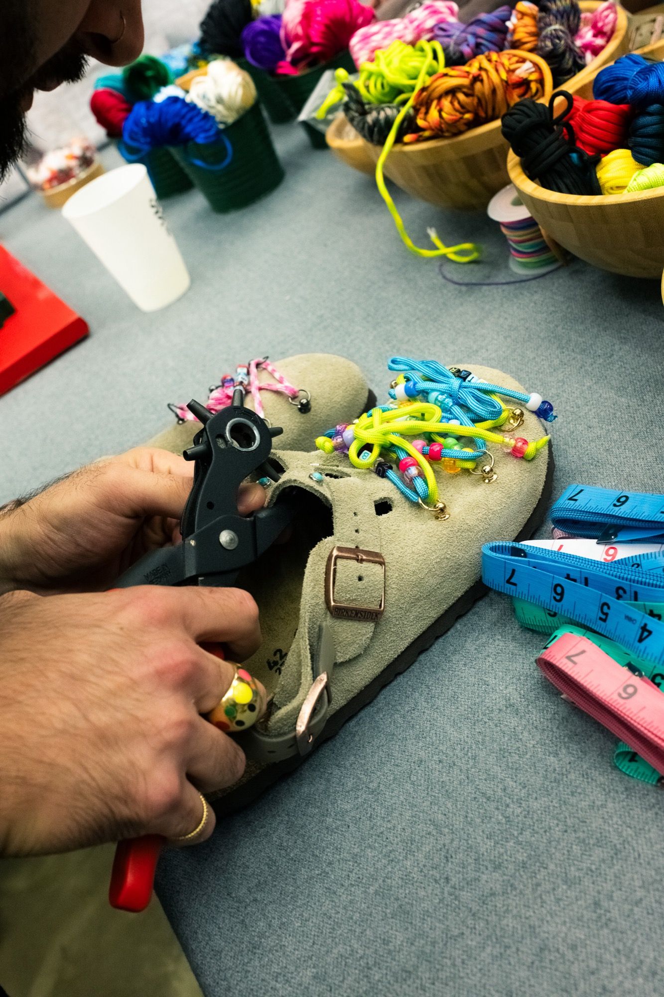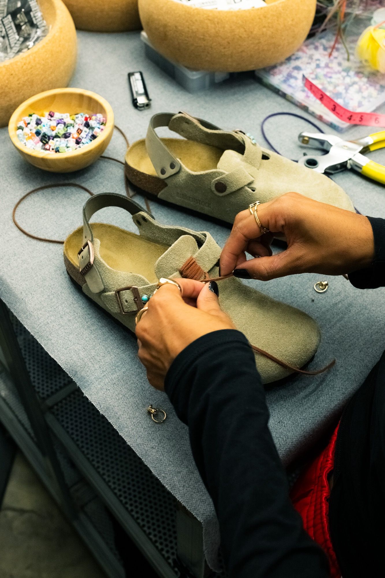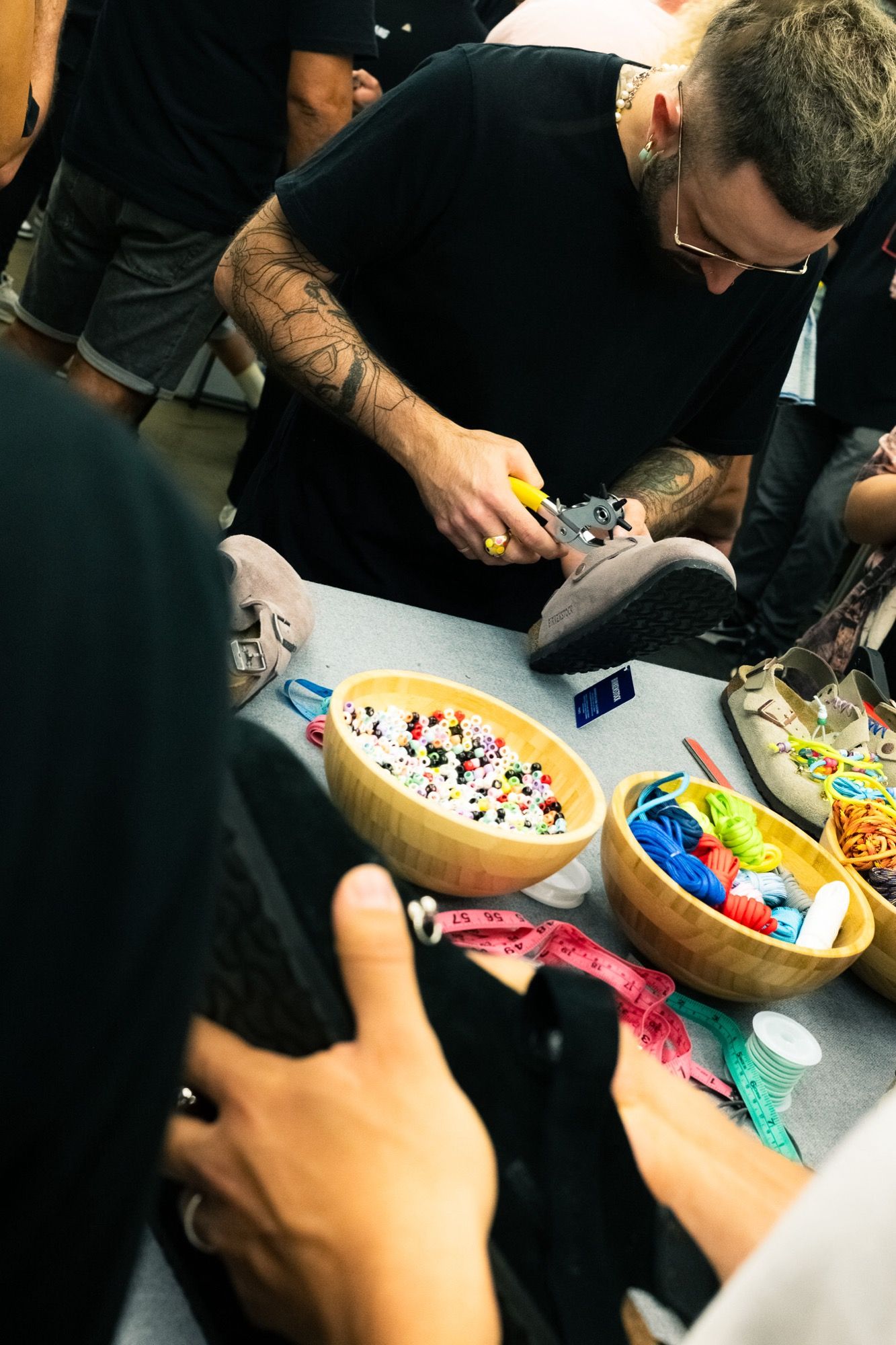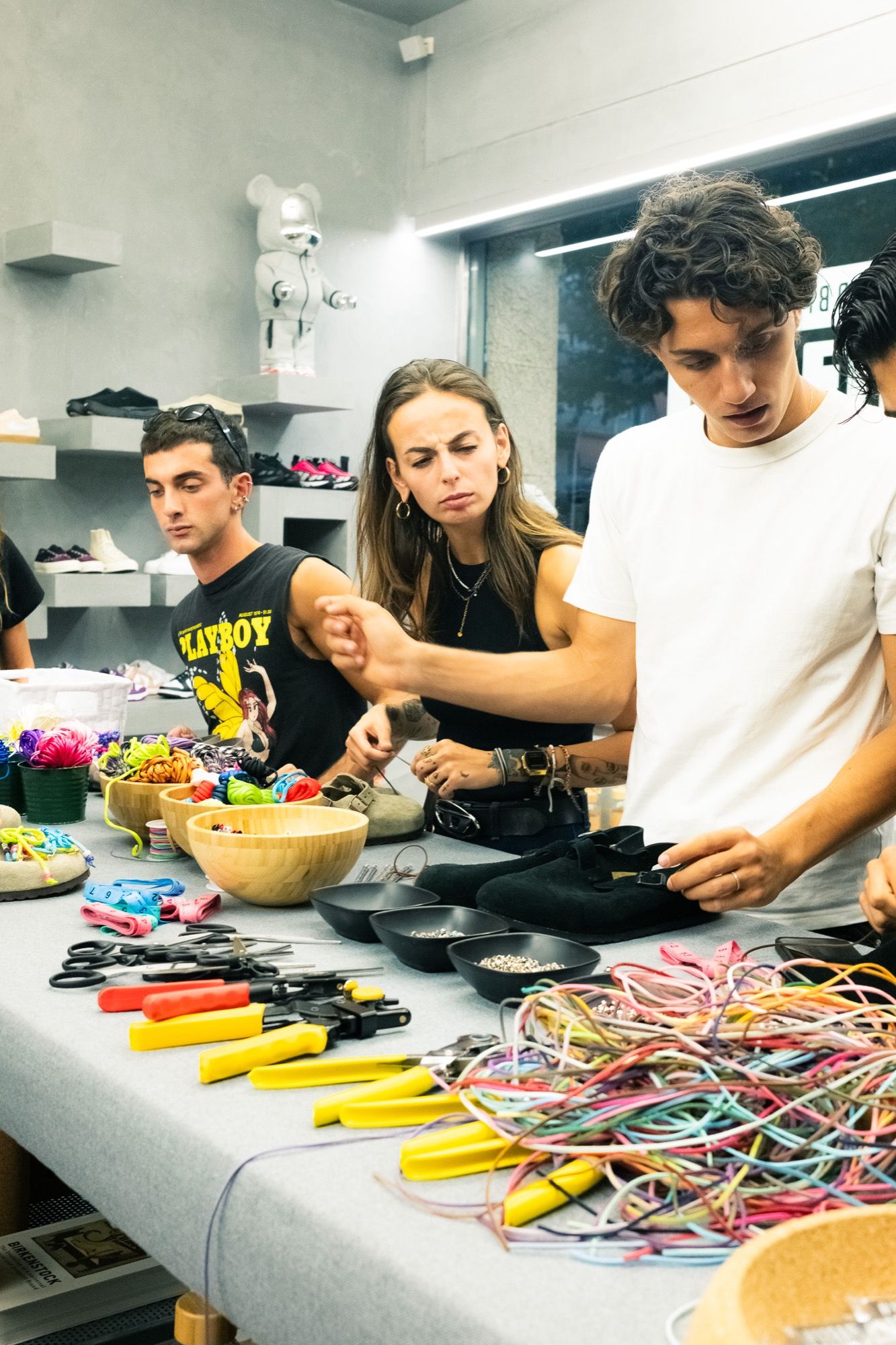 In addition to the opportunity to purchase the new Tokio Suede, the event offered a truly special experience alongside Jacopo De Carli. The renowned sneaker restorer and creative artist customized the footwear for all attendees who purchased a pair of Tokio Suede in-store during the event. Using paint, beads, studs, and laces, De Carli transformed each pair of BIRKENSTOCK into a unique piece, adding a touch of originality that made the shopping experience unforgettable. Additionally, the creative artist held an exclusive workshop where participants could learn techniques and tricks to customize their own shoes. Between exclusive gadgets and moments of shared creativity, the initiative further strengthened the connection between BIRKENSTOCK and the streetstyle scene, reaffirming the brand's commitment to engaging with new trends and a vibrant and dynamic urban context like Rome.