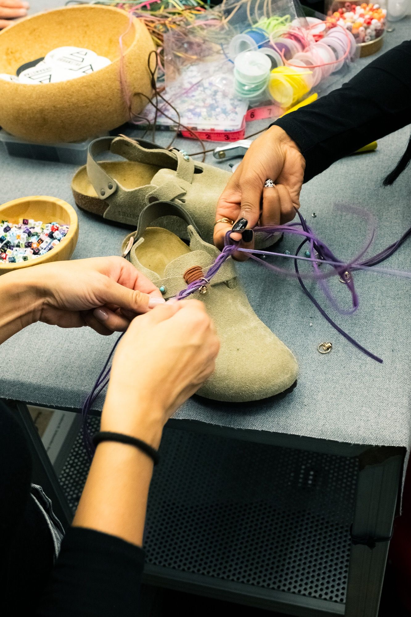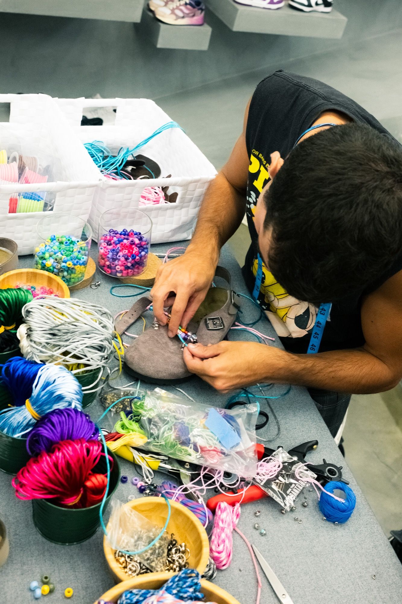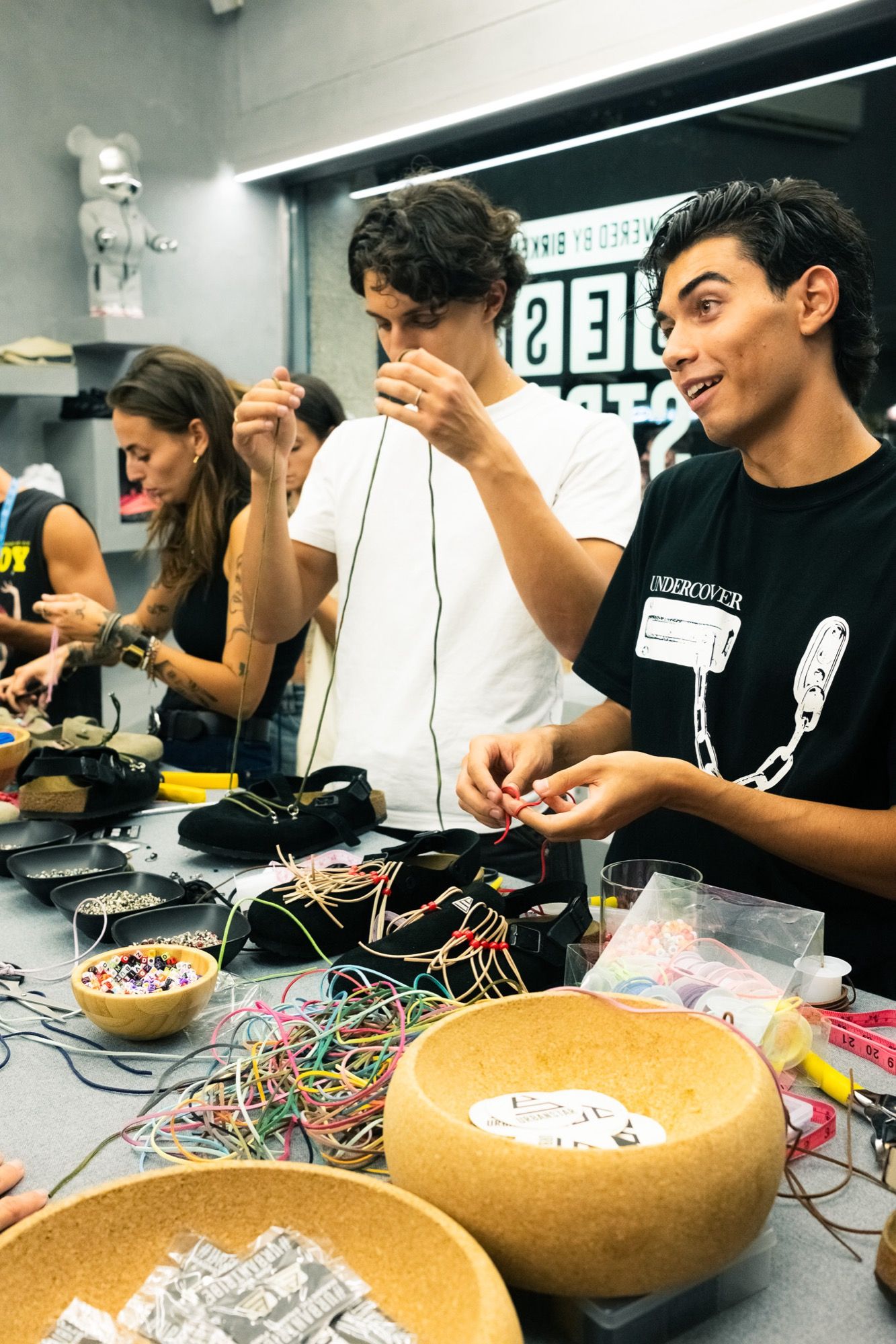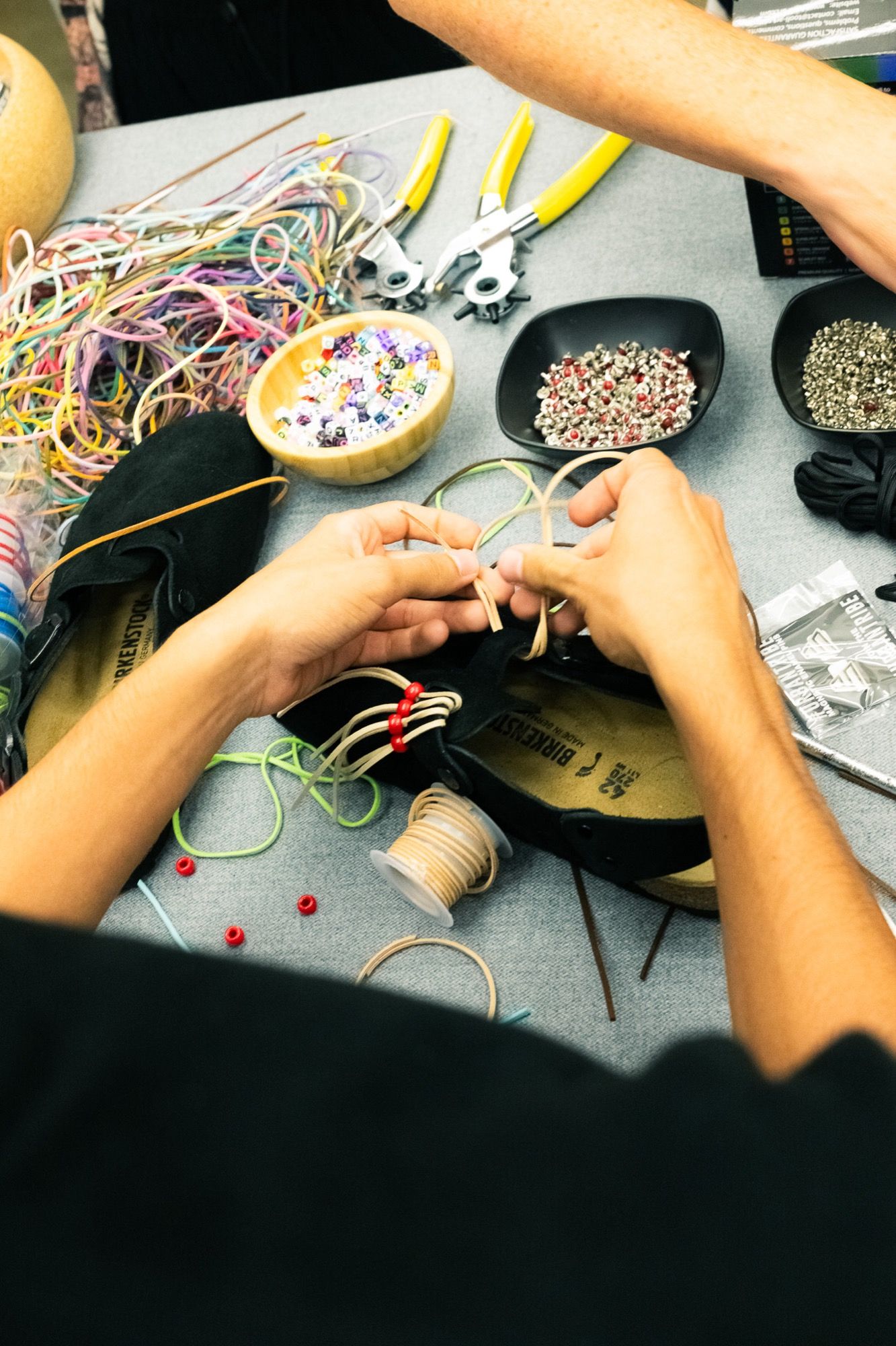 In addition to the opportunity to purchase the new Tokio Suede, the event offered a truly special experience alongside Jacopo De Carli. The renowned sneaker restorer and creative artist customized the footwear for all attendees who purchased a pair of Tokio Suede in-store during the event. Using paint, beads, studs, and laces, De Carli transformed each pair of BIRKENSTOCK into a unique piece, adding a touch of originality that made the shopping experience unforgettable. Additionally, the creative artist held an exclusive workshop where participants could learn techniques and tricks to customize their own shoes. Between exclusive gadgets and moments of shared creativity, the initiative further strengthened the connection between BIRKENSTOCK and the streetstyle scene, reaffirming the brand's commitment to engaging with new trends and a vibrant and dynamic urban context like Rome.