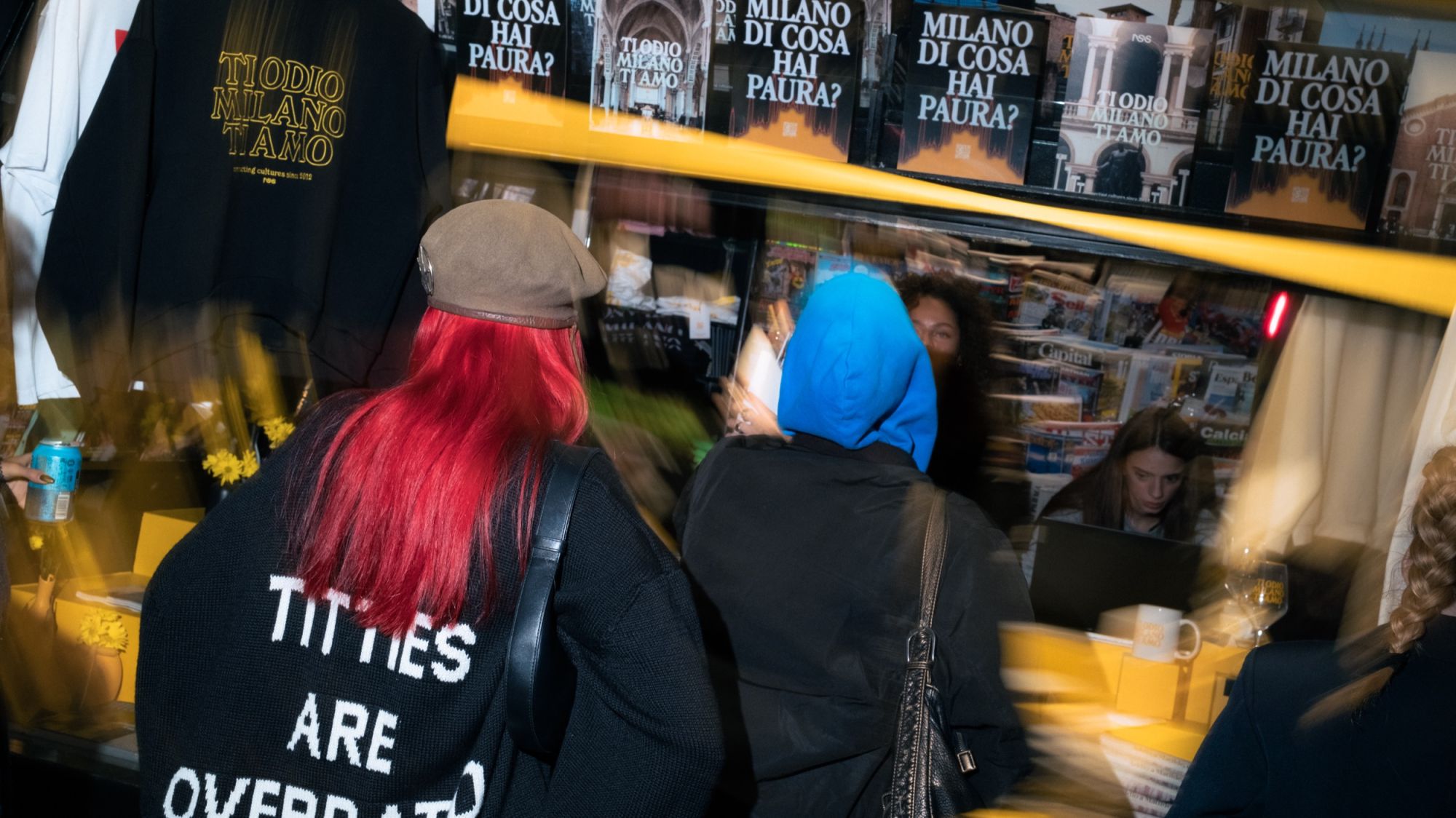 Yesterday, October 30th, on the eve of Halloween, nss edicola chose to celebrate with its community at the newsstand in Piazza Bruno Buozzi, which has now become a local landmark. The evening was filled with energy, starting with a performance by the European Vampire, followed by a DJ set by Rebecca Bernardi. As always, with the help of Brewdog beers, the atmosphere was impeccable throughout the night, reaching the perfect level of "spooky vibes". The event also served as the launch of the new Ti Odio Milano Ti Amo collection, featuring the iconic black ton-sur-ton shirts and hoodies. With photos by Alberto Castellano capturing every moment, it’s safe to say that the first Halloween at nss edicola will go down in history.
