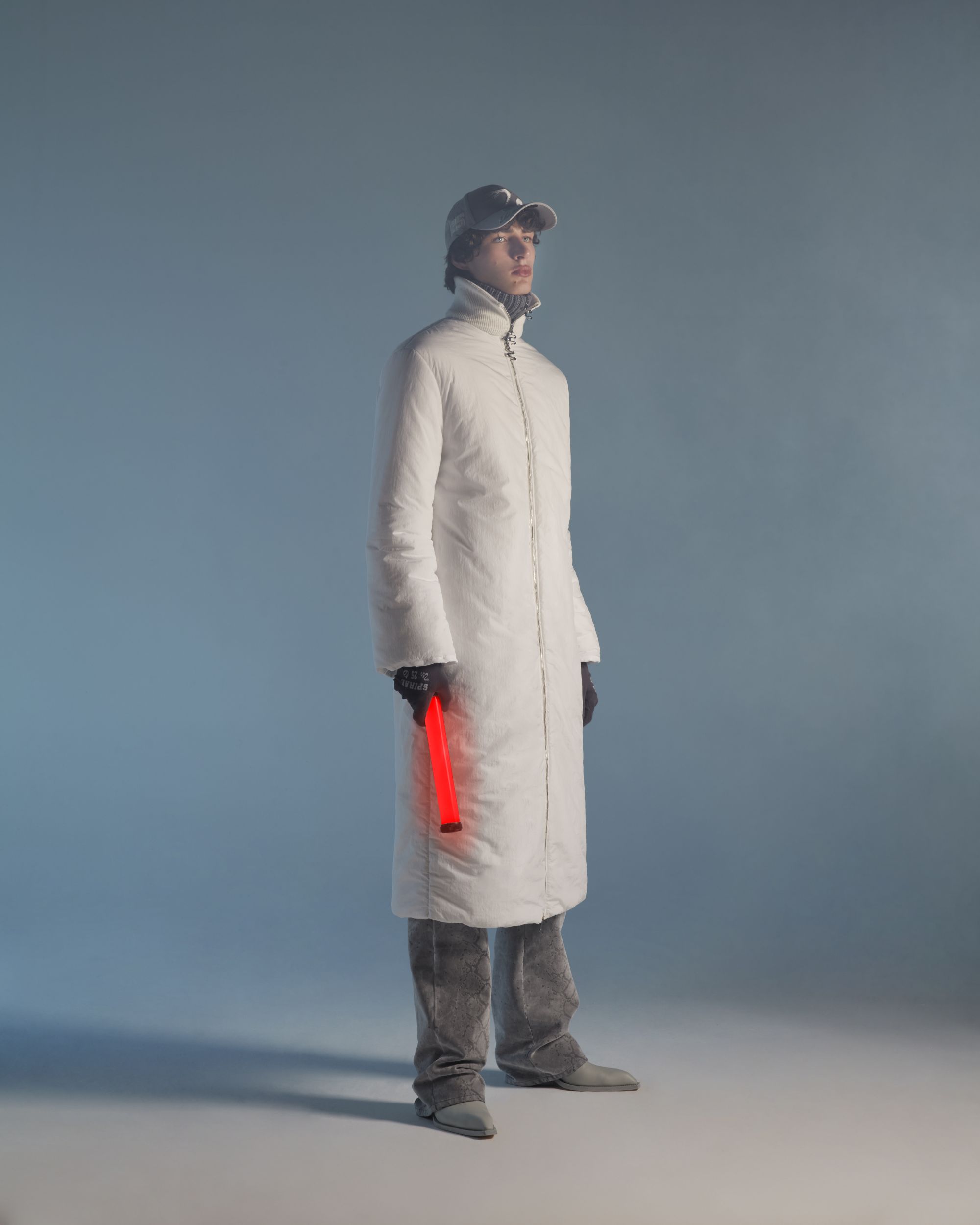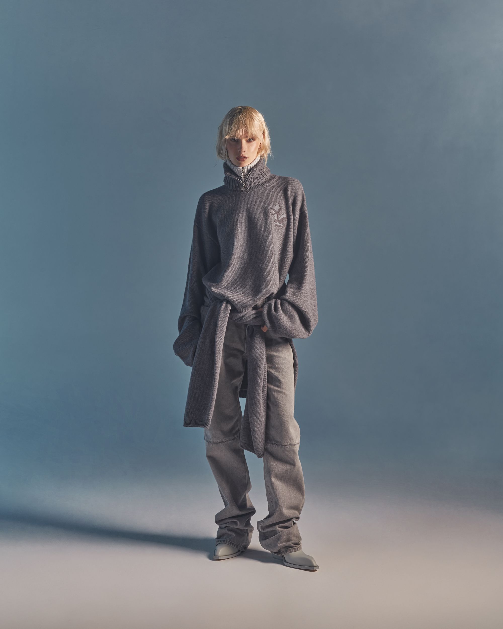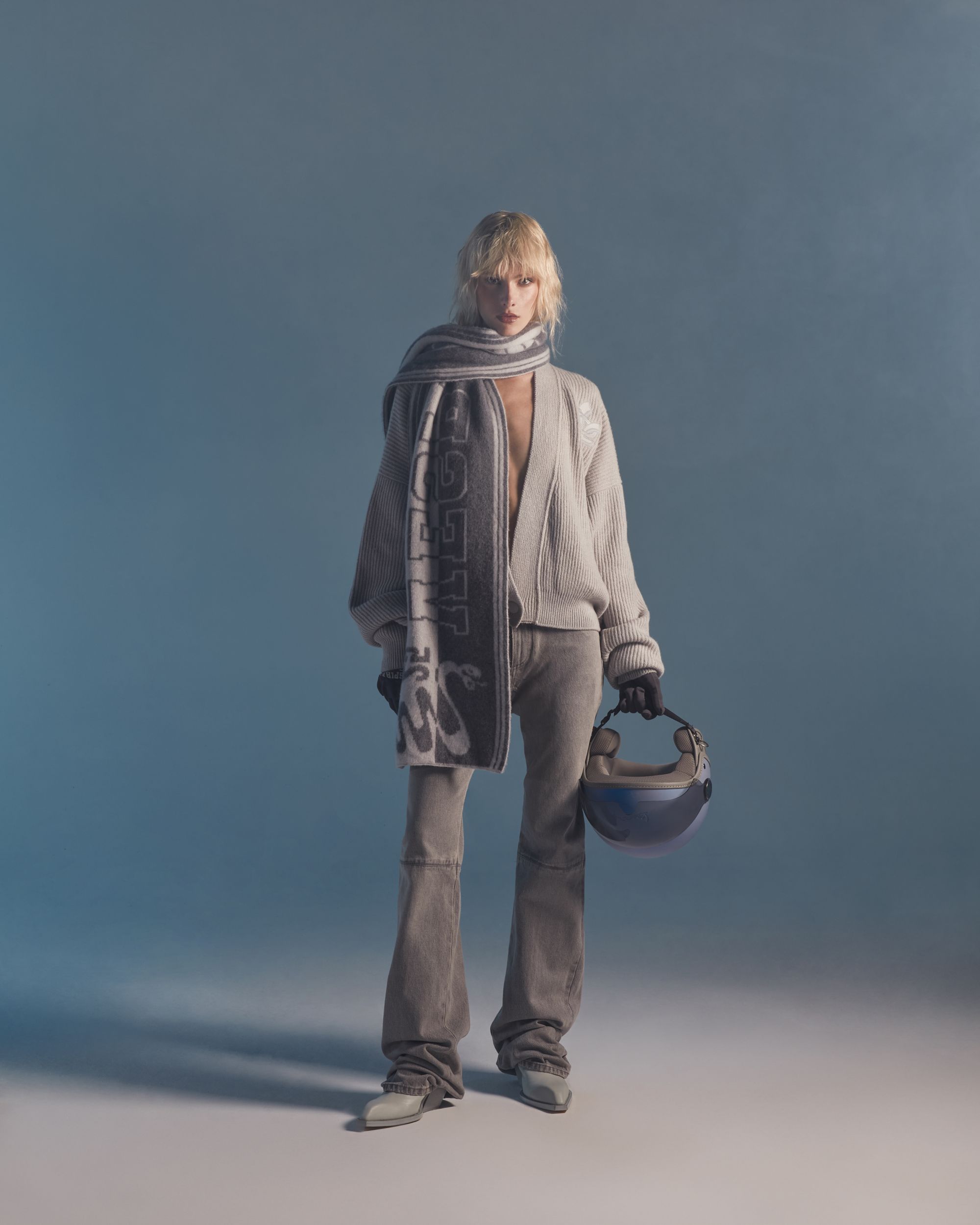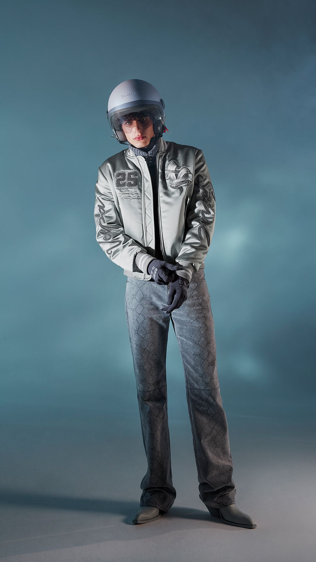 The collection offers a selection of revisited winter pieces, adorned with refined fabrics and meticulous details that turn each item into a wearable work of art. Like a snake that changes colour to hide, defend or seduce itself, the cold, iridescent fabrics selected for the capsule reflect this talent in a winter setting of immaculate snow. Among the key pieces is a bomber jacket in icy, iridescent shades, adorned with graffiti-style embroidered patches in grey and white, and embellished with a maxi-snake at the back. The wool and cashmere knitwear, comprising cardigans and relaxed-fit jumpers, adds a timeless touch, while the tracksuit ensemble adorned with serpentine motifs adds an urban, contemporary note.