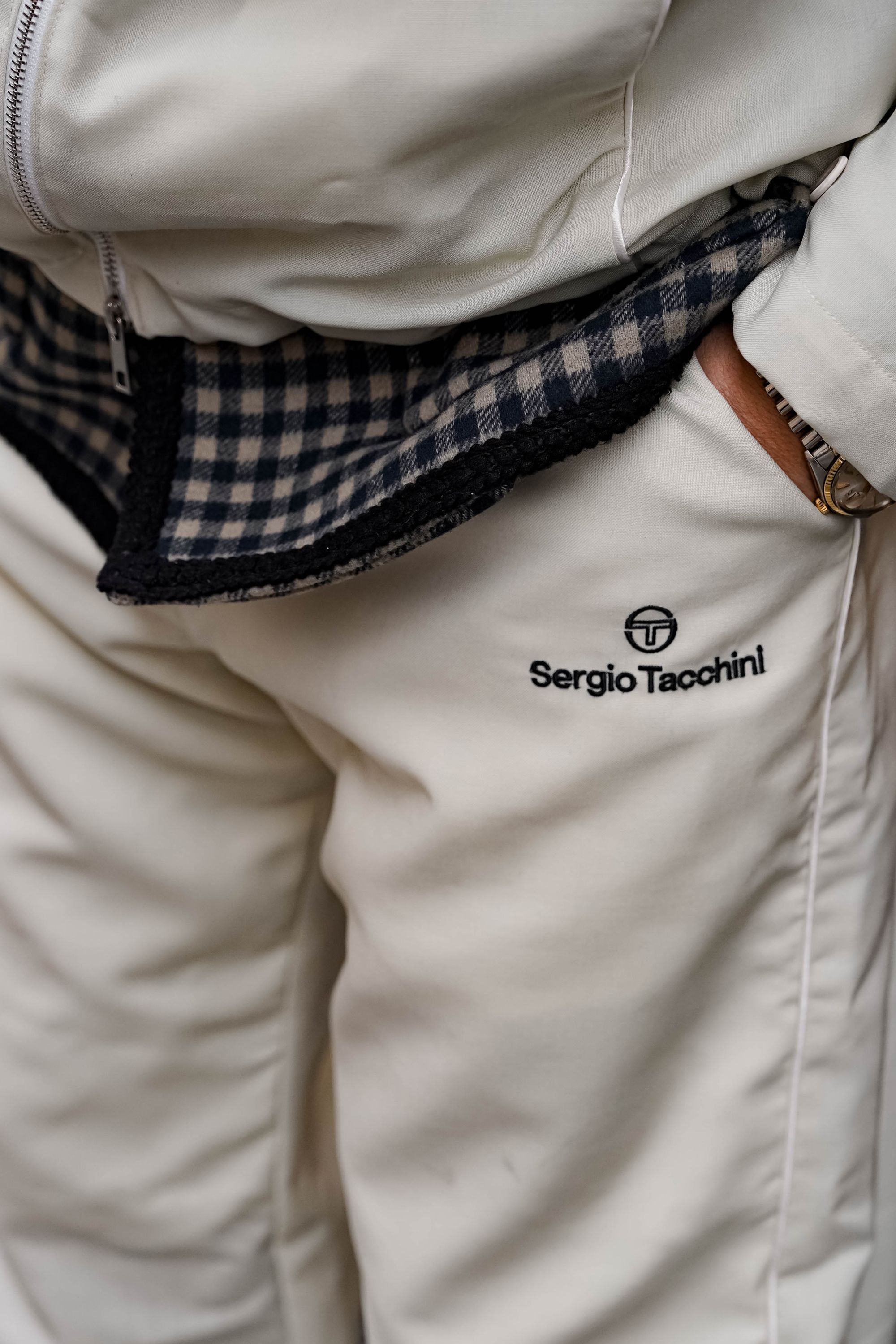 Designed as a tribute to craftsmanship, the space harmoniously blended tradition and modernity, with carefully arranged fabric rolls, tailor’s coats hanging in place, and a large central table dedicated to creation, all surrounded by contemporary pieces of Italian design. Each guest had the opportunity to create a unique tracksuit that reflected their personal style. Among the most striking creations were a reversible tracksuit, an ultra-oversized model with sculptural proportions, and a version inspired by tailored suits, blurring the lines between couture and sportswear, as well as references to iconic fashion pieces, like Chanel’s little black jacket reinterpreted in a sportswear version. Since its inception, the Sergio Tacchini tracksuit has been built on iconic silhouettes that have shaped its history, all while integrating advanced textile research where innovation meets sophistication. More than just an event, Officine di Stile marks the beginning of a new momentum for Sergio Tacchini, reaffirming its pioneering status and redefining the future of the tracksuit.