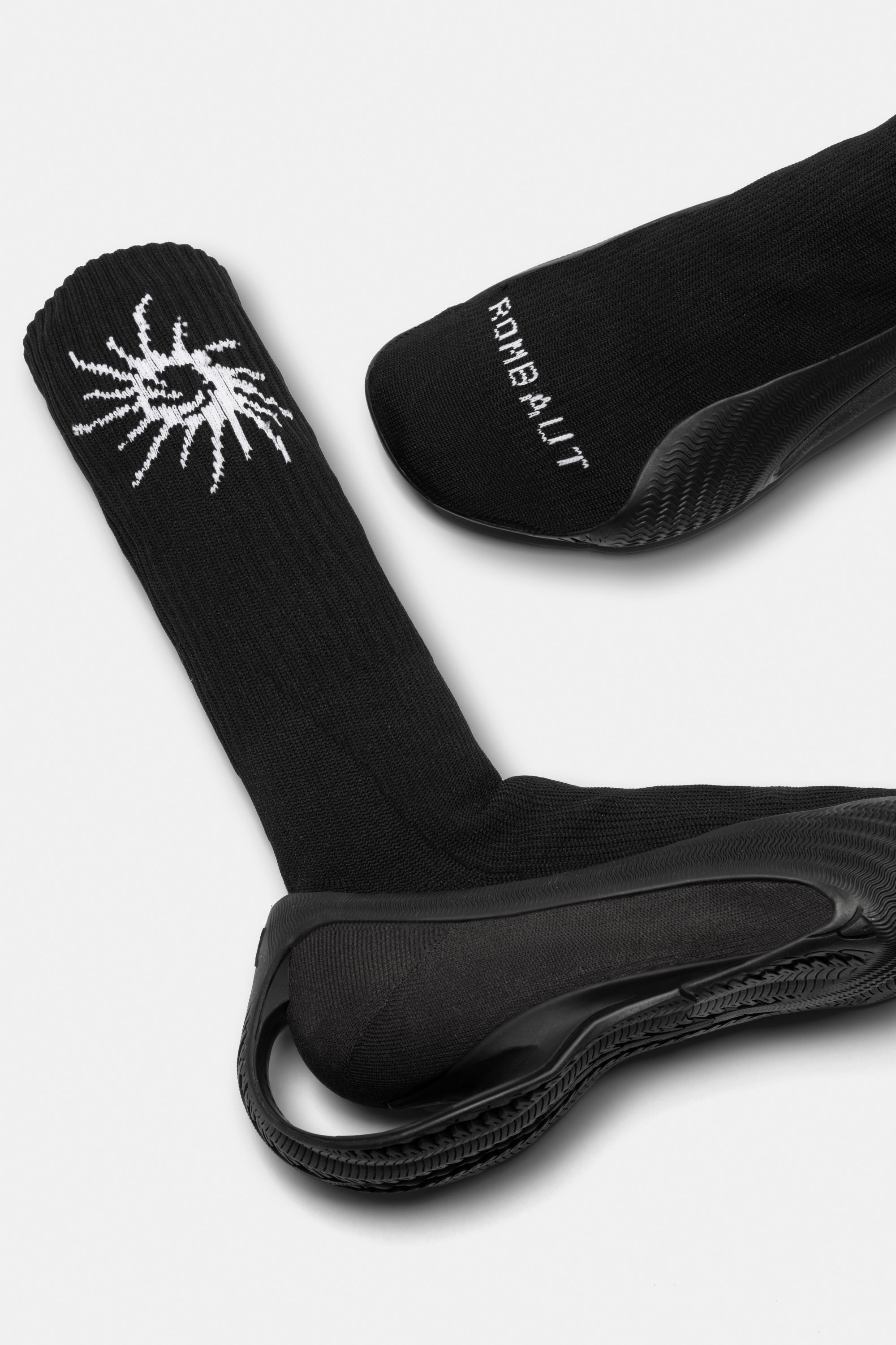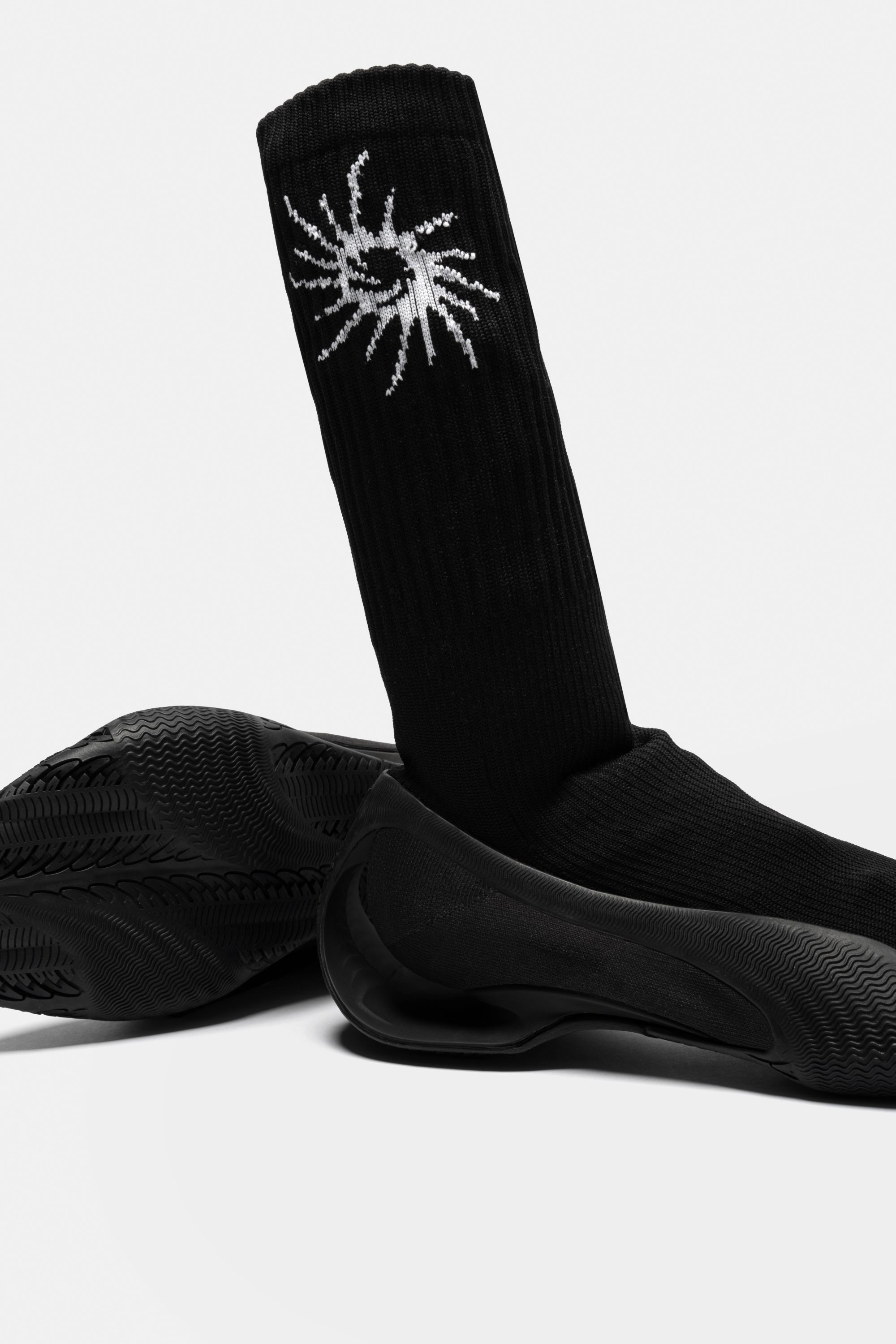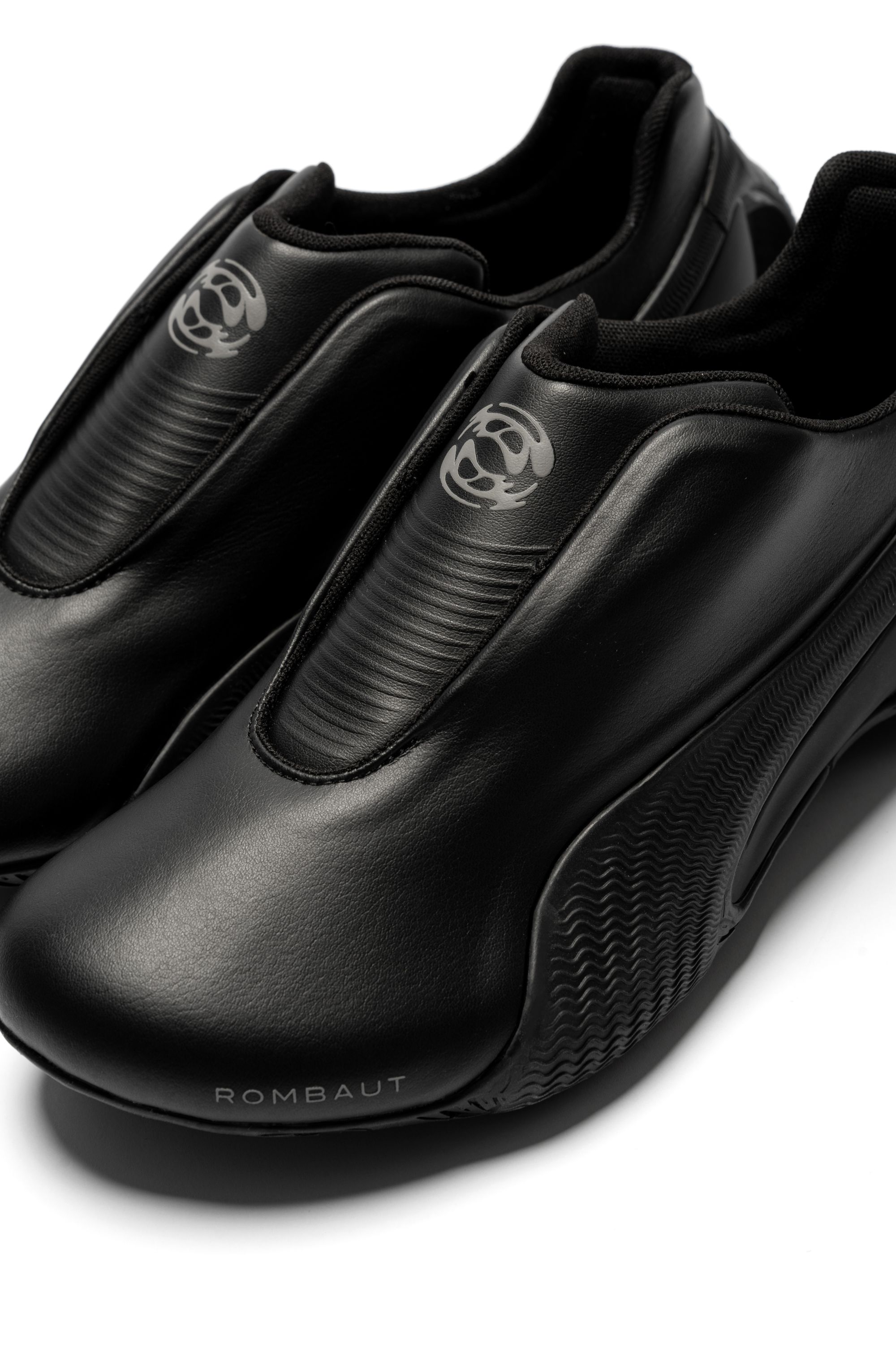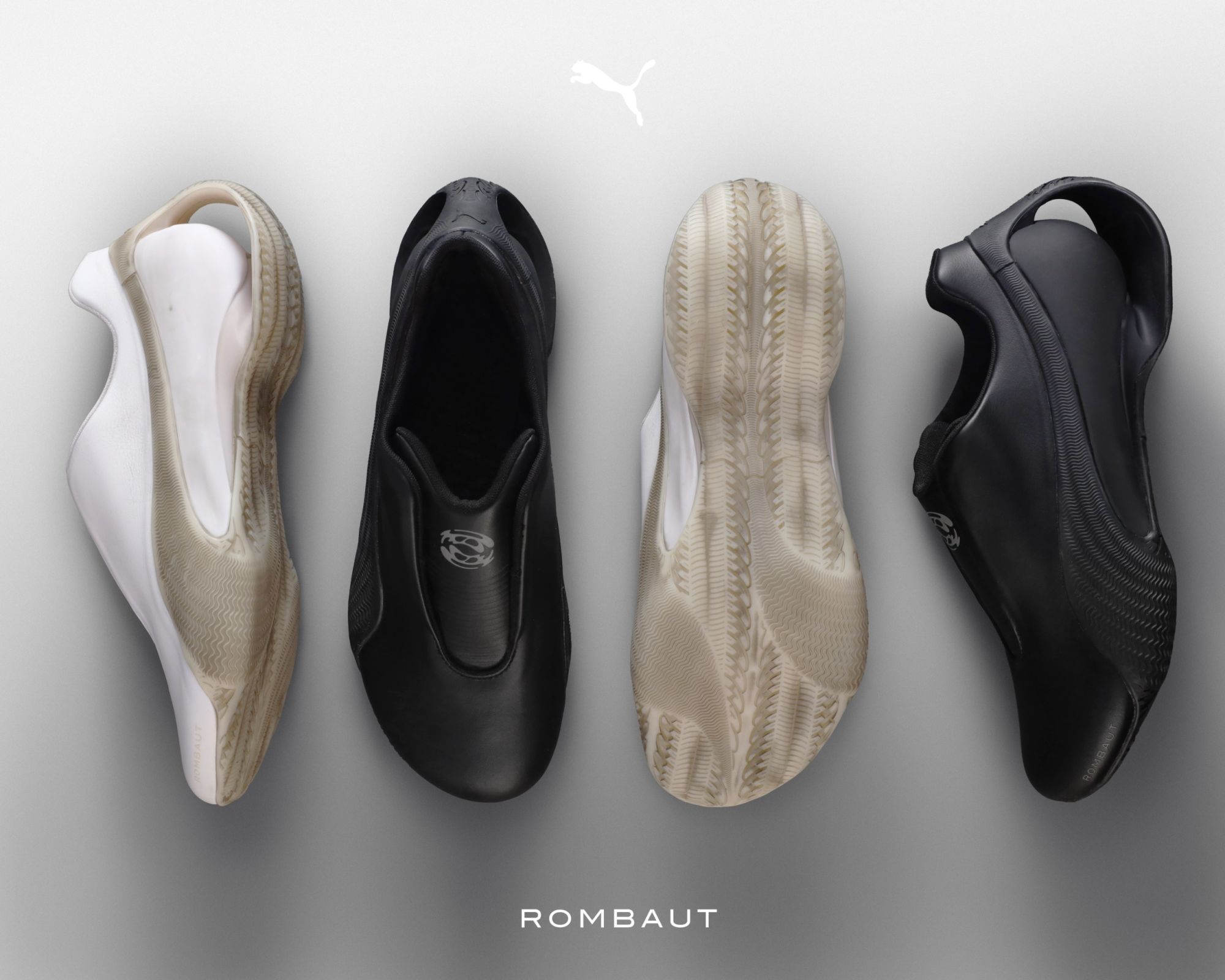 Indeed, the innovative sole of the "Levitation" features a floating piece at the heel that underpins the shoe’s structure, itself connected to a Formstrip that wraps around the knitted upper, giving the wearer the sensation of walking on a cloud of well-being. The sock accompanying the sole follows the same conceptual language, replacing the knitted upper with a high sock showcasing a prominent ROMBAUT logo. Made from recycled TPU components and synthetic leather, it is 100% vegan, aligning with ROMBAUT’s commitment to sustainability and environmentally friendly materials. Recently unveiled during the Paris Fashion Week SS25 as ROMBAUT celebrated its 10th anniversary, the shoe is a call to calm and essentials, reflected in a campaign that explores every detail, blending dream and reality while examining the contrast between Eastern philosophy and hypercapitalism. If levitation symbolizes the pursuit of wisdom—rising above chaos through attention, knowledge, and action—the collaboration between PUMA and ROMBAUT embodies everything one might seek in a sports shoe and more. It invites us to question what elevation truly means and, most importantly, to take that leap toward the best version of ourselves, quietly dormant yet awaiting awakening.
