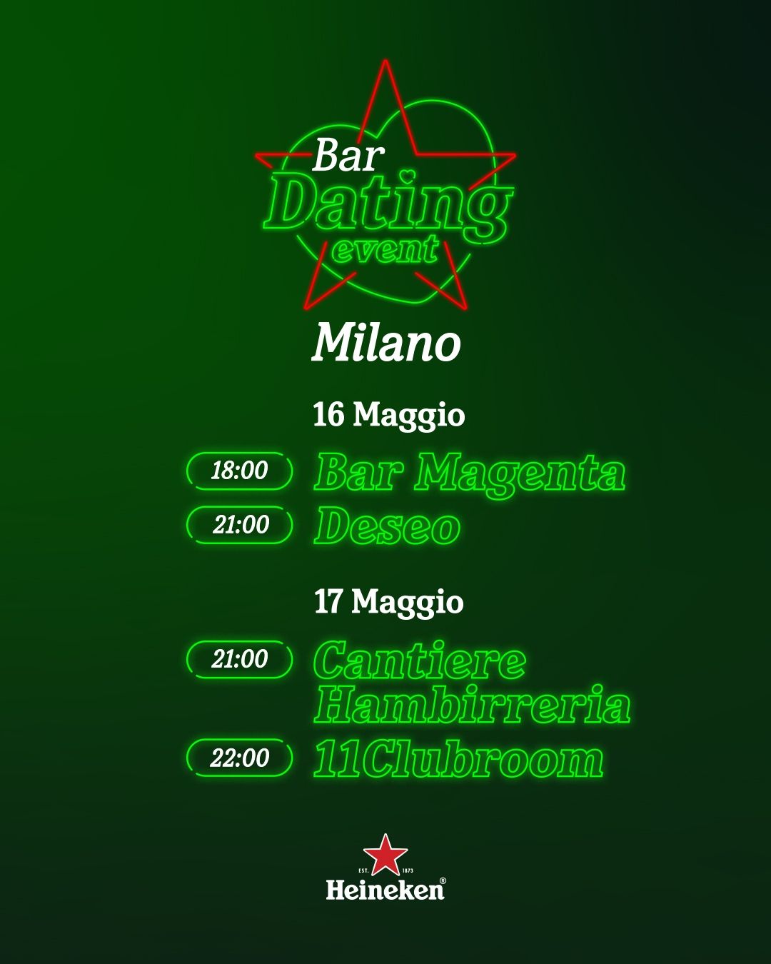 After the success of the first events in Rome, Heineken® returns to Milan this weekend with Bar Dating, the web app that turns discovering new venues into a matchmaking experience. The format brings a mix of music, unexpected encounters, and, of course, fresh beer to participating bars. Tommaso Zorzi and a crew of creators will also be there to narrate the evening, while updated profiles of the venues on the platform will help you choose where to best experience this new form of socializing.