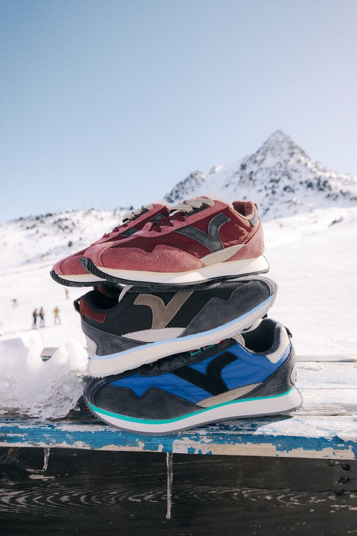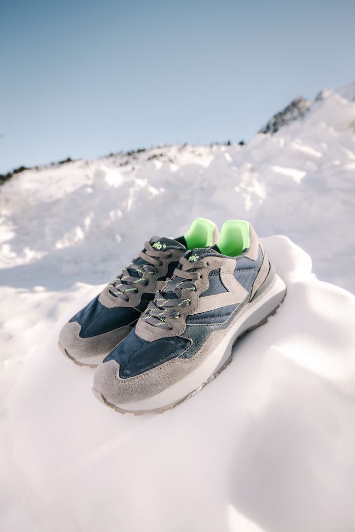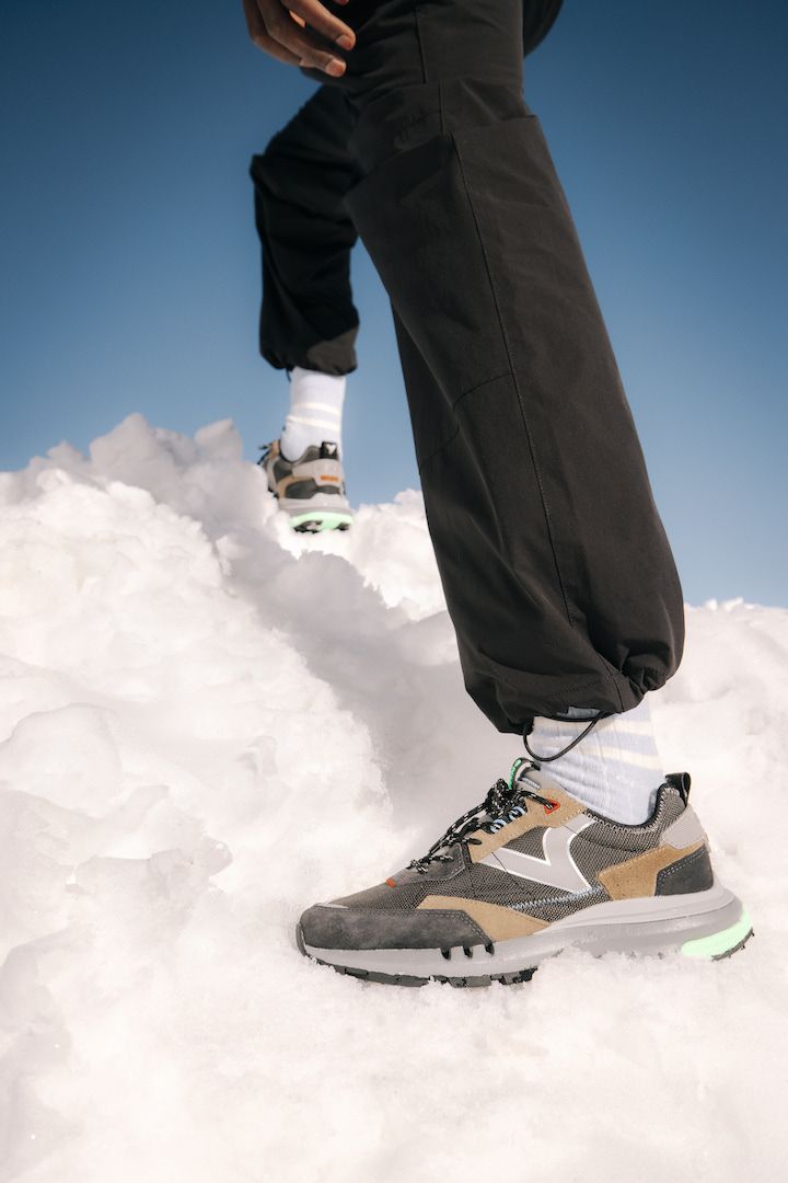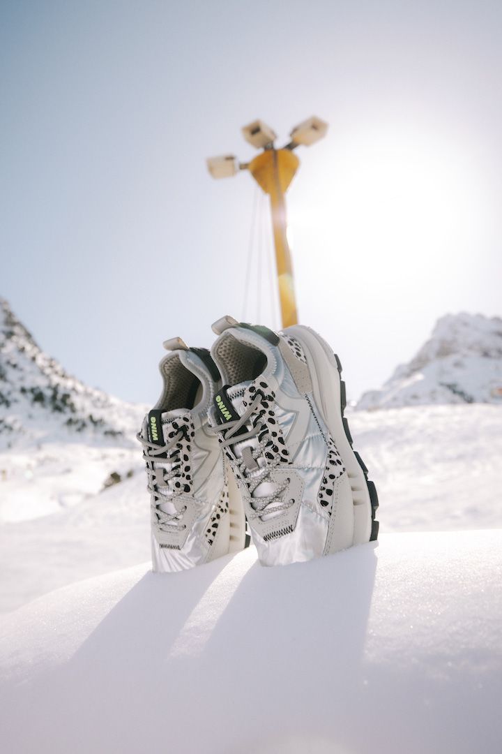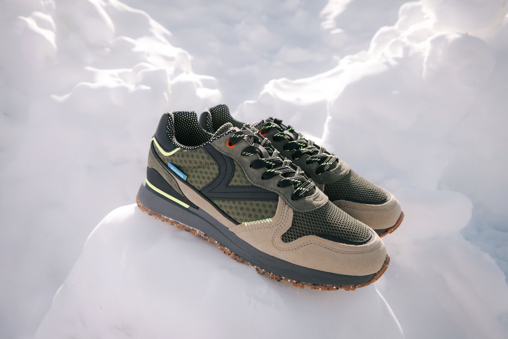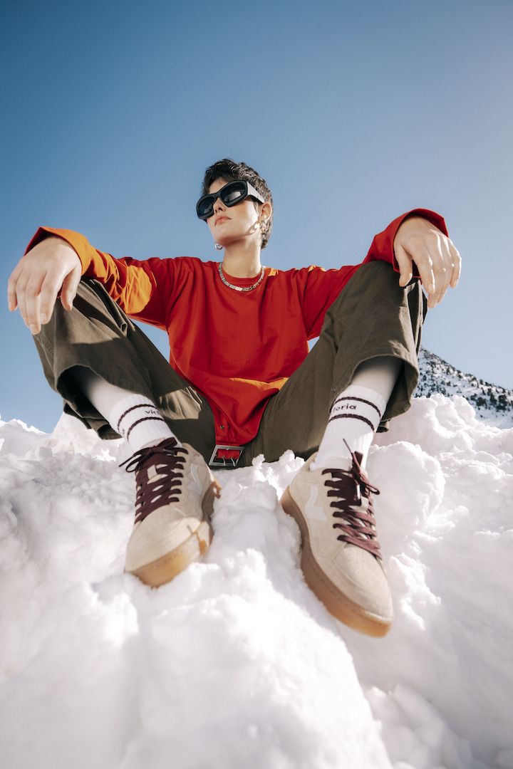 With Snow Much Fun, Victoria doesn’t endure winter — she sculpts it into a visual language. The campaign is infused with snowy landscapes, capturing silence, white light, and the majestic strength of nature to shape the essence of design. The silhouettes combine soft volumes and bright white palettes, highlighted by metallic accents reminiscent of the fleeting sparkle of ice under the sun. The brand’s intrinsic elegance persists, even in models designed for escape. And while the collection is dominated by this icy purity, it dares to break winter codes by introducing an unexpected olive green — a fresh, contemporary accent that breathes vibrant light into tradition. The centerpiece of this season bridges time itself: the Saturno, a sneaker drawing from 1970s archives to reinvent the jogger aesthetic with a decidedly modern approach.