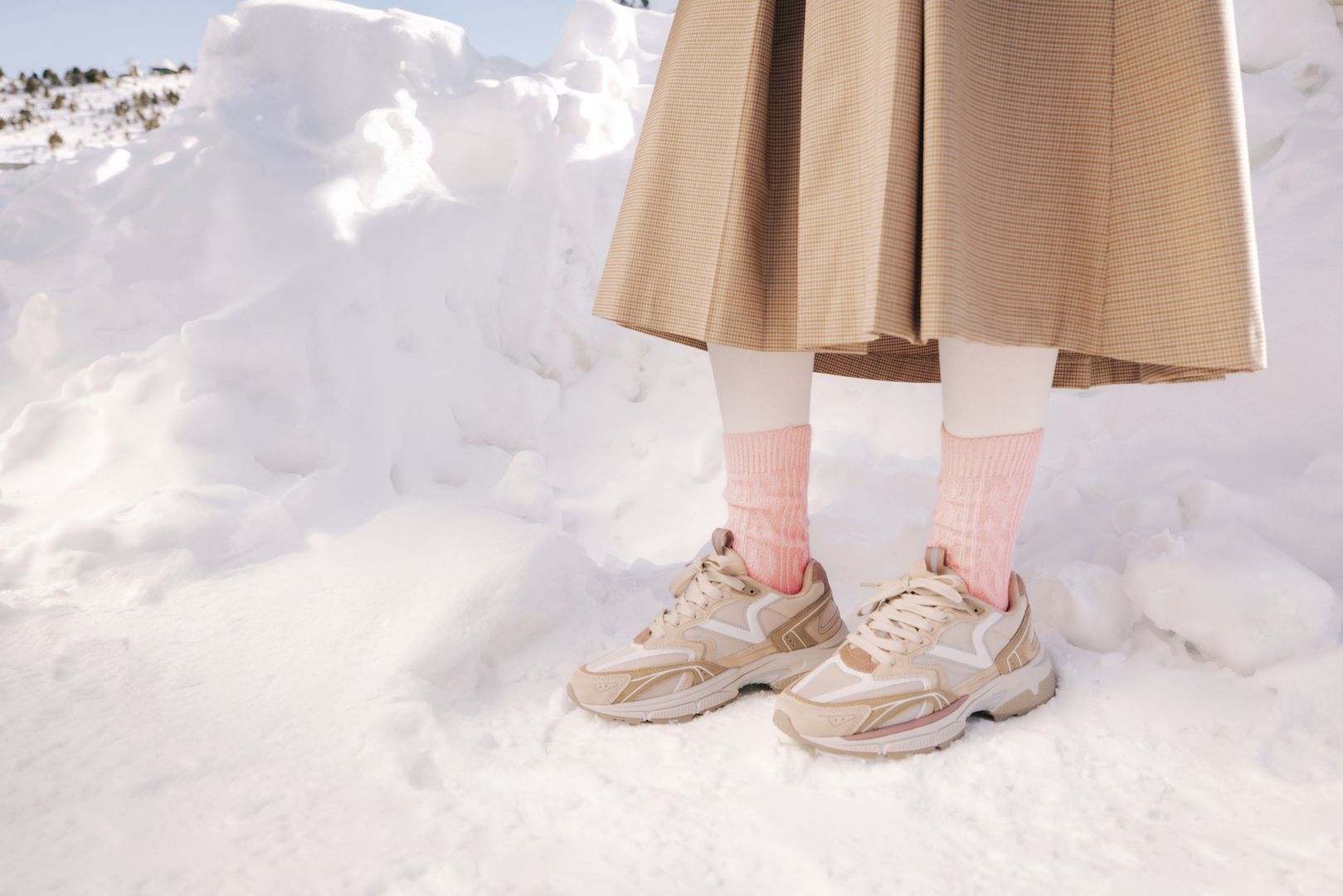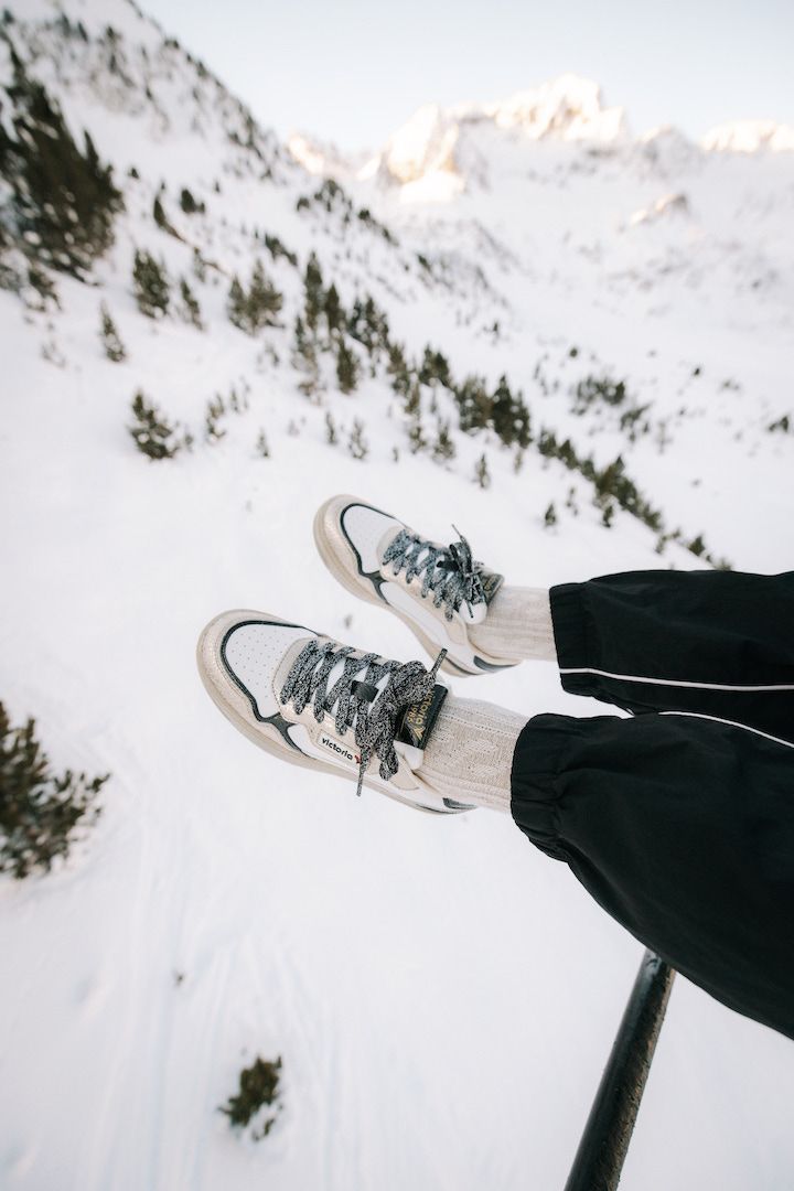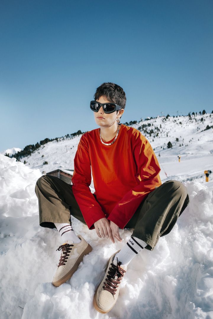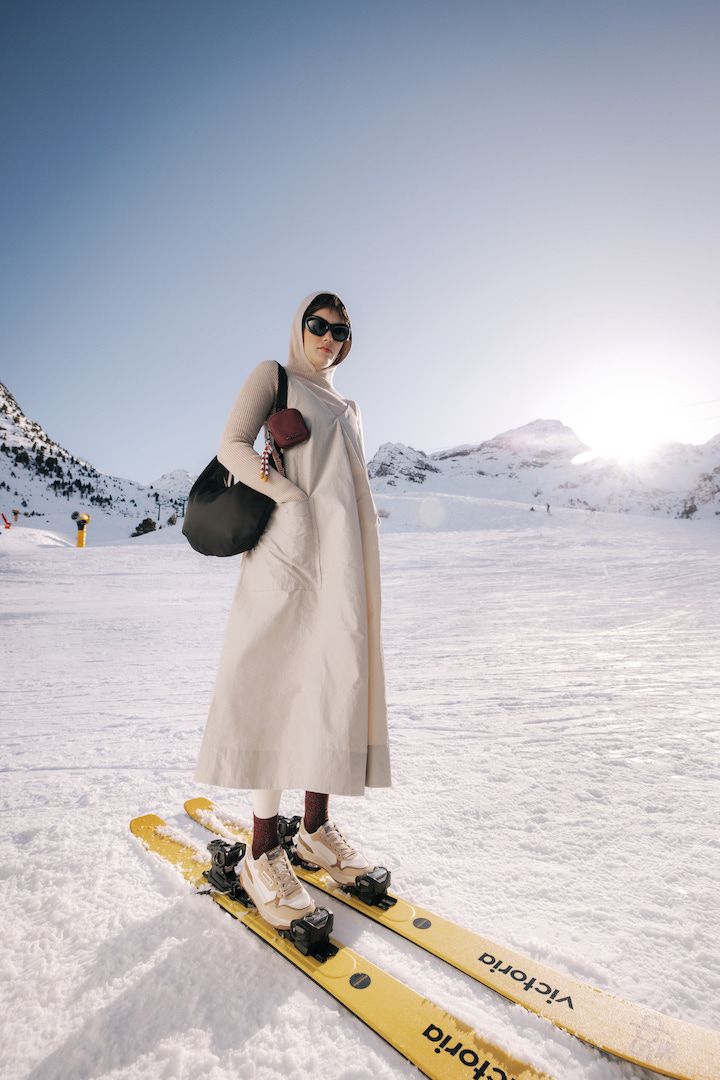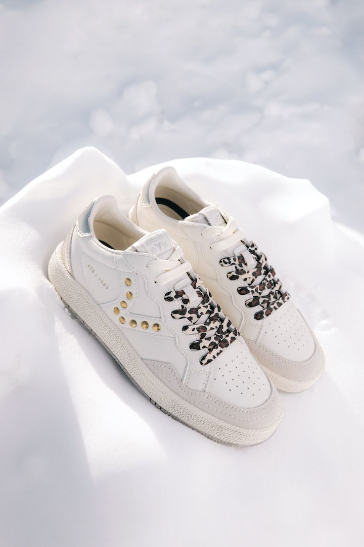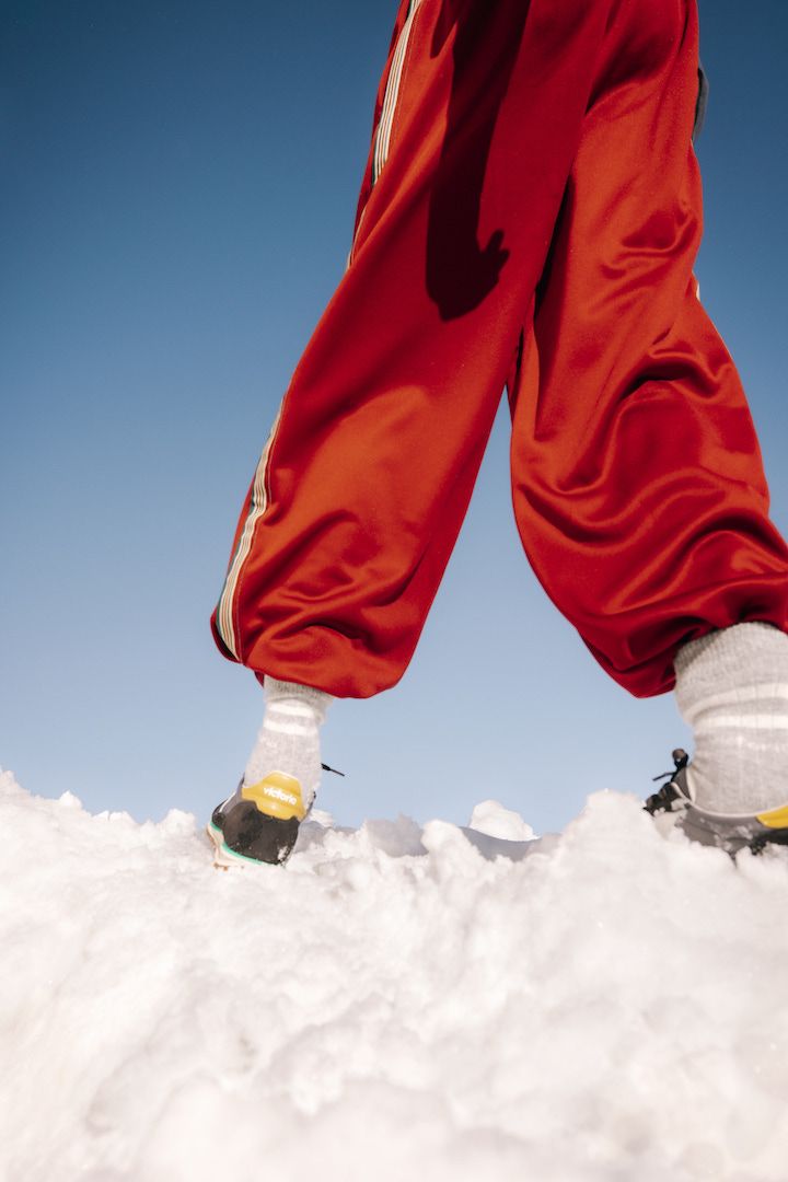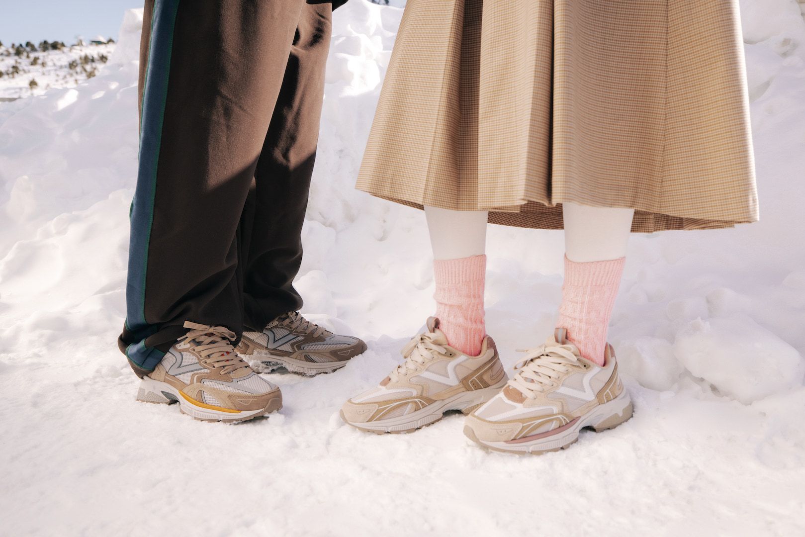 With Snow Much Fun, Victoria doesn’t endure winter — she sculpts it into a visual language. The campaign is infused with snowy landscapes, capturing silence, white light, and the majestic strength of nature to shape the essence of design. The silhouettes combine soft volumes and bright white palettes, highlighted by metallic accents reminiscent of the fleeting sparkle of ice under the sun. The brand’s intrinsic elegance persists, even in models designed for escape. And while the collection is dominated by this icy purity, it dares to break winter codes by introducing an unexpected olive green — a fresh, contemporary accent that breathes vibrant light into tradition. The centerpiece of this season bridges time itself: the Saturno, a sneaker drawing from 1970s archives to reinvent the jogger aesthetic with a decidedly modern approach.