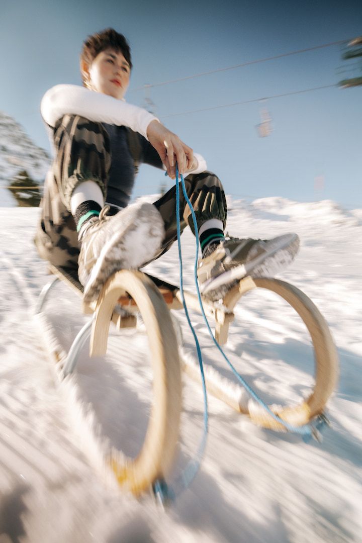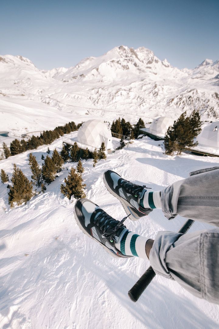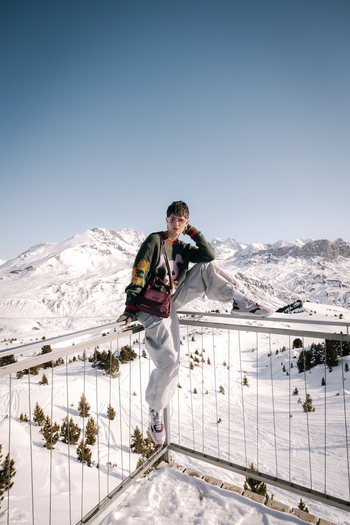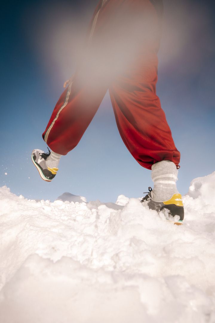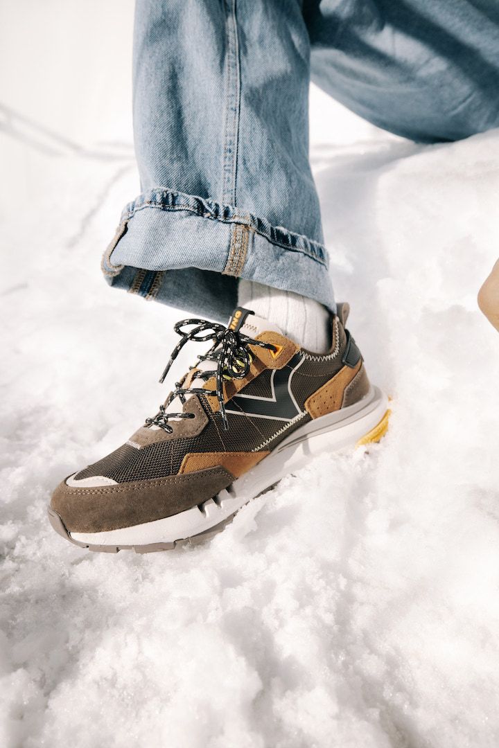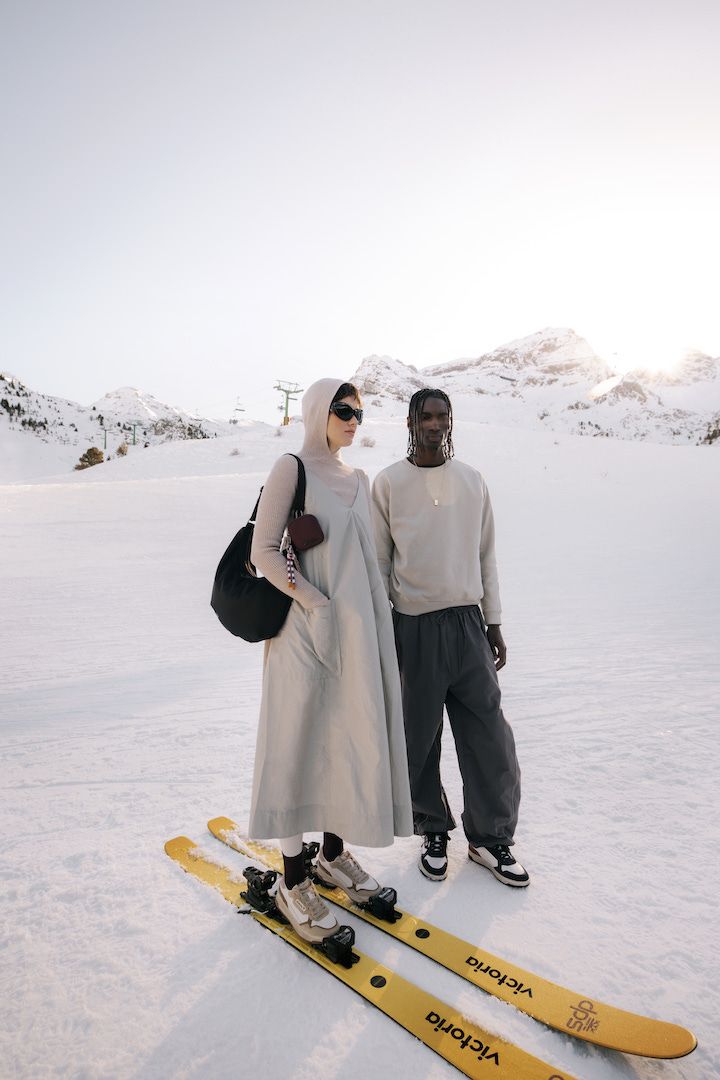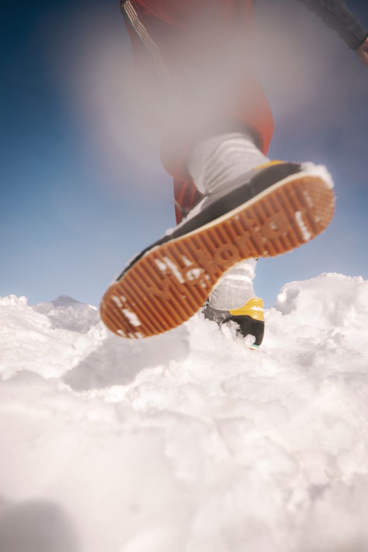 With Snow Much Fun, Victoria doesn’t endure winter — she sculpts it into a visual language. The campaign is infused with snowy landscapes, capturing silence, white light, and the majestic strength of nature to shape the essence of design. The silhouettes combine soft volumes and bright white palettes, highlighted by metallic accents reminiscent of the fleeting sparkle of ice under the sun. The brand’s intrinsic elegance persists, even in models designed for escape. And while the collection is dominated by this icy purity, it dares to break winter codes by introducing an unexpected olive green — a fresh, contemporary accent that breathes vibrant light into tradition. The centerpiece of this season bridges time itself: the Saturno, a sneaker drawing from 1970s archives to reinvent the jogger aesthetic with a decidedly modern approach.