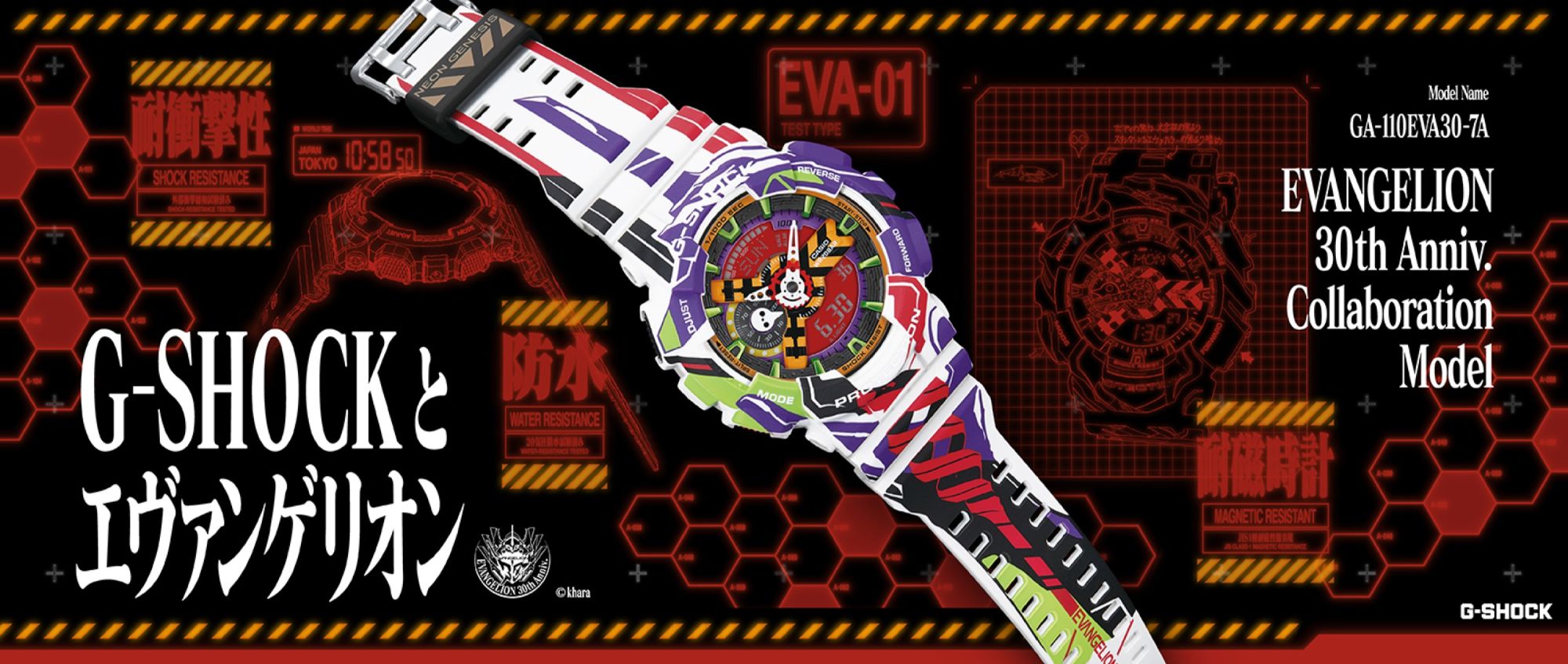 G-SHOCK dedicates a watch to Evangelion The GA-110EVA30-7A for the 30th anniversary of the cult classic