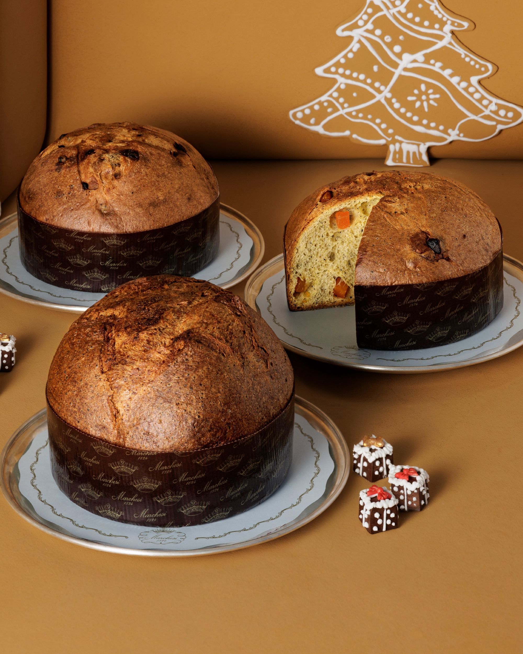 Once again this year, Marchesi 1824 celebrates Christmas with an extraordinary selection of leavened cakes that tell the story of over two centuries of pastry art. At the center of the scene remains the Classic Panettone, a symbol of the maison and of Milanese tradition, offered in sizes ranging from 500 grams up to the majestic 10 kilograms, made with natural yeast and a long fermentation process. Alongside it, a collection of Special Panettones that renew tradition with unique flavors and refined pairings: from figs with honey and vanilla with chocolate and red fruits, to candied chestnuts with pistachio, and more aromatic versions like pear, cinnamon, and ginger. There are also variations designed for specific needs, such as lactose-free or candied fruit–free options, and more minimal reinterpretations like the Aurora, without raisins or candied fruit, or the classic chocolate version. The absolute novelty of this season is the Meneghino, a Grand Marnier panettone that pays homage to Milan’s elegant taste, presented in a refined hatbox.