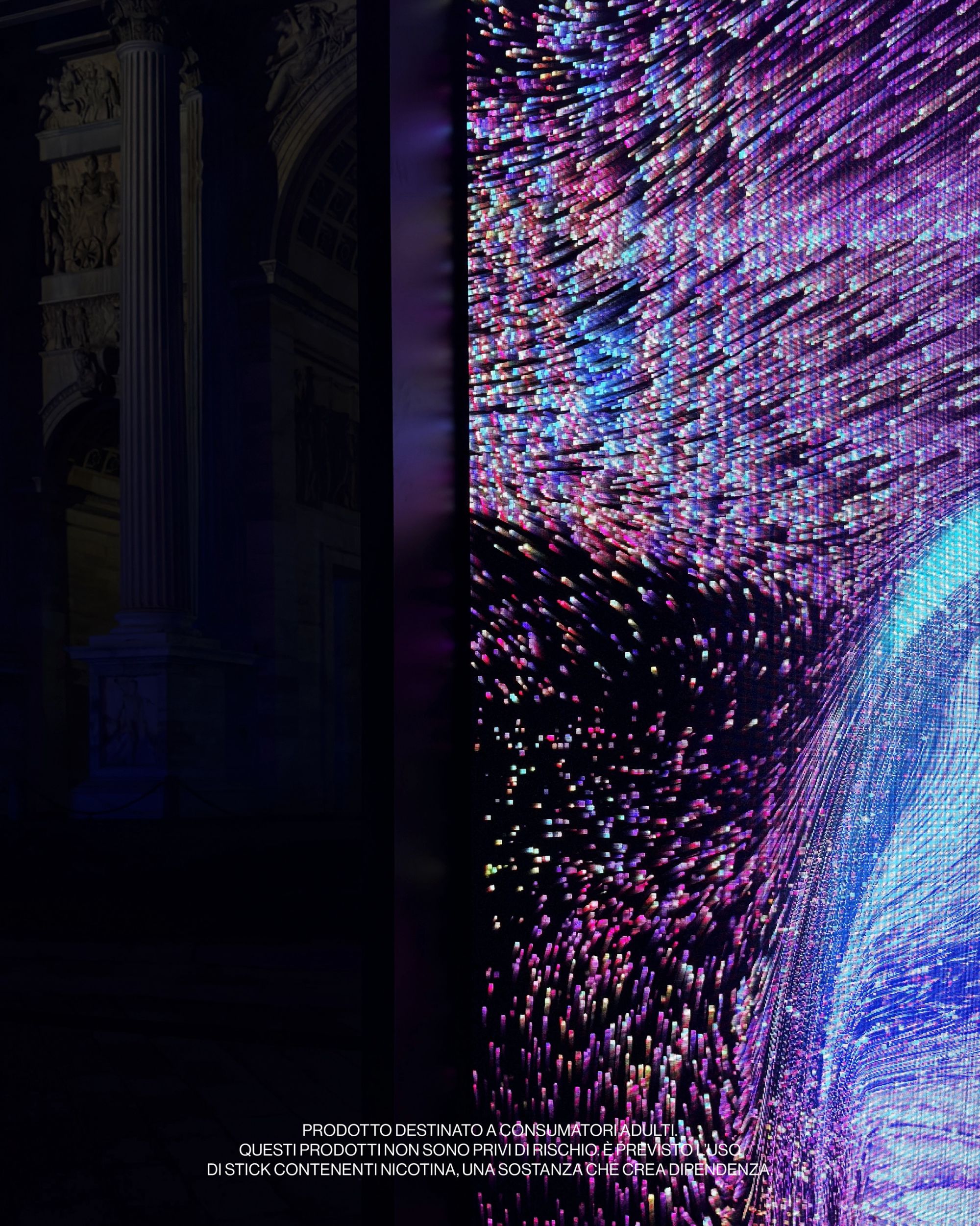Ploom* focused entirely on innovation and design, and Milan came alive with music, colors, and design for a unique weekend. The installation transformed the Dazi di Parco Sempione into a path designed to recount an authentic journey through design and technology for a few days. On November 14, with the official opening of the so-called Aura Studio, adult consumers were able to walk through a tunnel of lights, sounds, and projections designed to evoke the visual and sensory identity of Ploom. The two historic structures of the Dazi di Ponente and Levante, illuminated and connected by a passageway, hosted a constant flow of adult visitors intrigued by this particular interpretation of Milanese urban architecture. After multiple DJ sets, Saturday, November 15, also saw the participation of rapper Salmo, special guest of the inaugural stage.