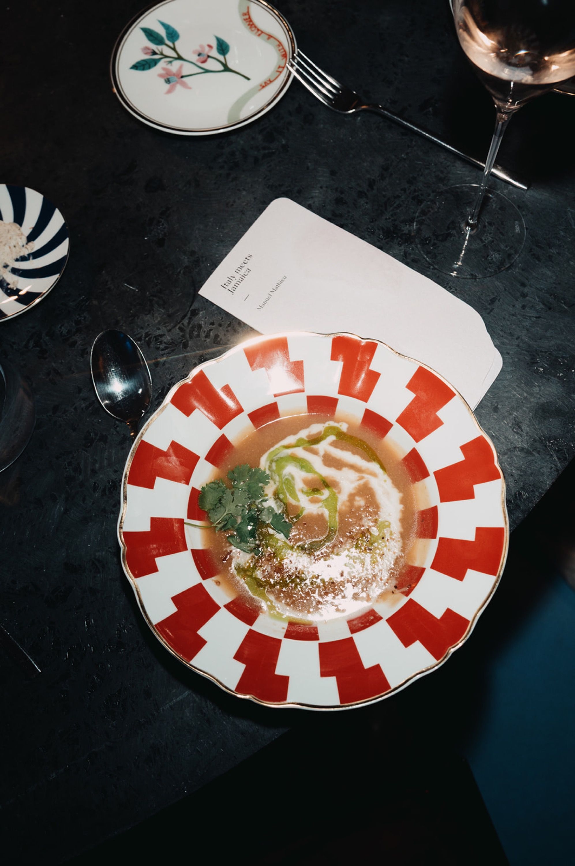 From the welcome cocktails at 6:30 pm, accompanied by the musical selection of Freschezza, guests were immersed in a joyful atmosphere that set the tone for a special dinner crafted by Stush in the Bush, flown in from Jamaica. Their presence moved everyone, especially knowing that their farm had suffered significant damage due to Hurricane Melissa, one of the most devastating natural disasters to hit the island in recent years. Yet, despite everything, they brought with them the last of their harvest, including the precious ackee, as a symbol of resilience and shared care.